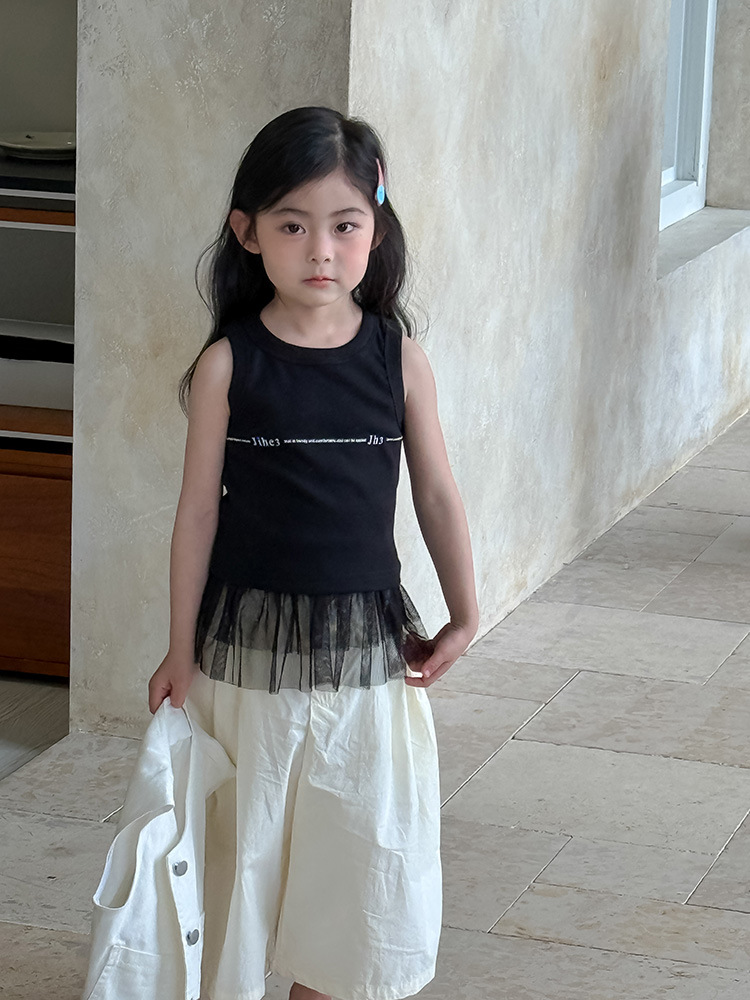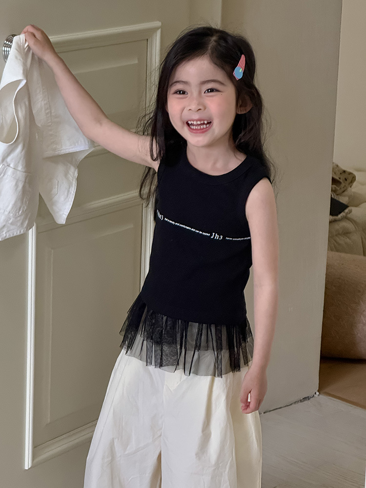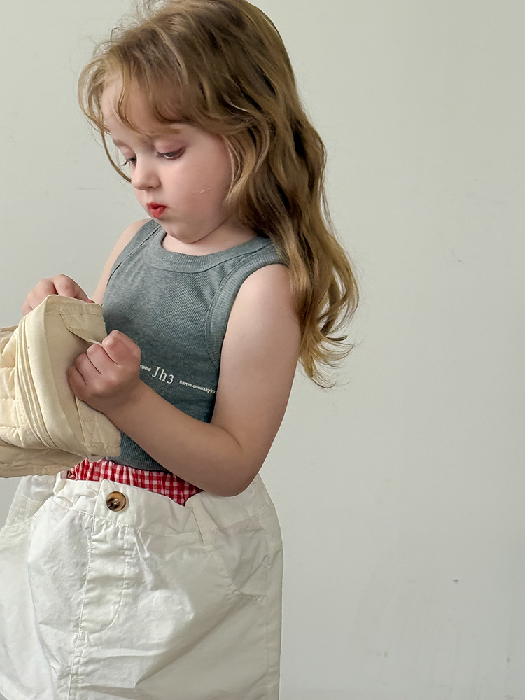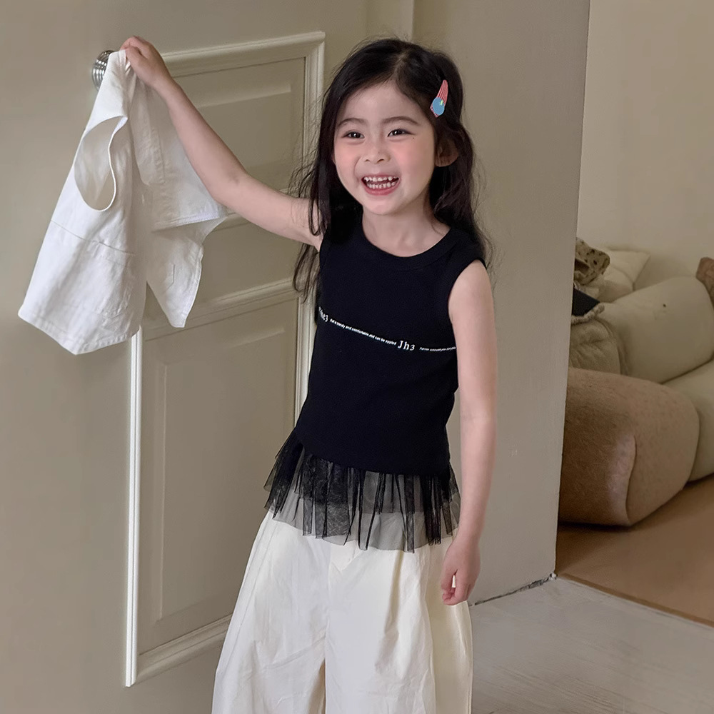 어린이 3 색 편지 조끼 2025 여름 새 일본과 한국 스타일 간단한 편지 흑백 회색 기본 T 소년 소녀스토어 가기