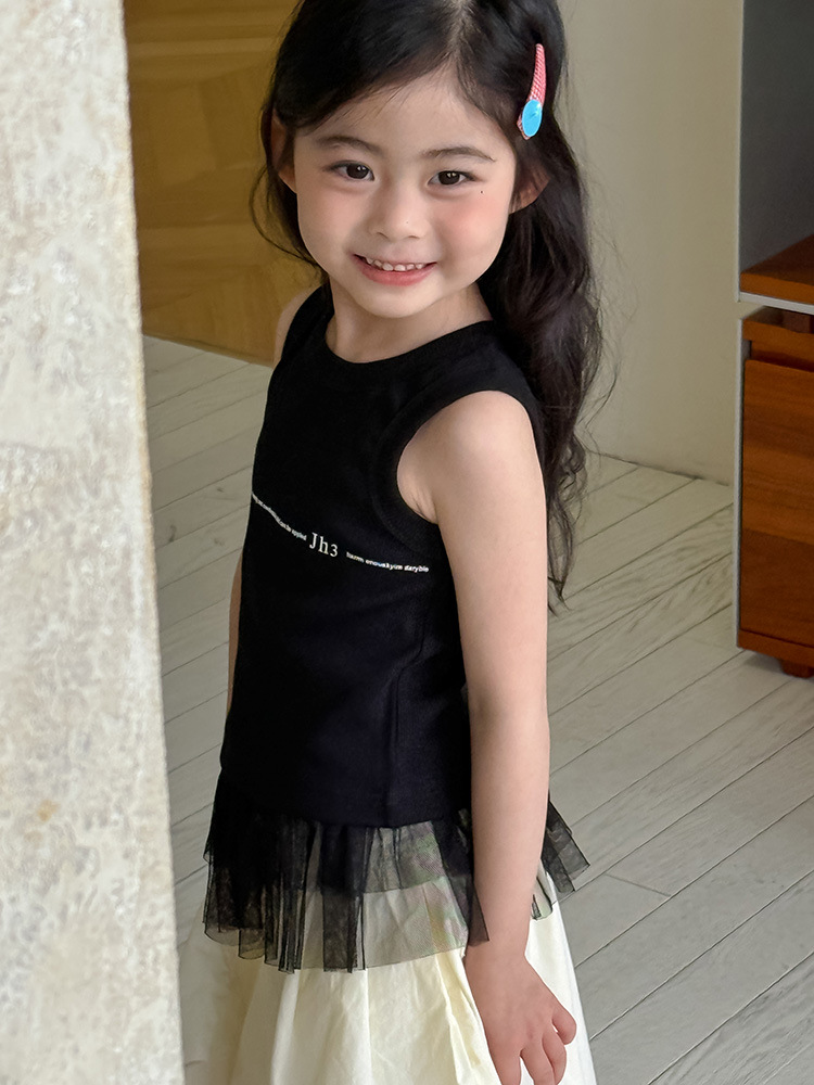 어린이 3 색 편지 조끼 2025 여름 새 일본과 한국 스타일 간단한 편지 흑백 회색 기본 T 소년 소녀