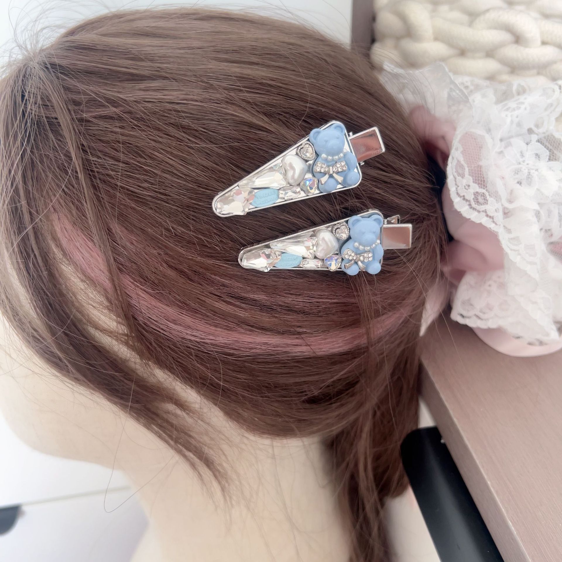 한국 스타일 절묘한 고급 사랑 라인스톤 달콤한 곰 헤어핀 우아한 올 매치 덕빌 클립 깨진 헤어핀 헤어 액세서리스토어 가기