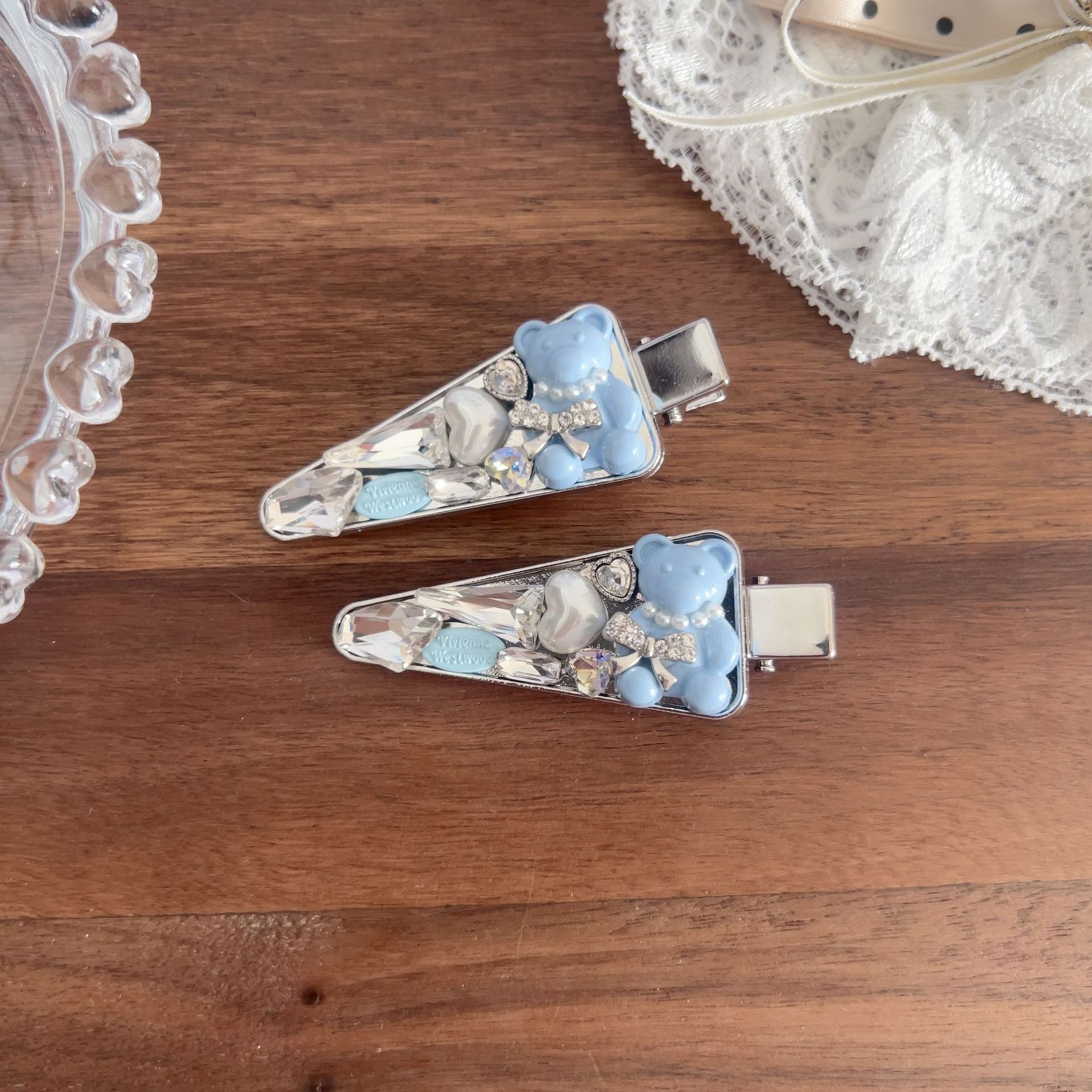 한국 스타일 절묘한 고급 사랑 라인스톤 달콤한 곰 헤어핀 우아한 올 매치 덕빌 클립 깨진 헤어핀 헤어 액세서리