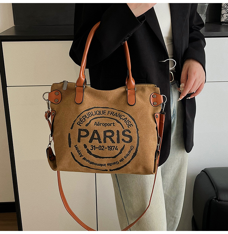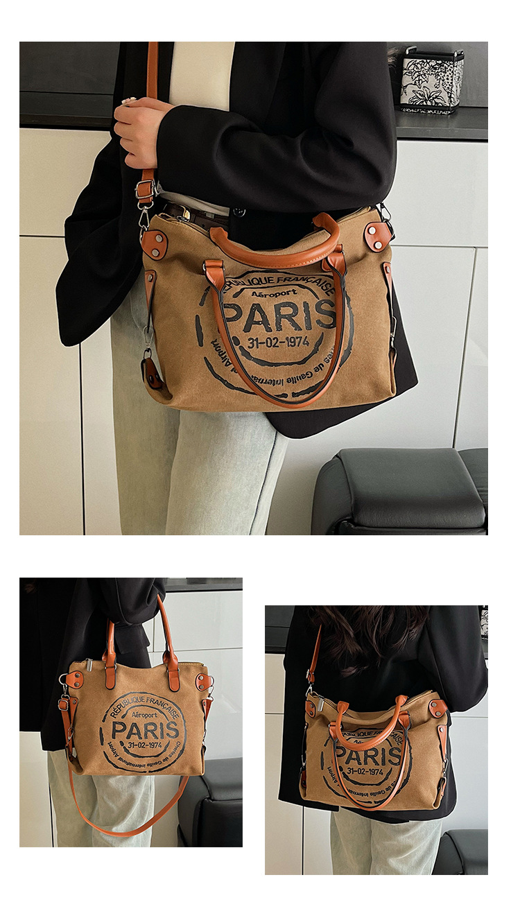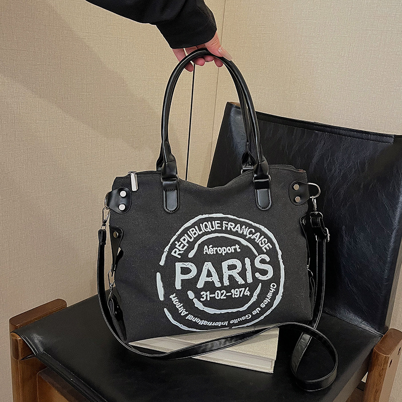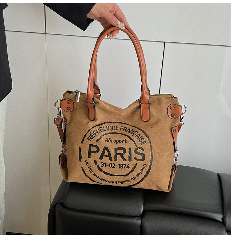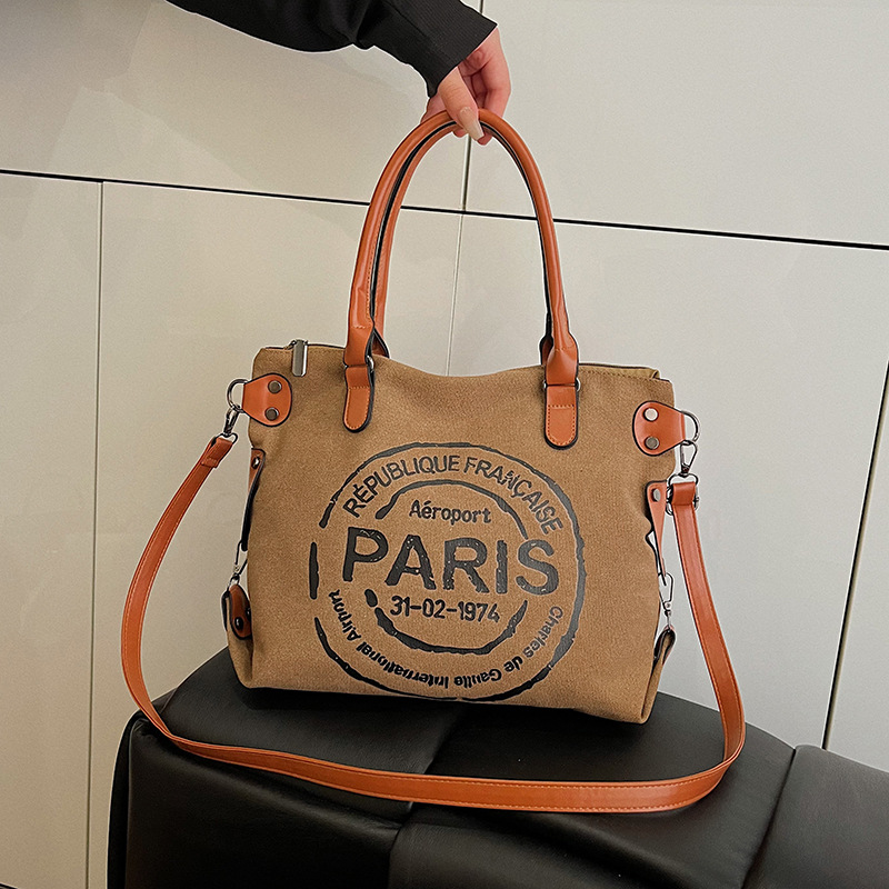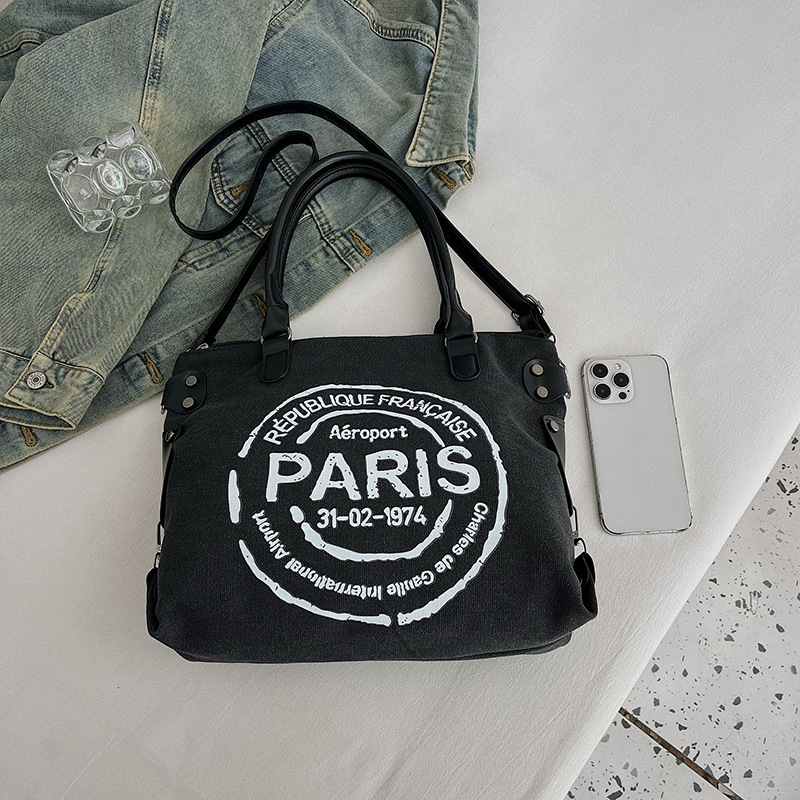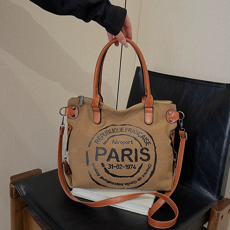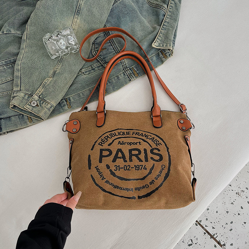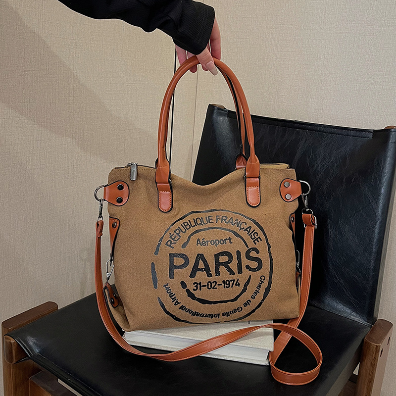 국경 간 캔버스 가방 여성 가방 2025 새로운 편지 인쇄 대용량 어깨 가방 핸드백 토트 백스토어 가기