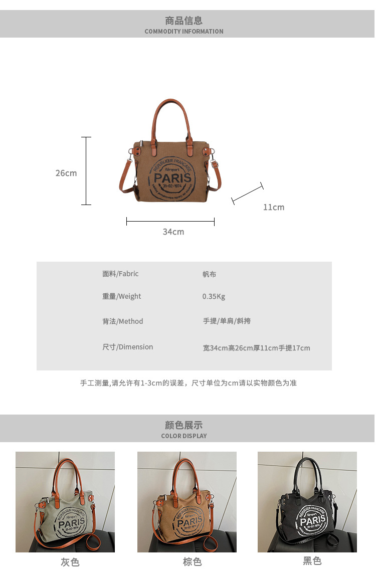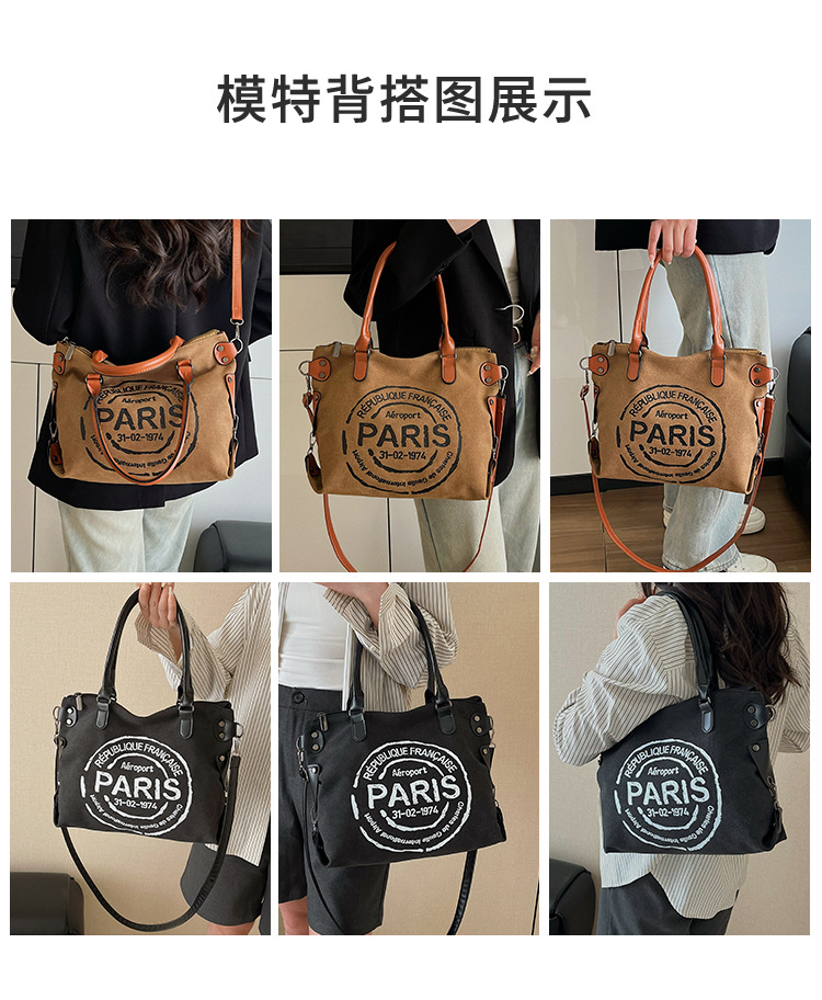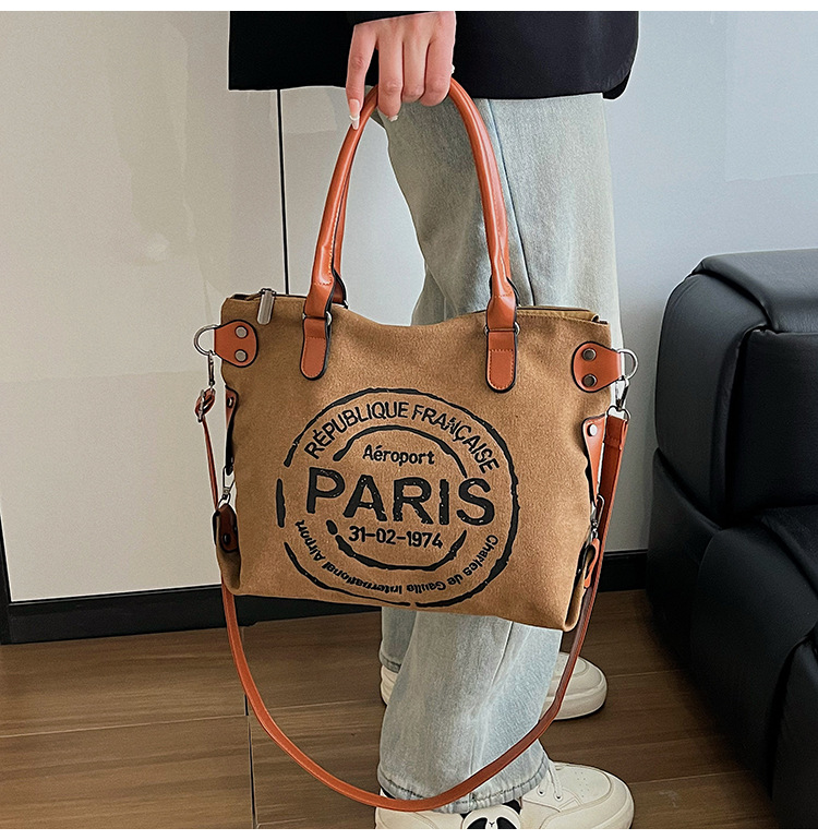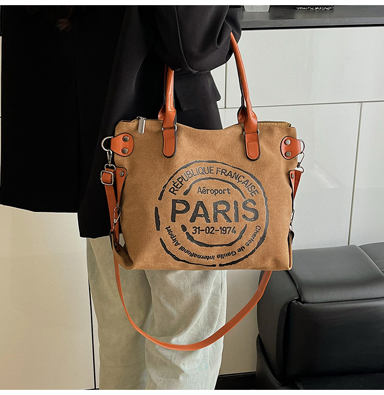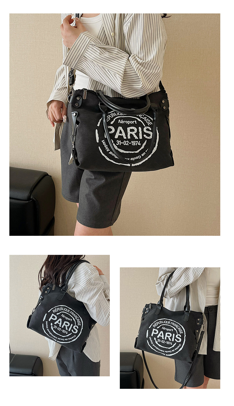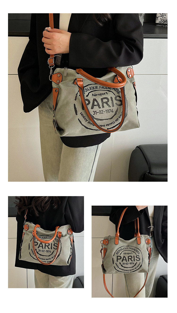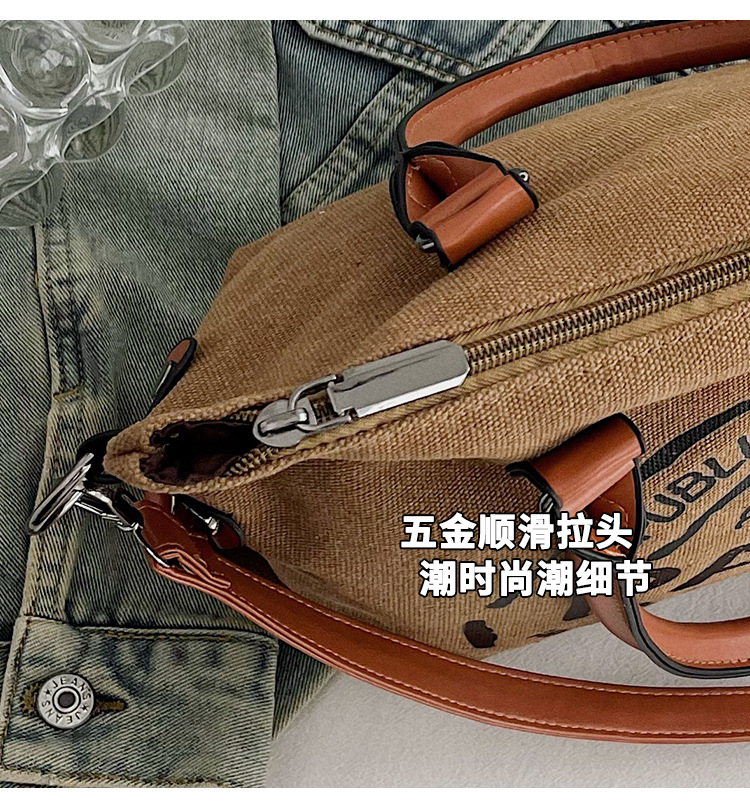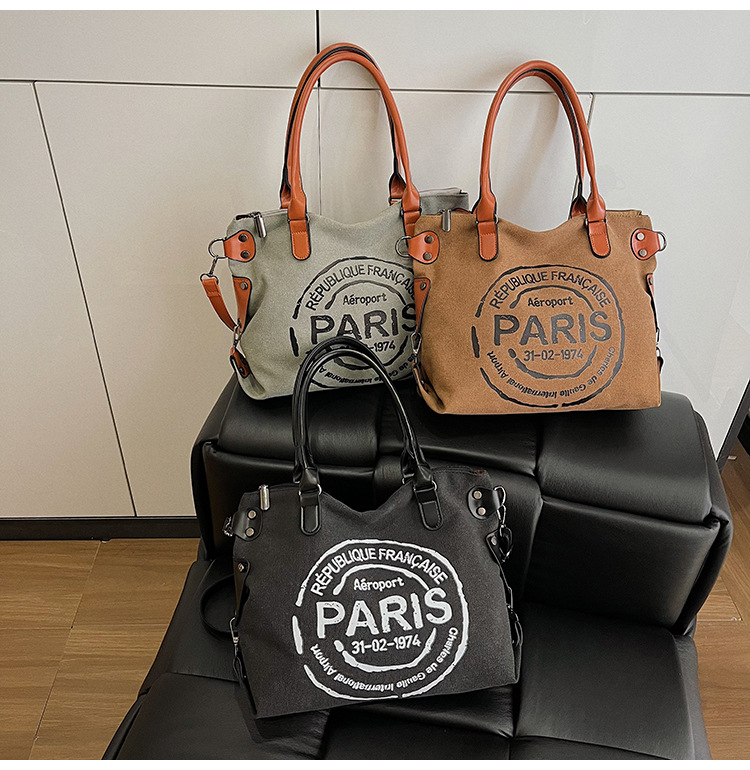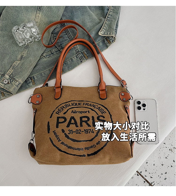 국경 간 캔버스 가방 여성 가방 2025 새로운 편지 인쇄 대용량 어깨 가방 핸드백 토트 백스토어 가기