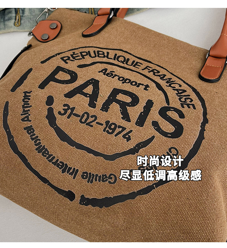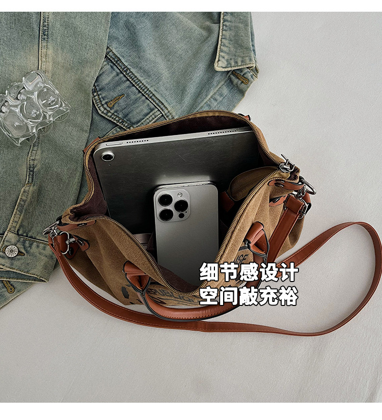 국경 간 캔버스 가방 여성 가방 2025 새로운 편지 인쇄 대용량 어깨 가방 핸드백 토트 백
