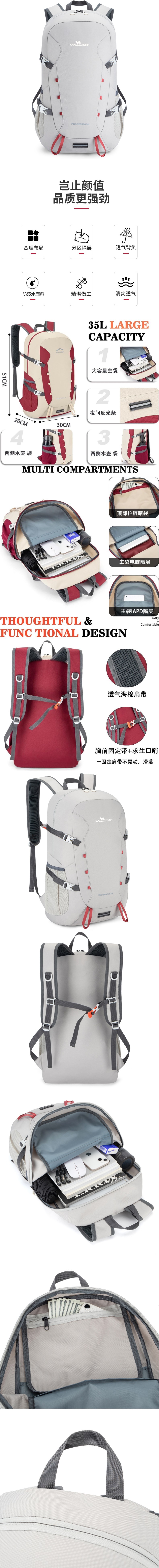 35L 야외 하이킹 및 등산 가방 반대로 튀는 여행 학생 패션 접는 휴대용 Schoolbag 배낭 남성
