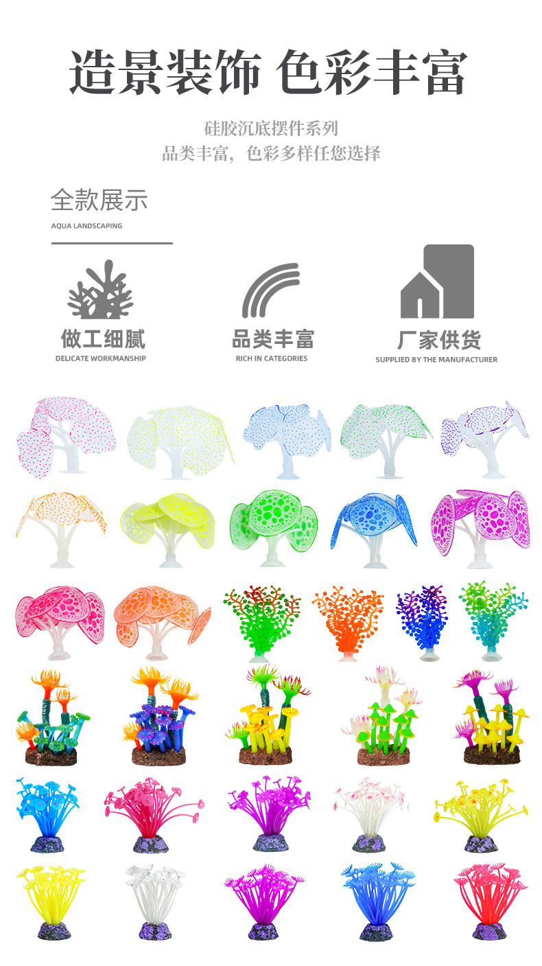 공장 직판 실리콘 산호 어항 장식품 조경 모조 수초 산호 연성 식물 해외 전용 선물스토어 가기