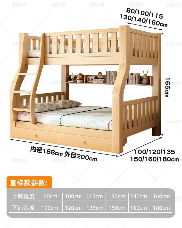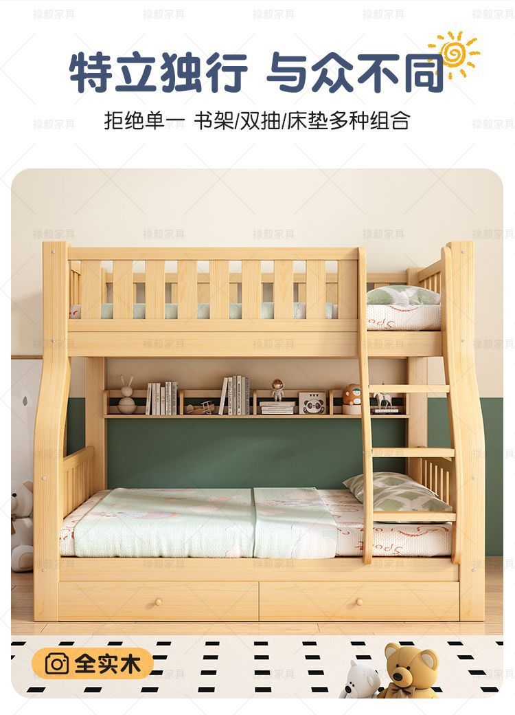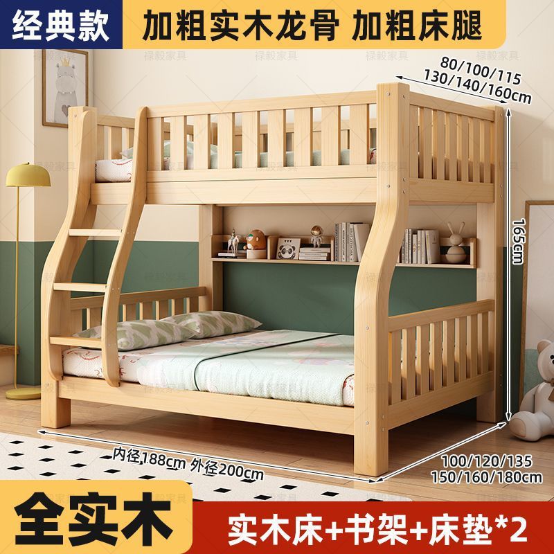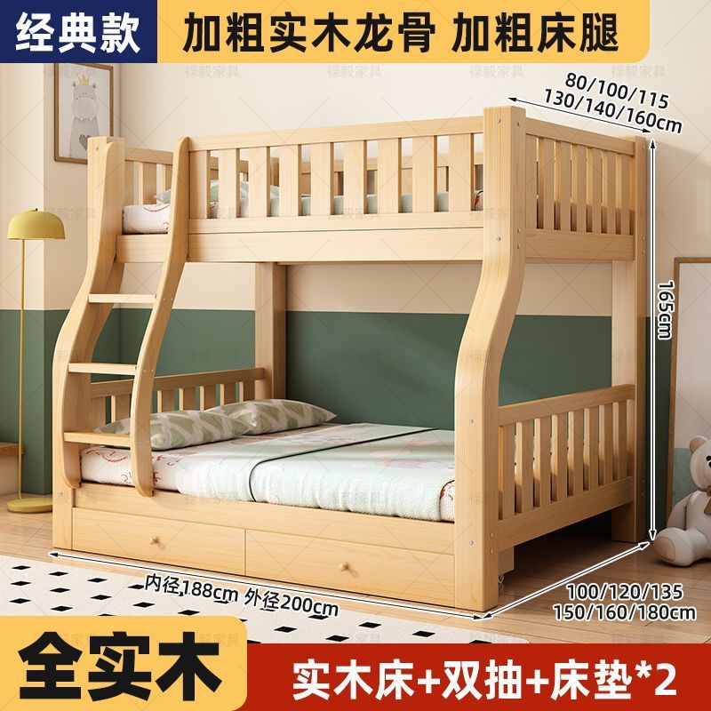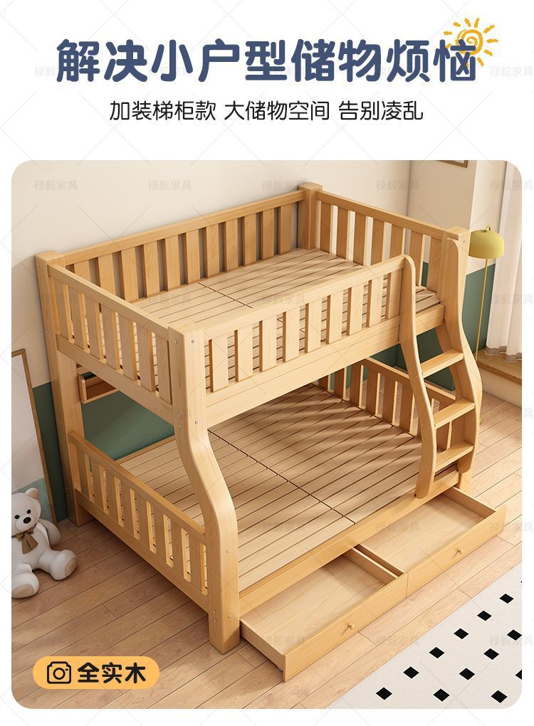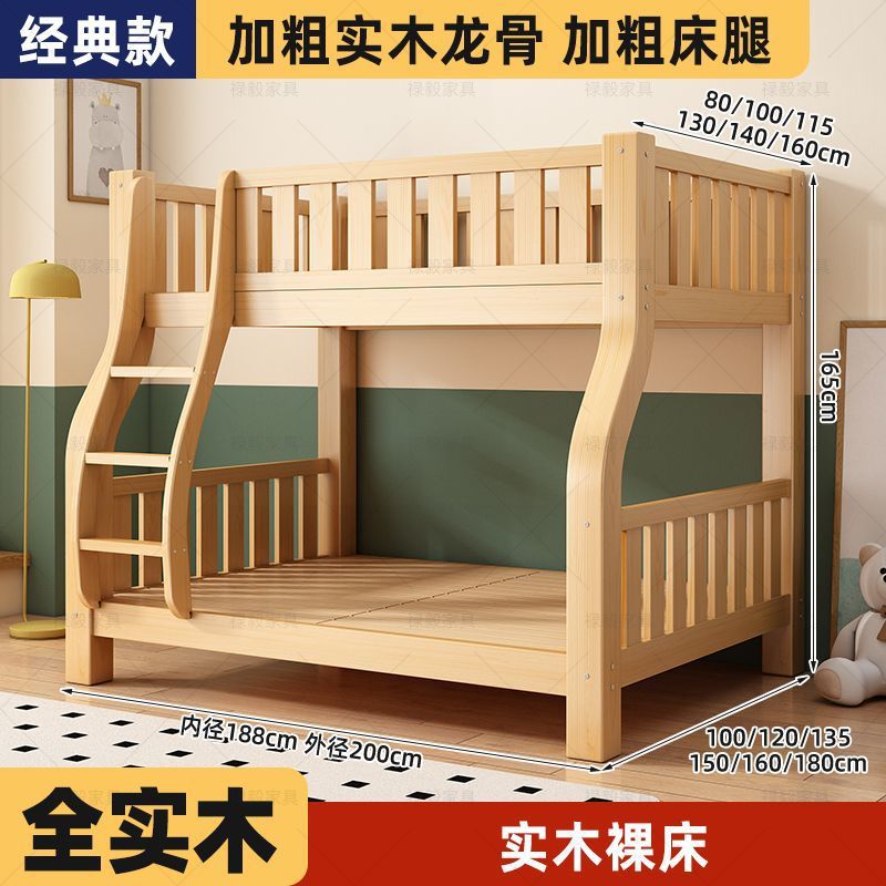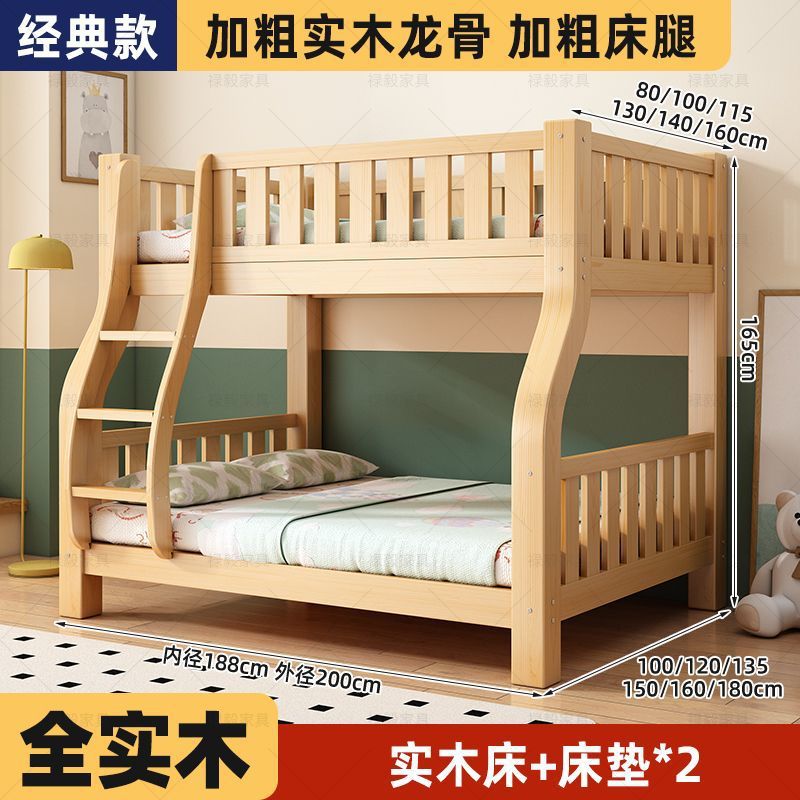 두꺼운 원목 침대, 이층 침대, 2층 기숙사, 소형 아파트, 다기능 높낮이 이층 어린이 침대
