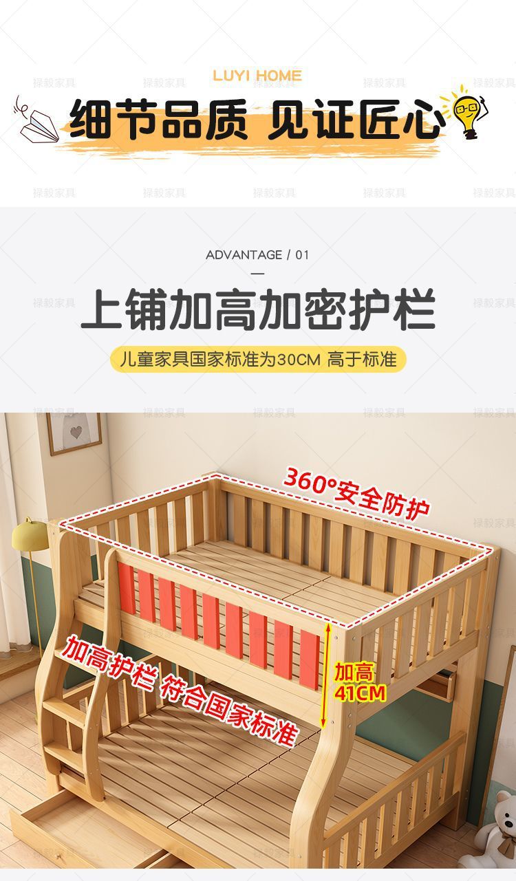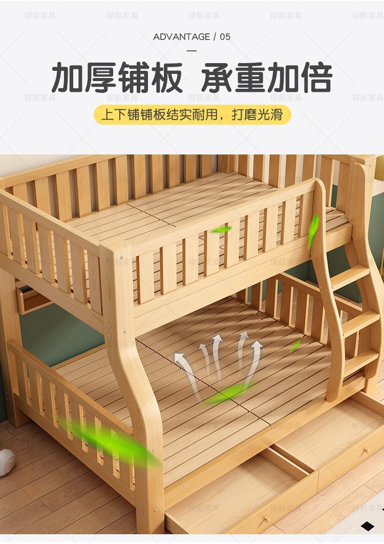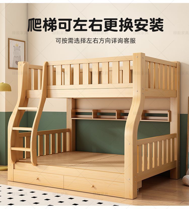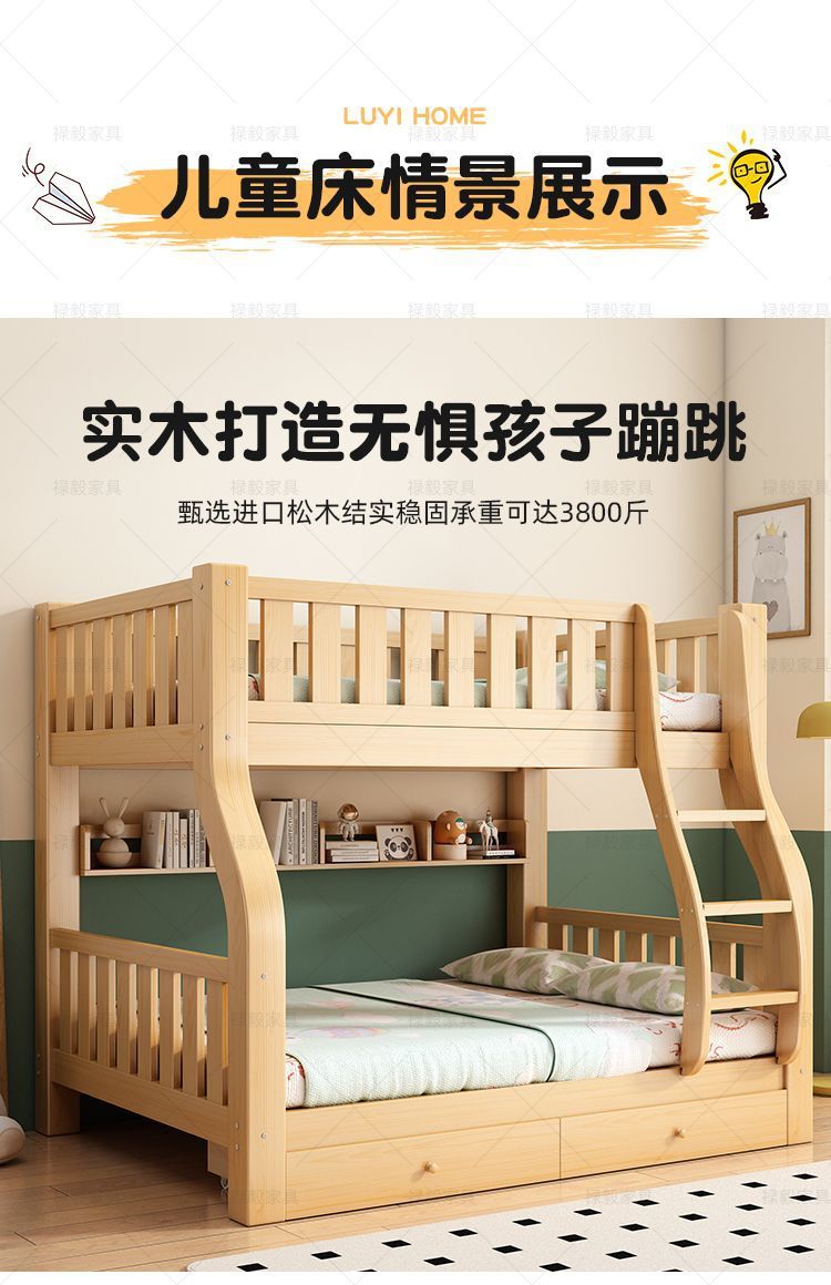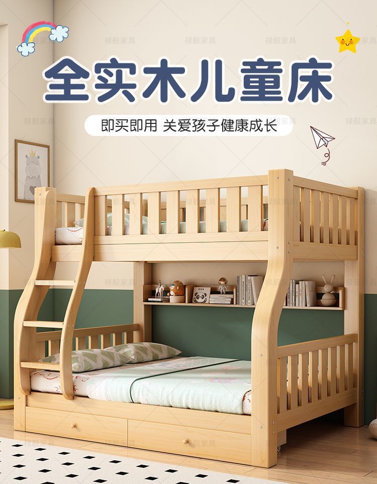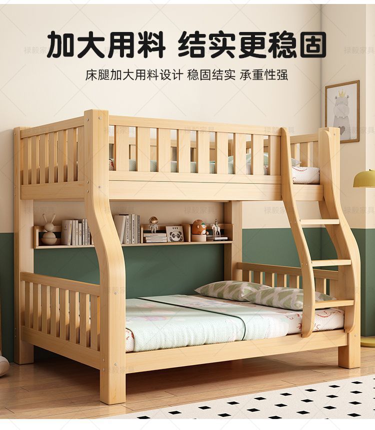 두꺼운 원목 침대, 이층 침대, 2층 기숙사, 소형 아파트, 다기능 높낮이 이층 어린이 침대
