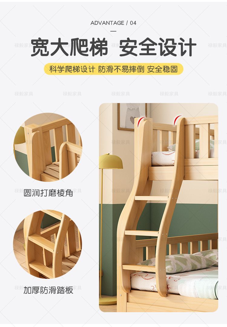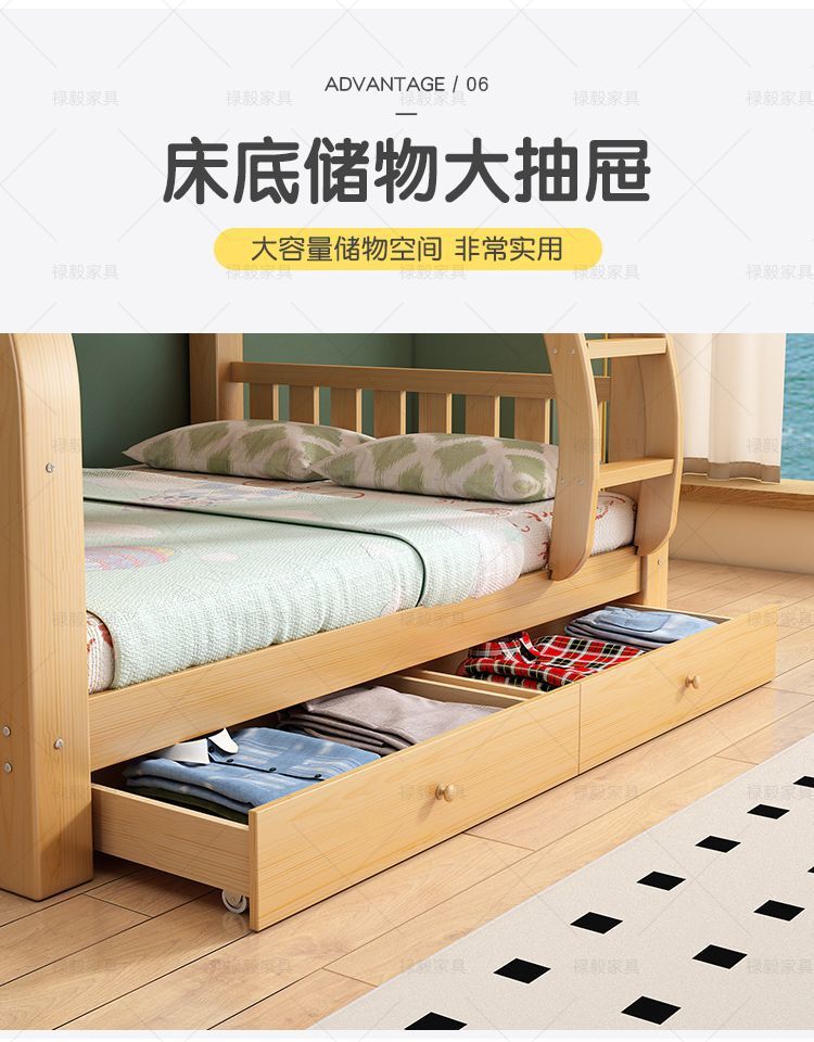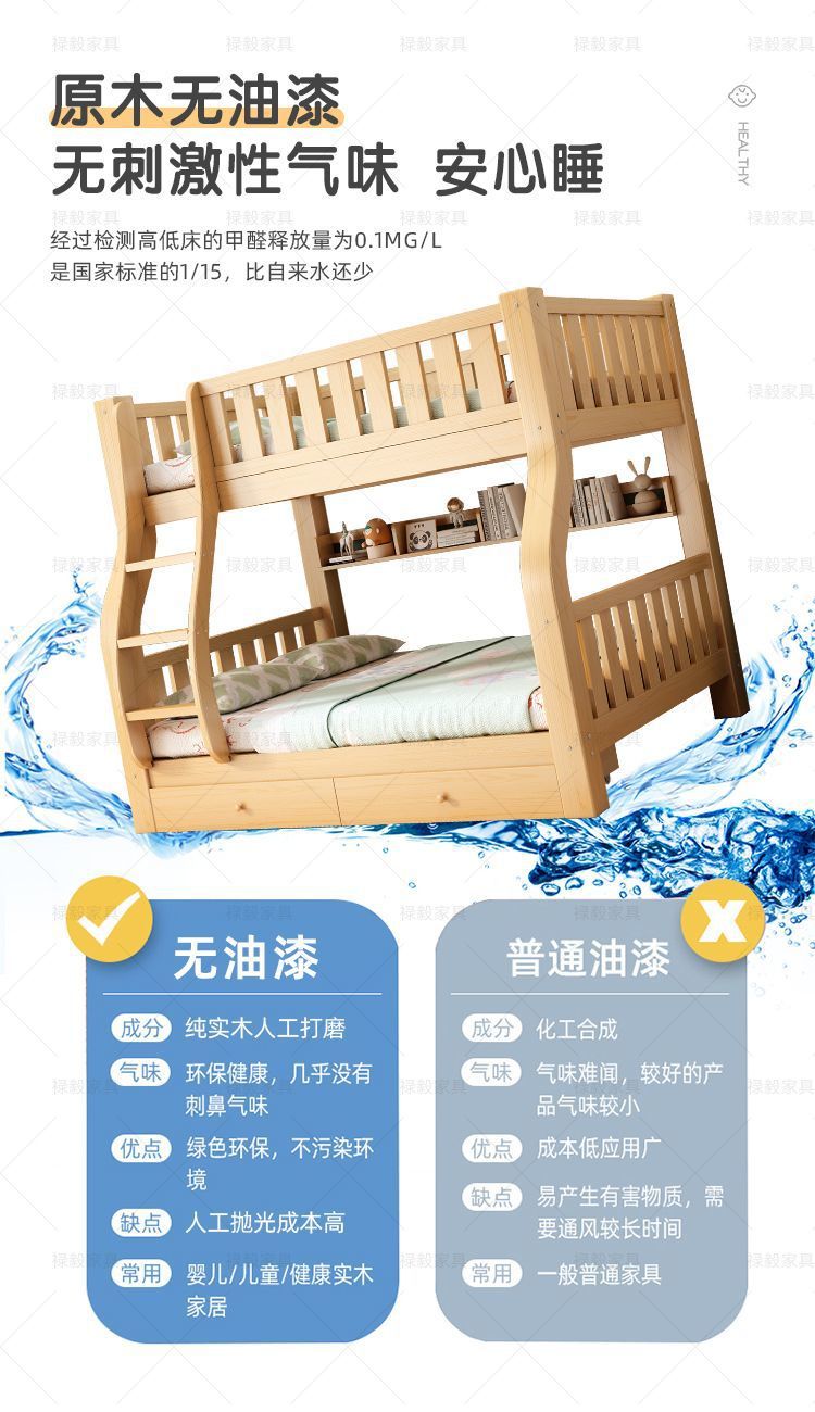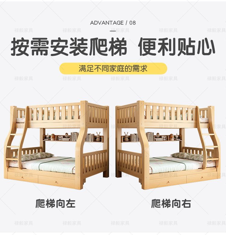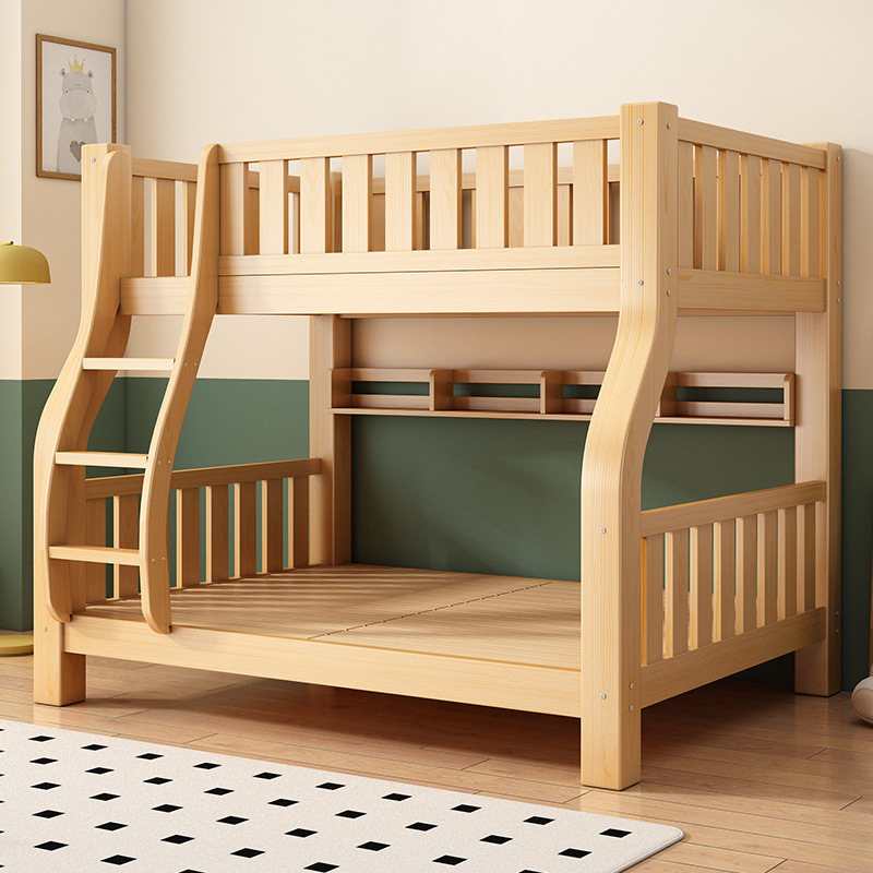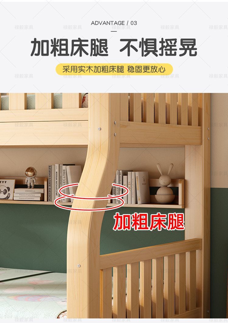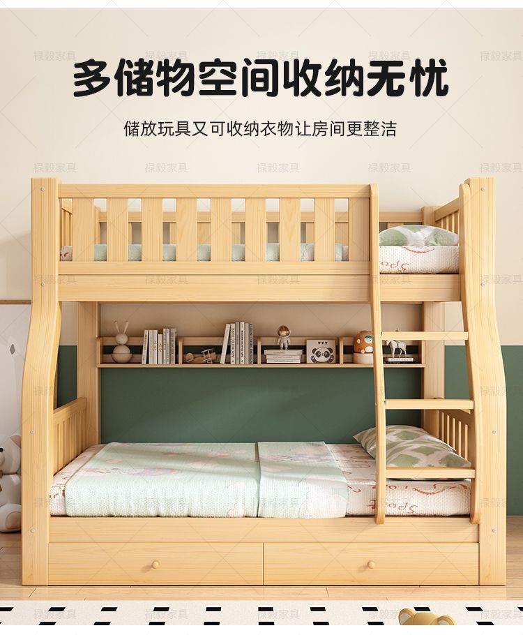 두꺼운 원목 침대, 이층 침대, 2층 기숙사, 소형 아파트, 다기능 높낮이 이층 어린이 침대