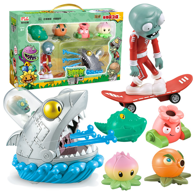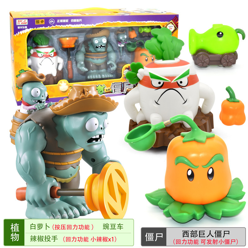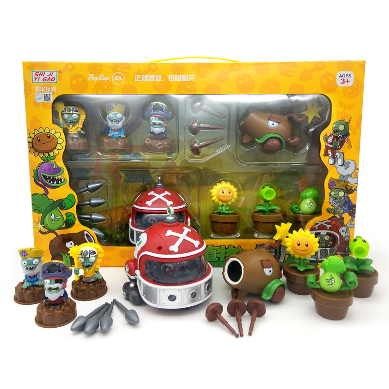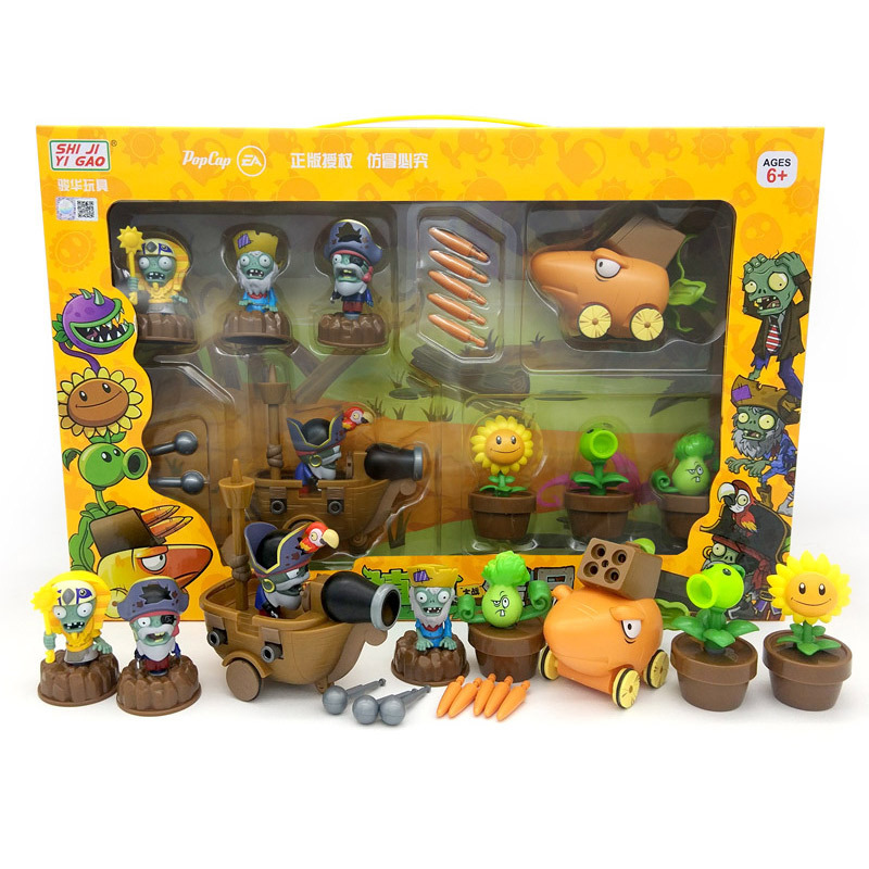 정품 식물 대 좀비 장난감 세트 관성 풀백 자동차 옥수수 대포 해적 선장 BOSS 소년