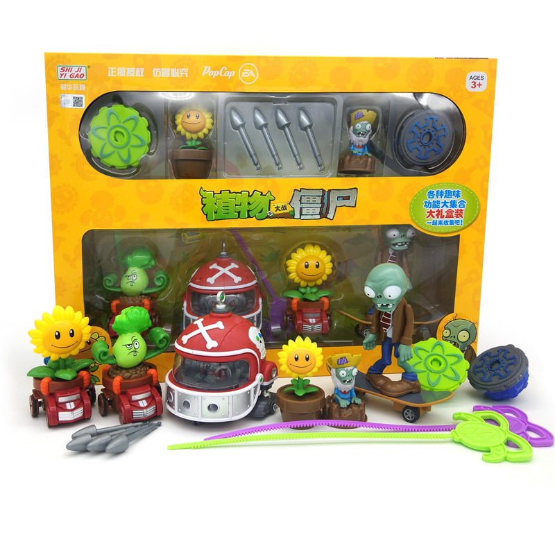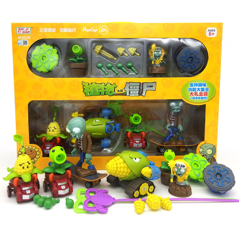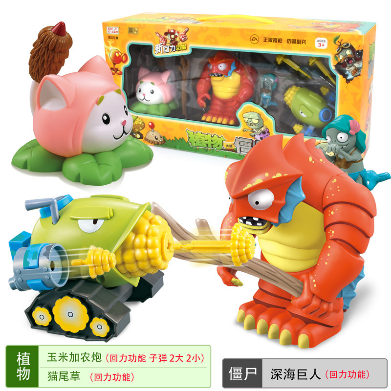 정품 식물 대 좀비 장난감 세트 관성 풀백 자동차 옥수수 대포 해적 선장 BOSS 소년스토어 가기