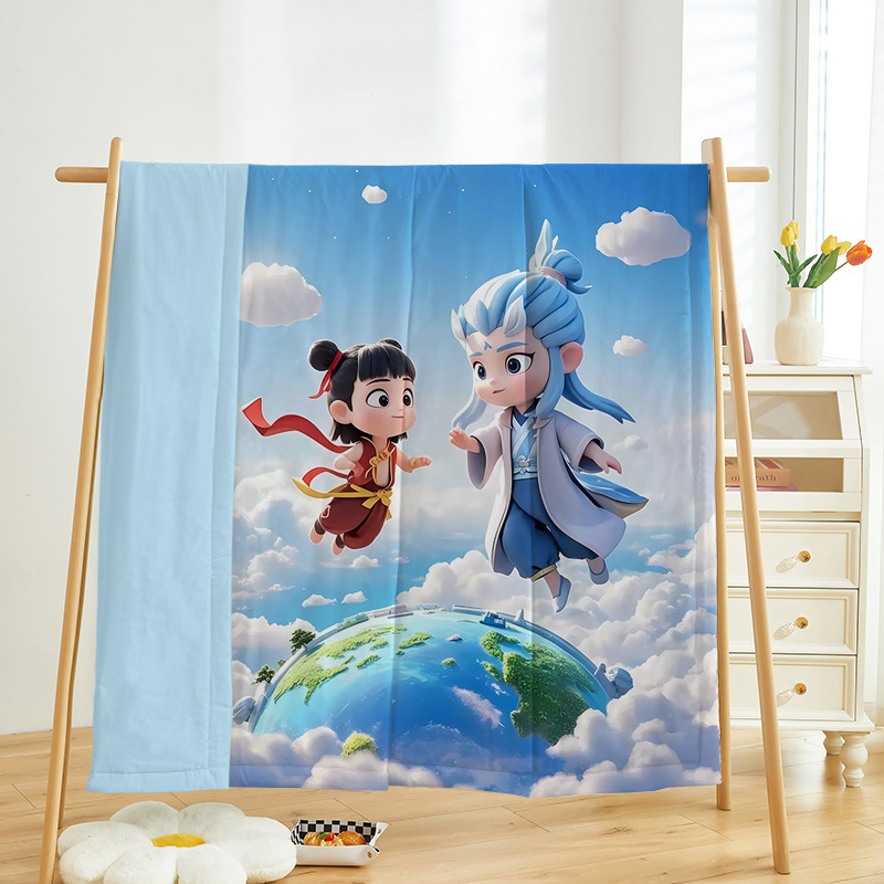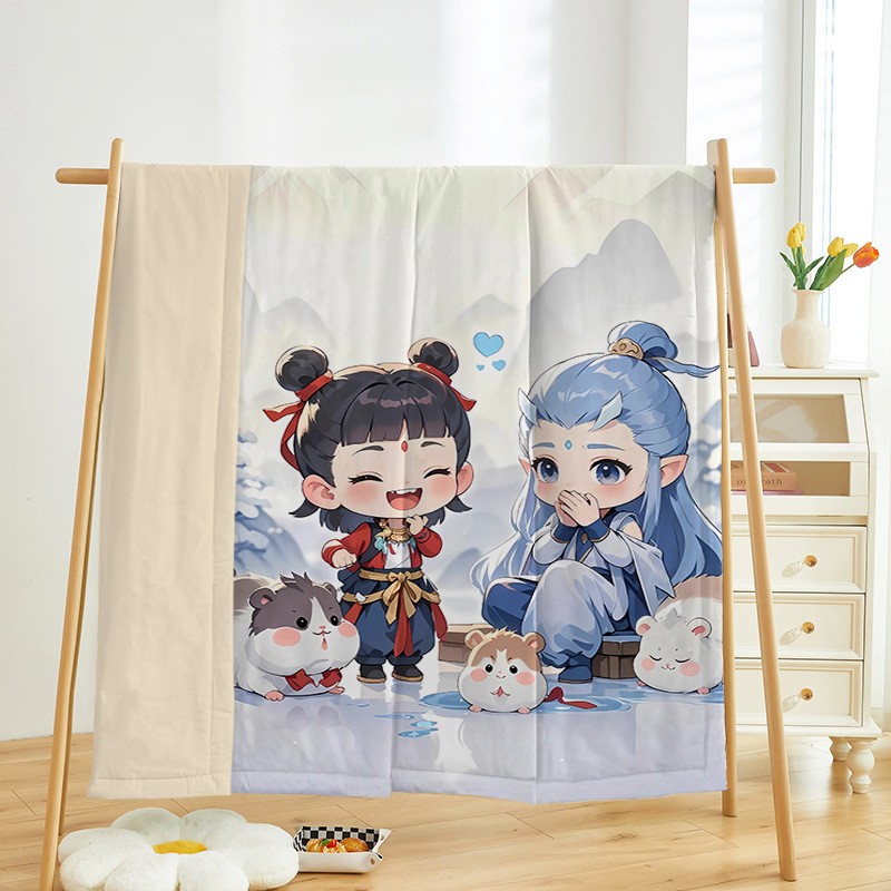 여름 만화 에어컨 퀼트 Nezha 만화 여름 멋진 퀼트 사무실 목도리 낮잠 얇은 퀼트 기숙사 싱글 퀼트