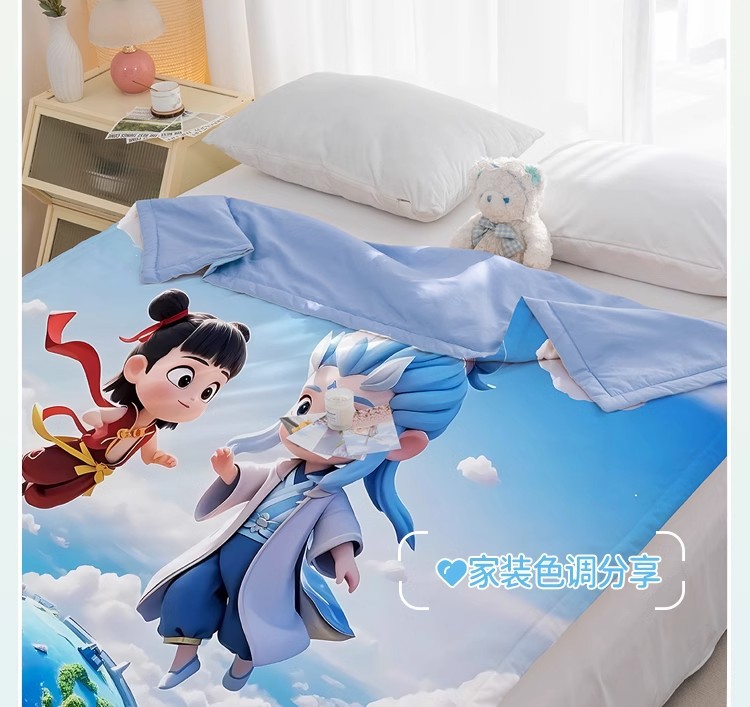 여름 만화 에어컨 퀼트 Nezha 만화 여름 멋진 퀼트 사무실 목도리 낮잠 얇은 퀼트 기숙사 싱글 퀼트스토어 가기