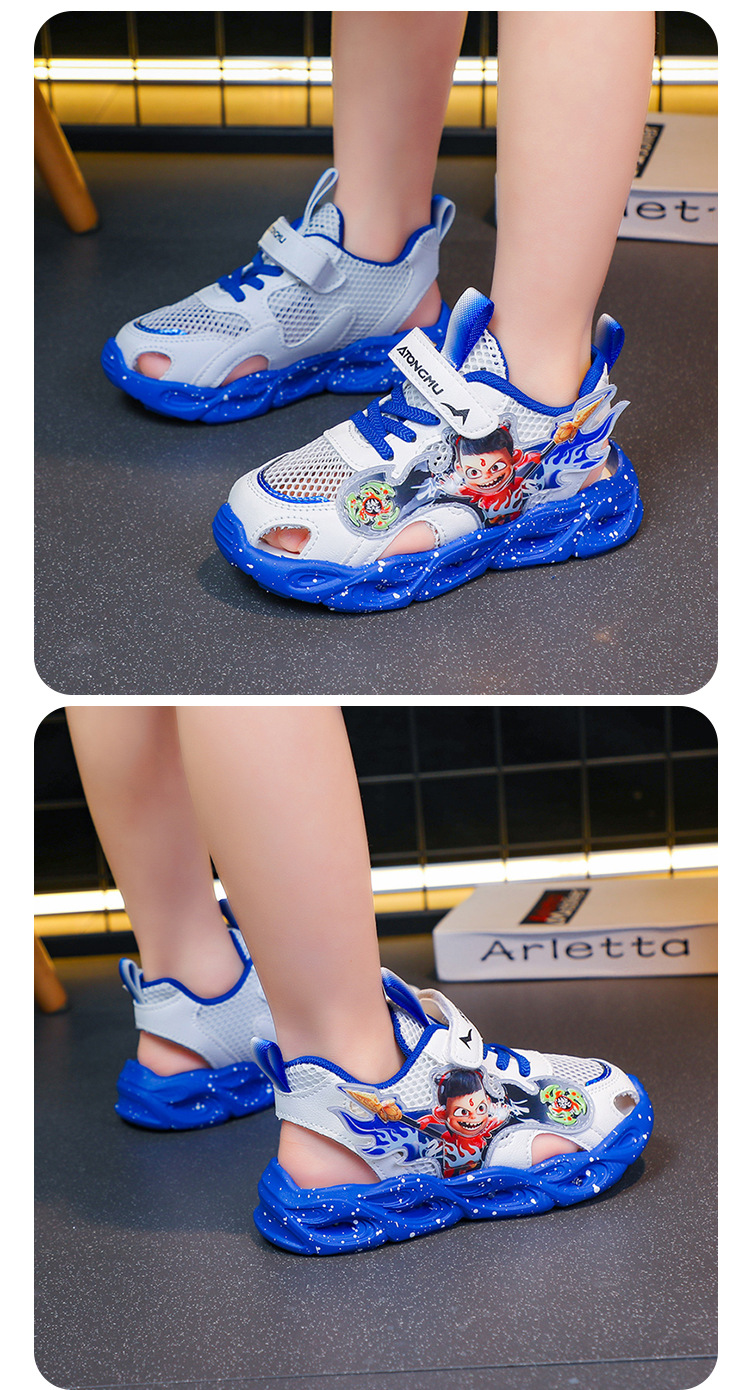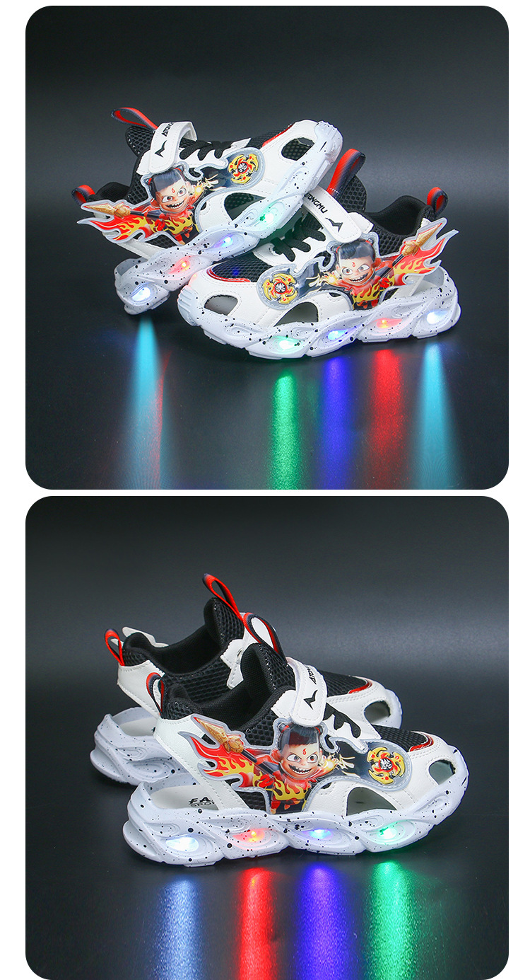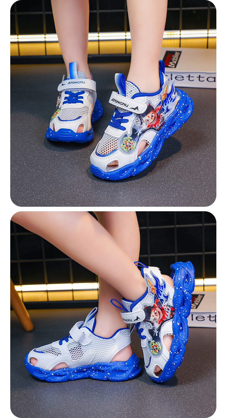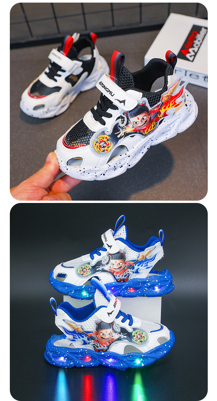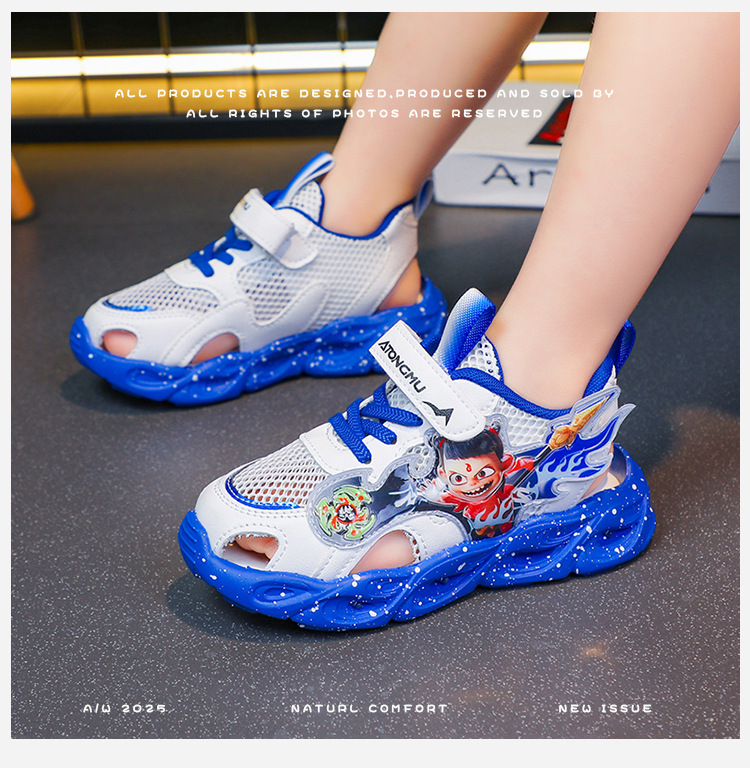조명이있는 도매 어린이 스포츠 샌들 2025 여름 새 소년 샌들 그물 빈 발가락 샌들