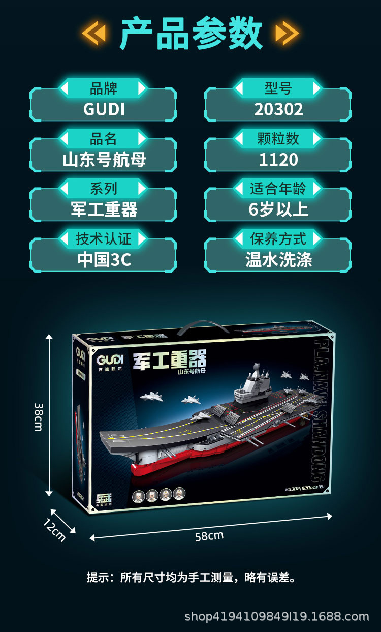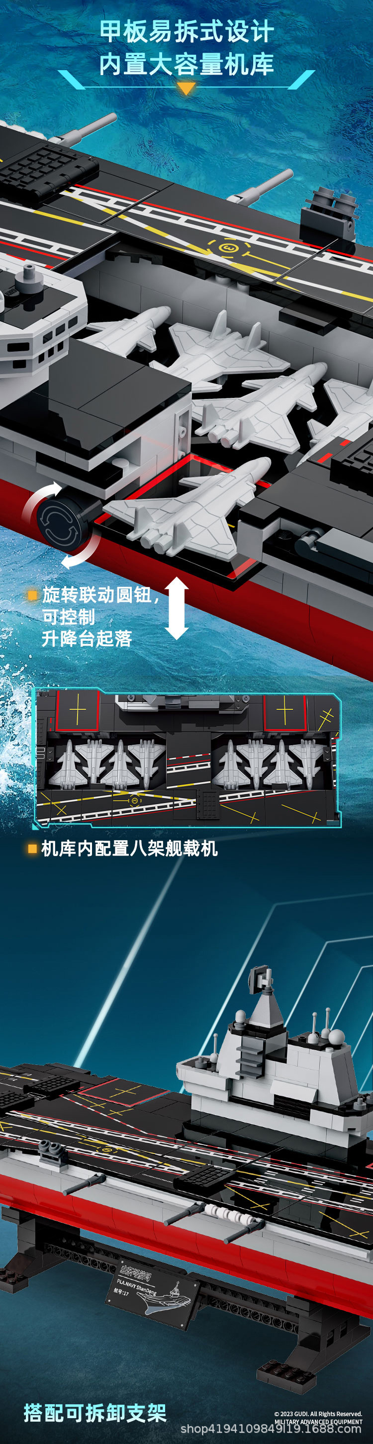 Goody 빌딩 블록 군사 중장비 Shandong 항공 모함 소년 대형 모델 등급 조립 장난감 장식품 20302스토어 가기