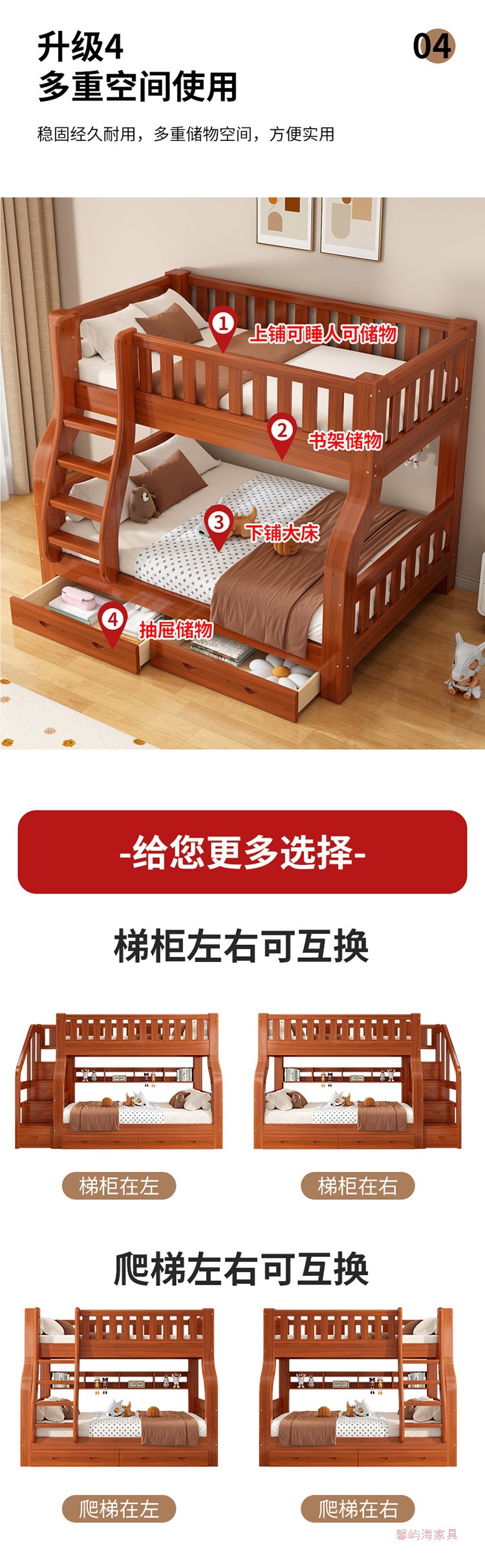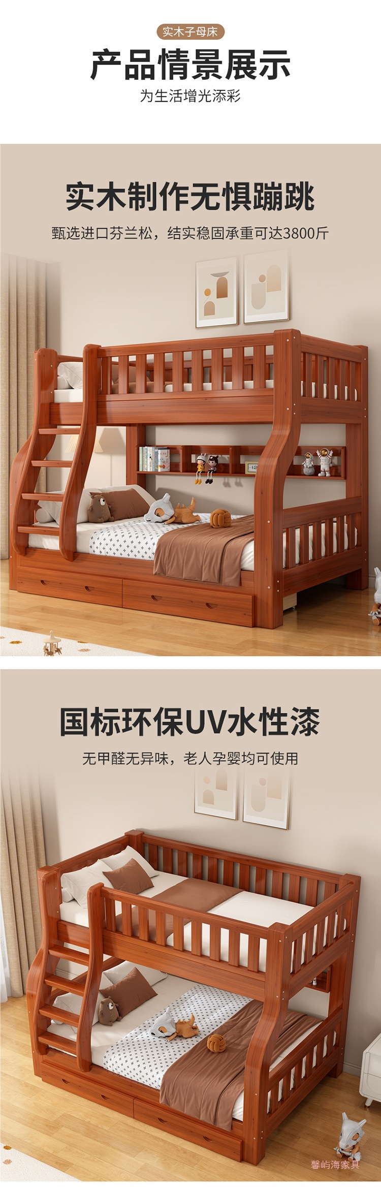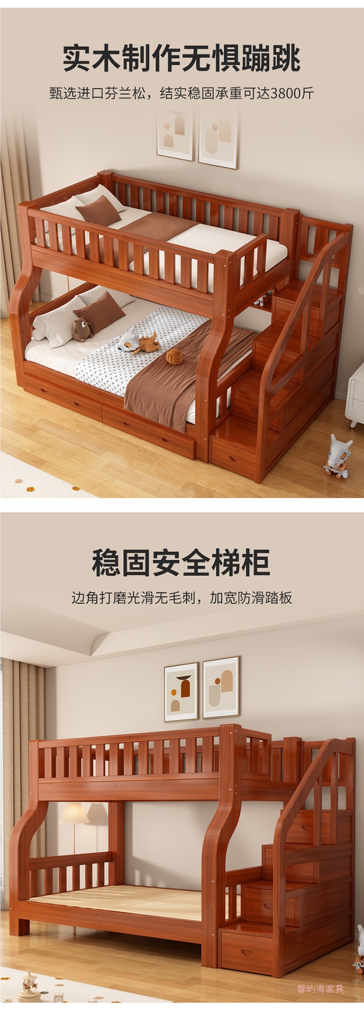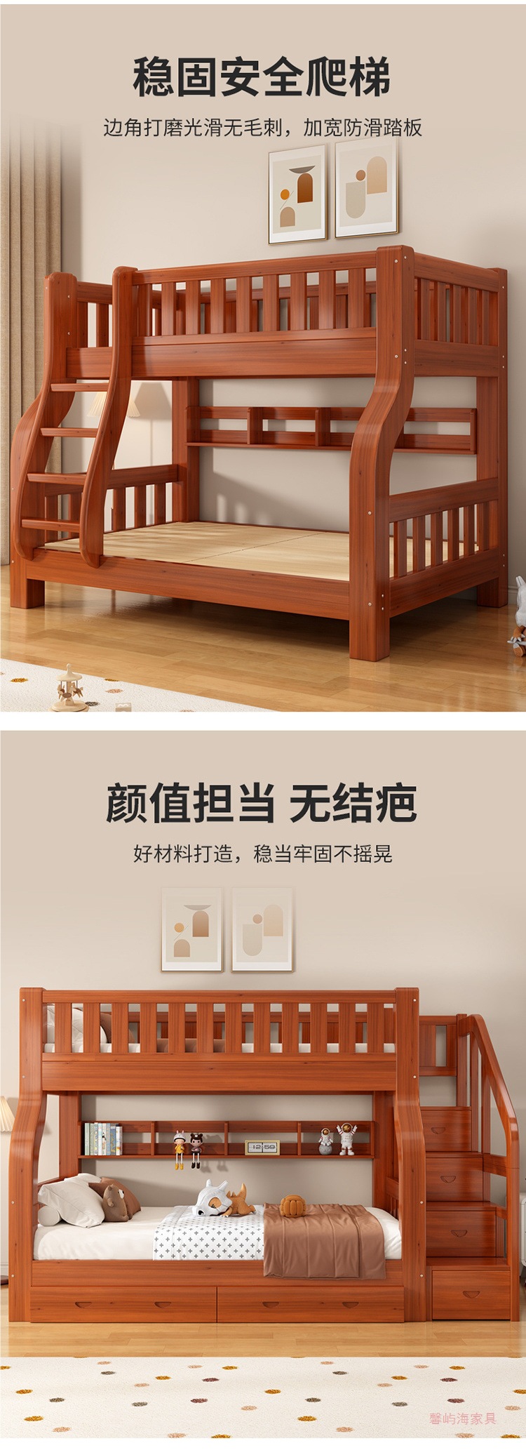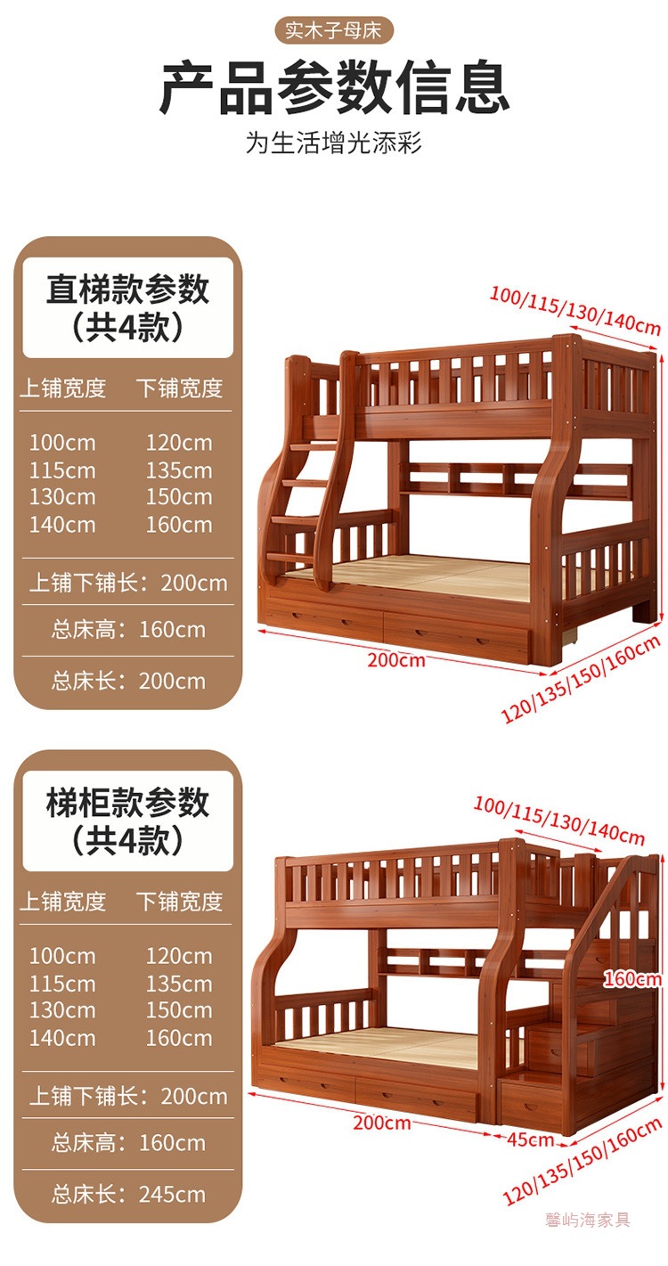 단단한 나무 침대 높고 낮은 벙크 침대 상단 및 낮은 벙크 침대 나무 침대 작은 아파트 다기능 조합 어린이 2 층 어머니 침대스토어 가기