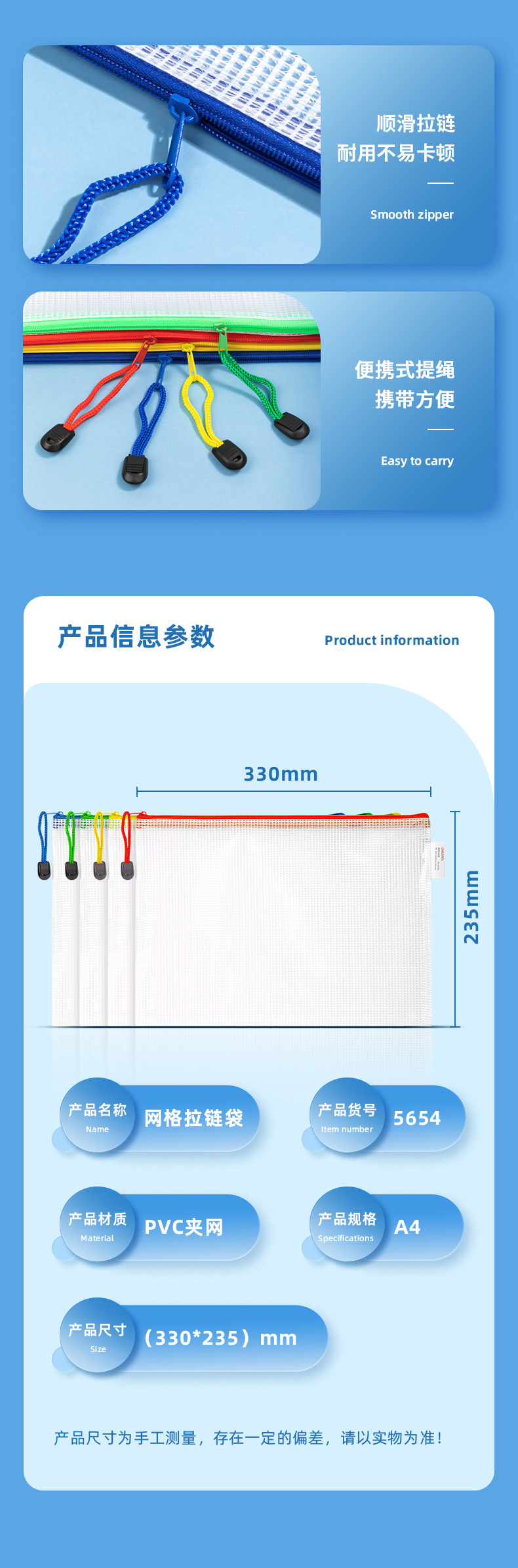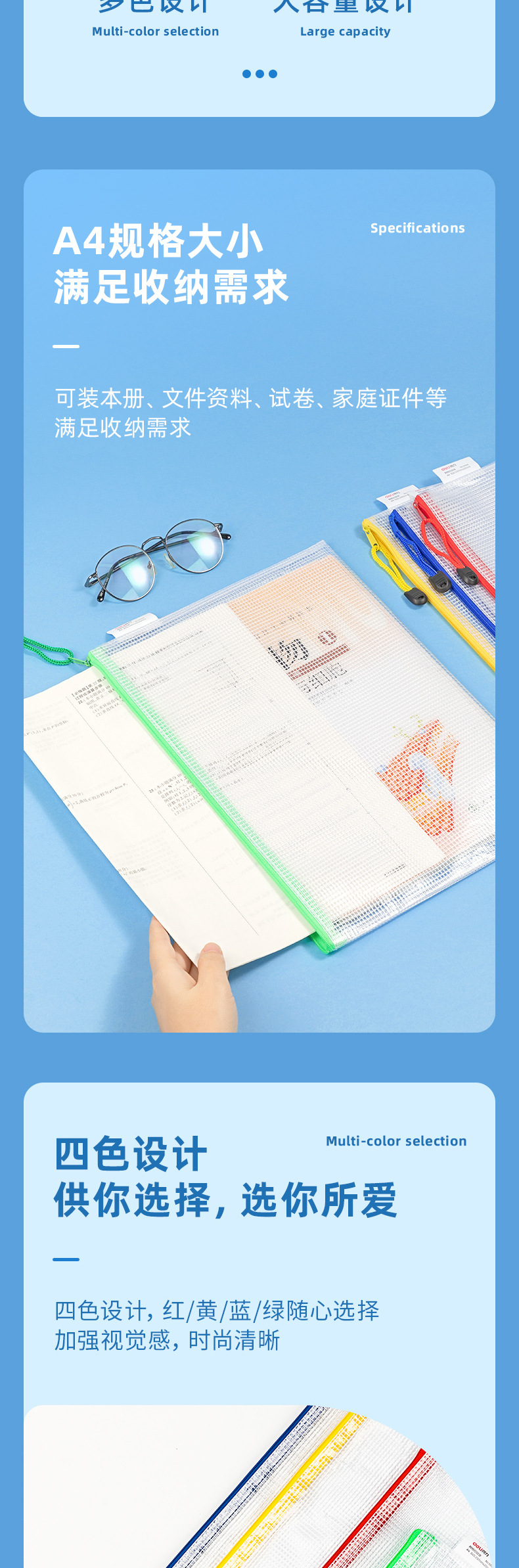 델리 5654 메쉬 지퍼백 A4 방수 학생 시험지 사무용 문서 보관 가방 도매스토어 가기