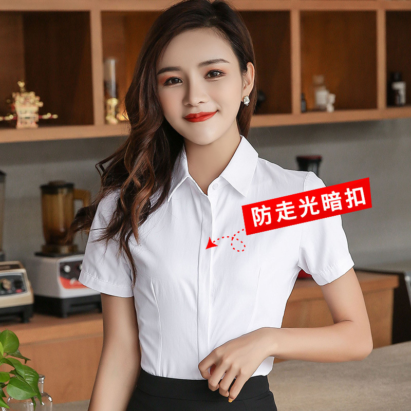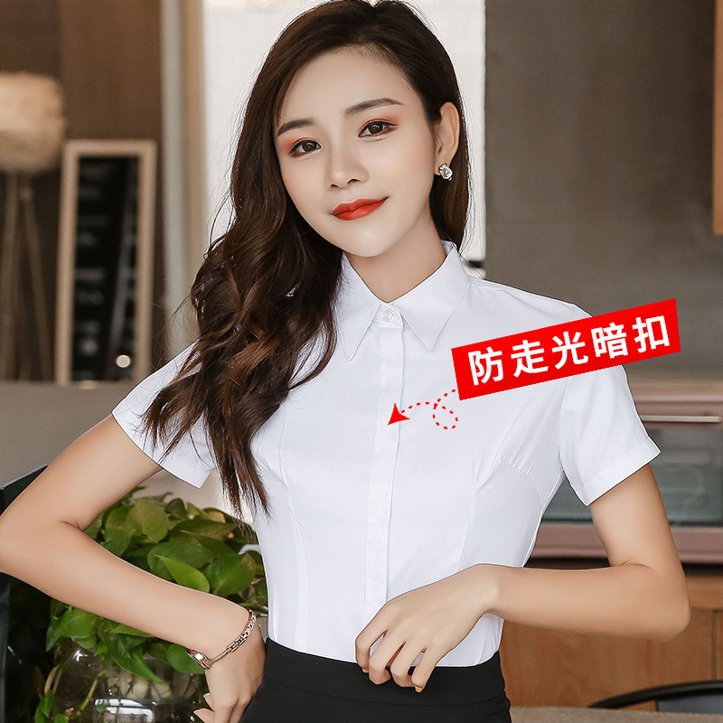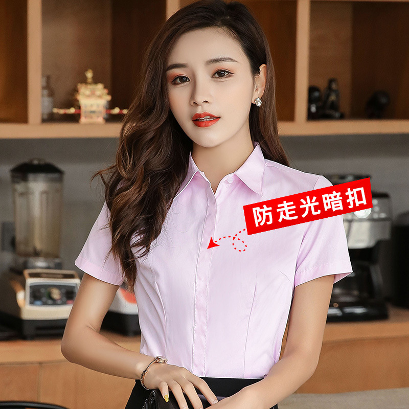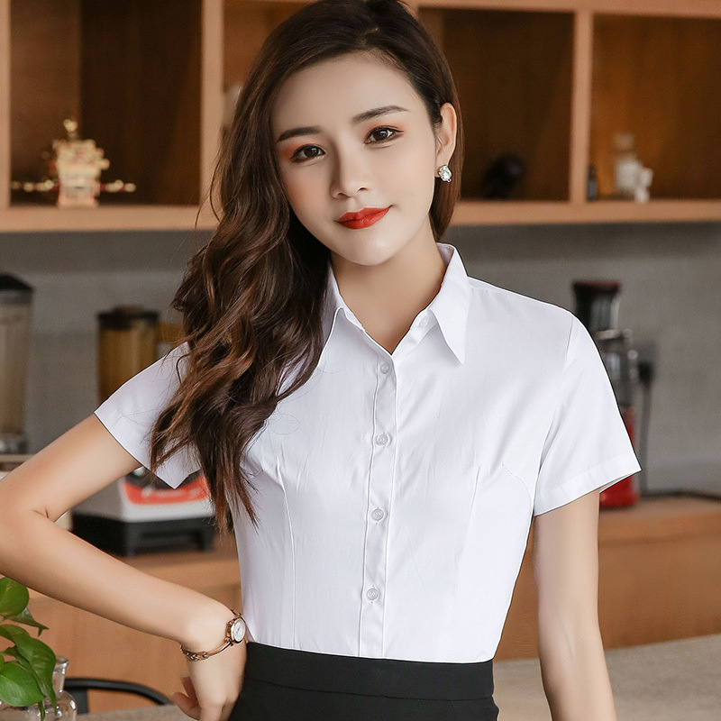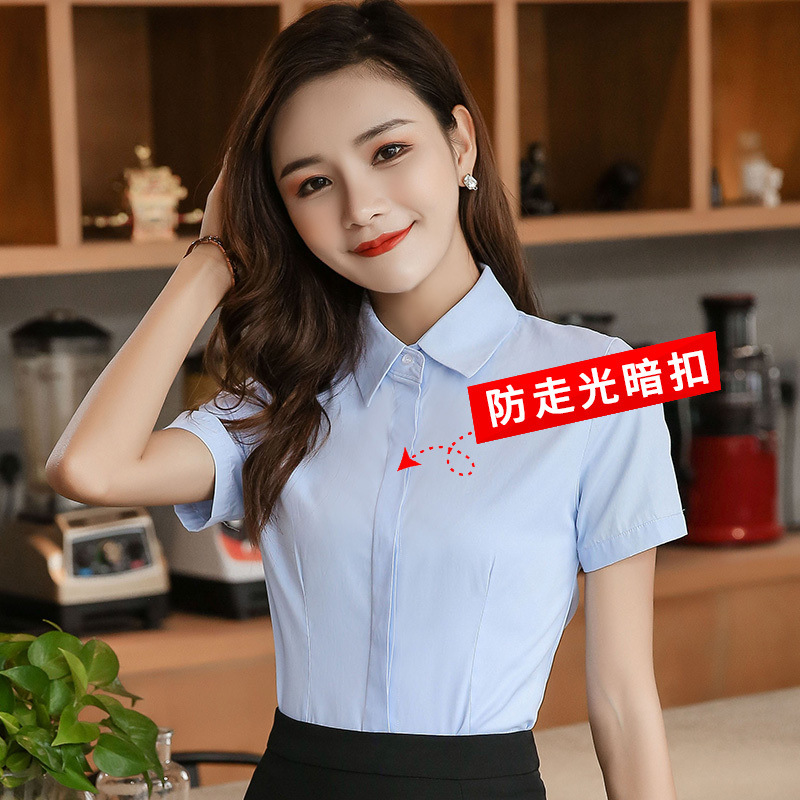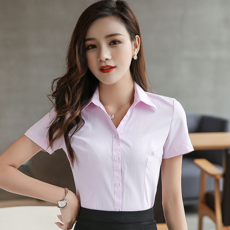 화이트 셔츠 여성용 원피스 신강 반팔 봄과 여름 플러스 사이즈 전문 작업복 블루 파우더 긴팔 매끈한 툴링 셔츠스토어 가기