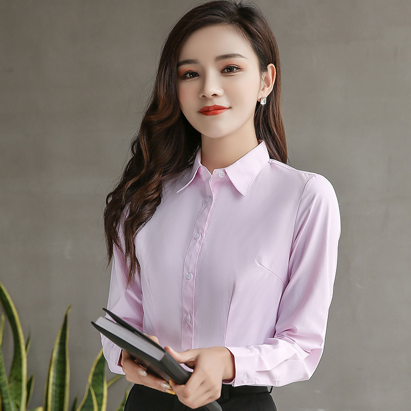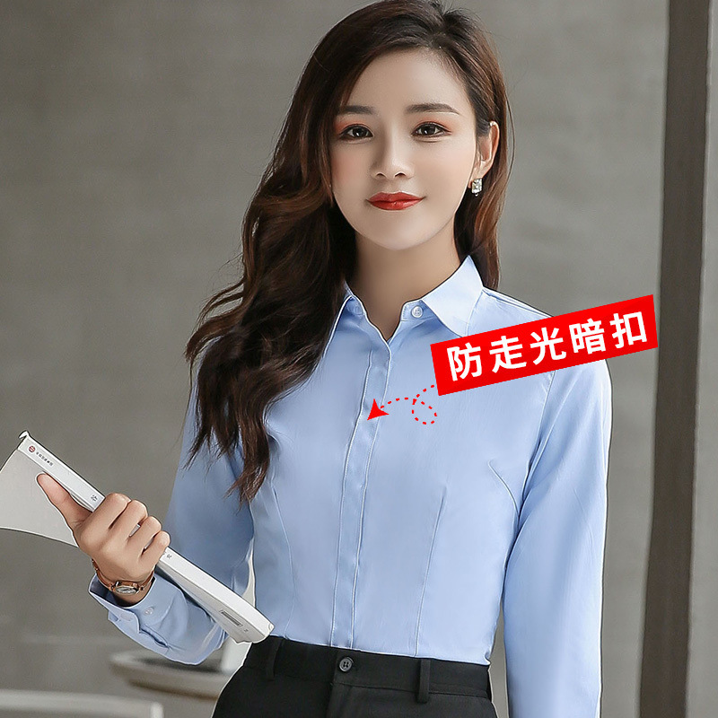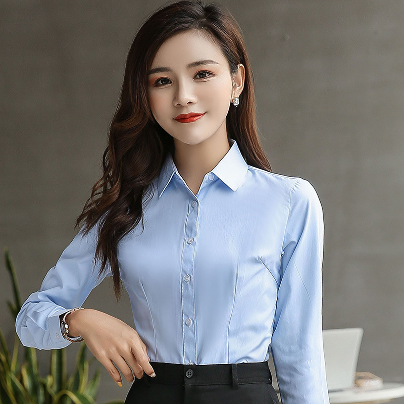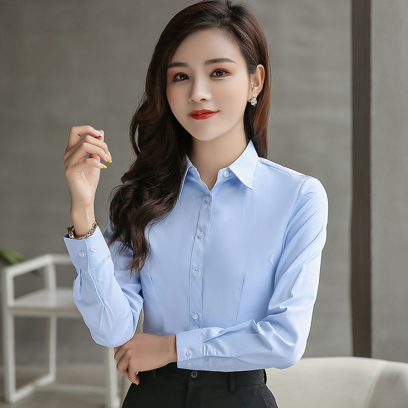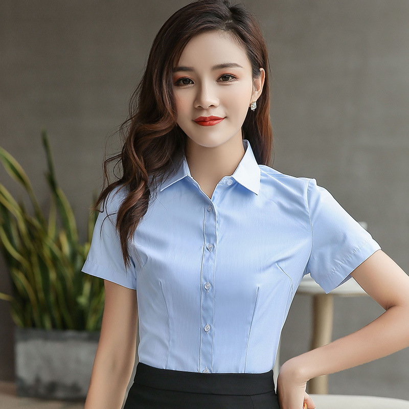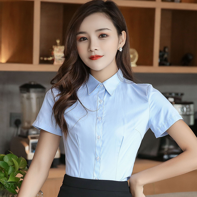 화이트 셔츠 여성용 원피스 신강 반팔 봄과 여름 플러스 사이즈 전문 작업복 블루 파우더 긴팔 매끈한 툴링 셔츠