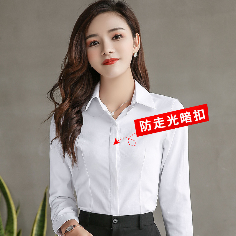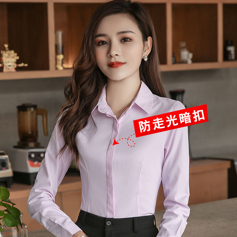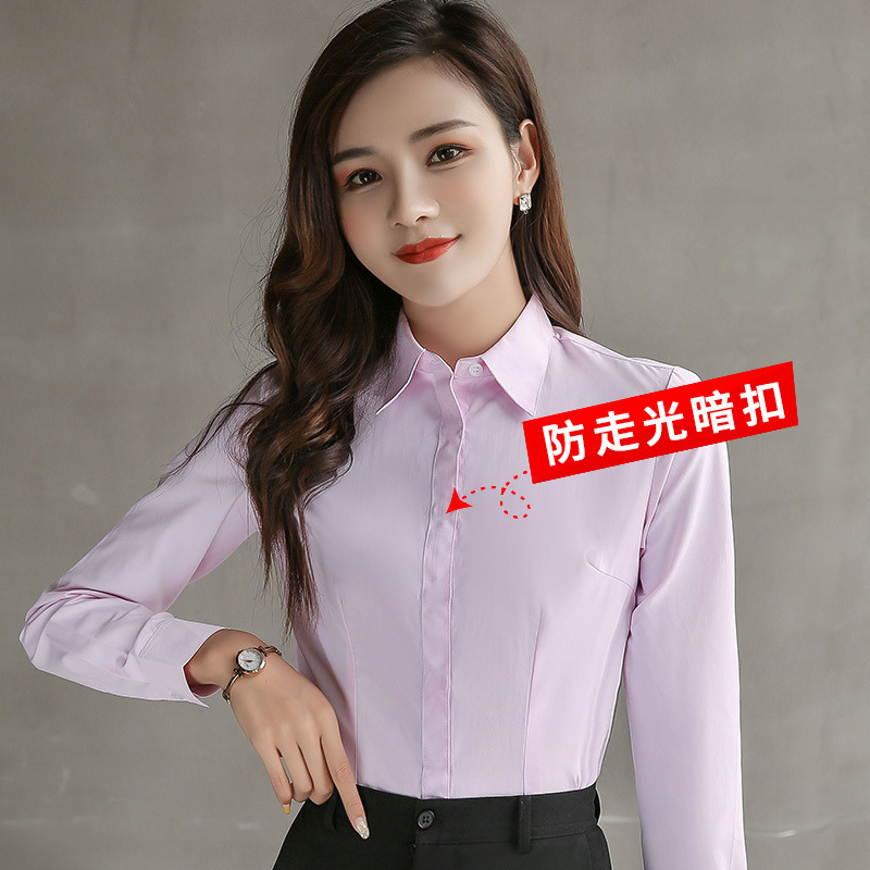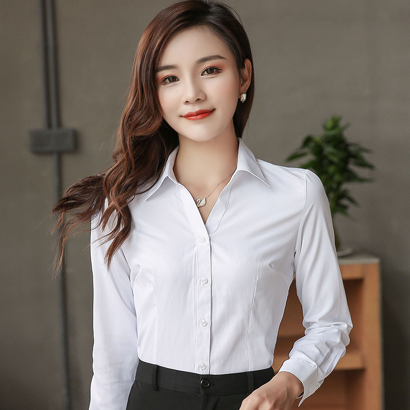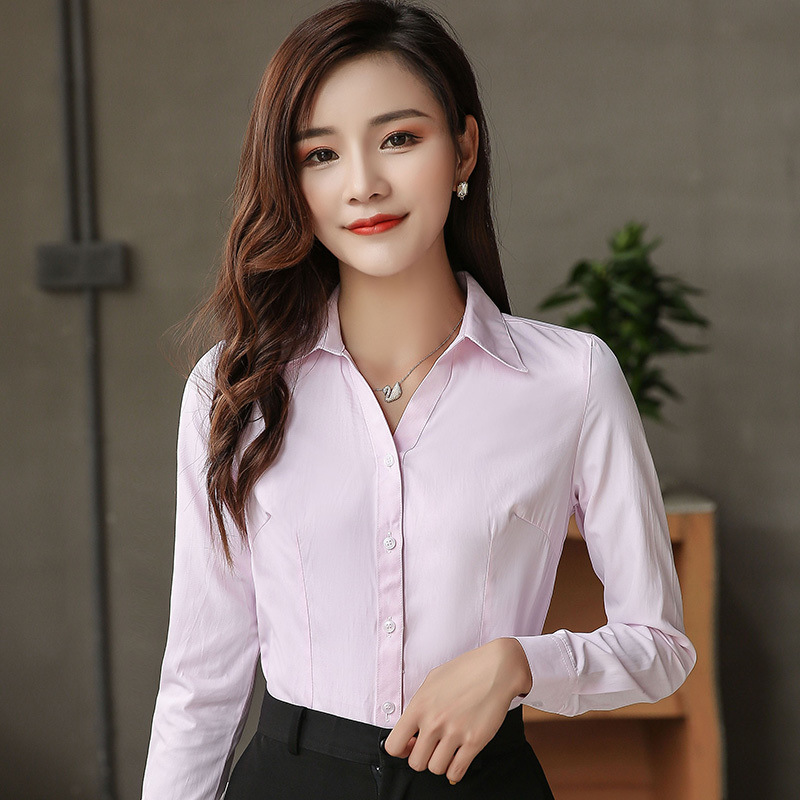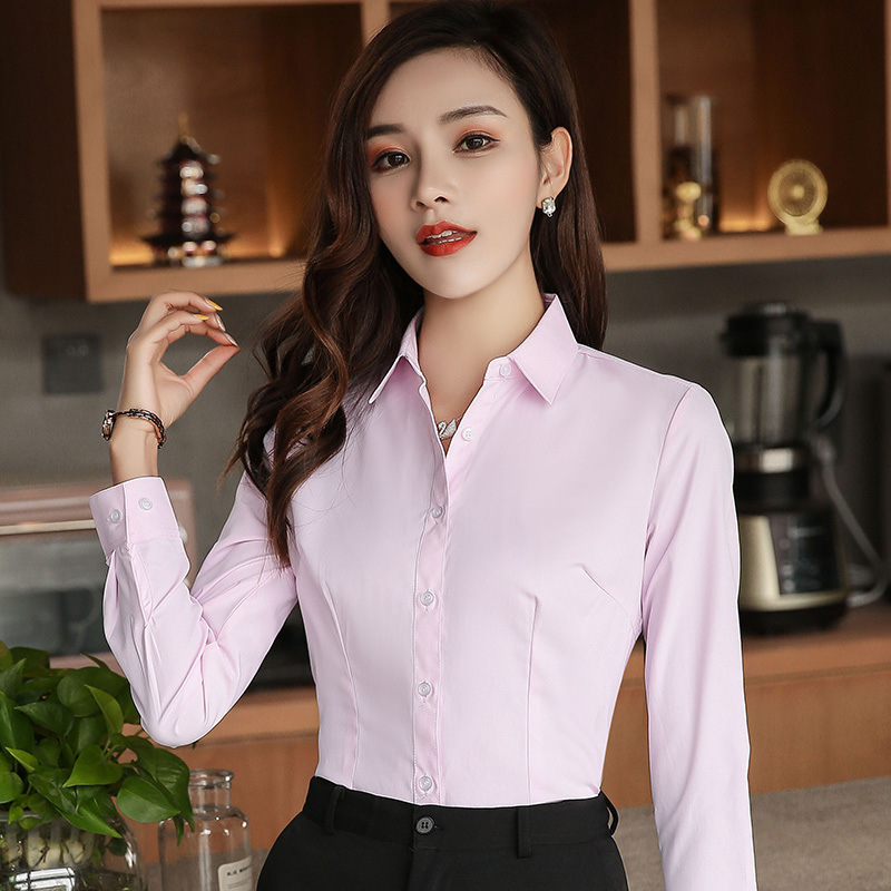 화이트 셔츠 여성용 원피스 신강 반팔 봄과 여름 플러스 사이즈 전문 작업복 블루 파우더 긴팔 매끈한 툴링 셔츠