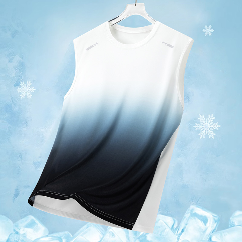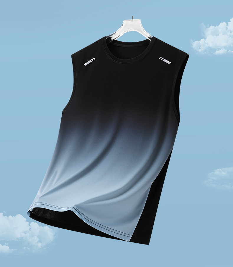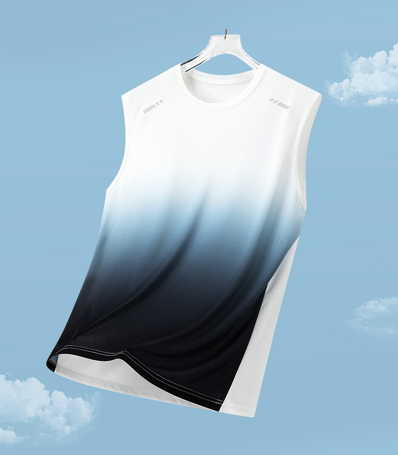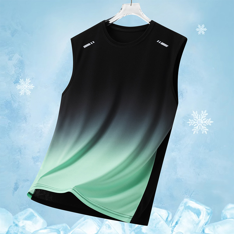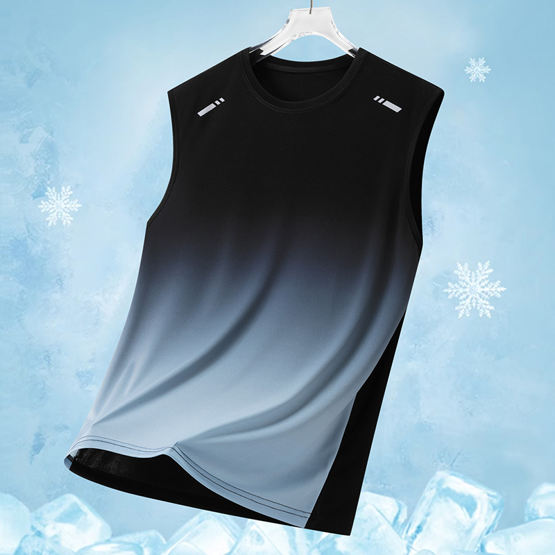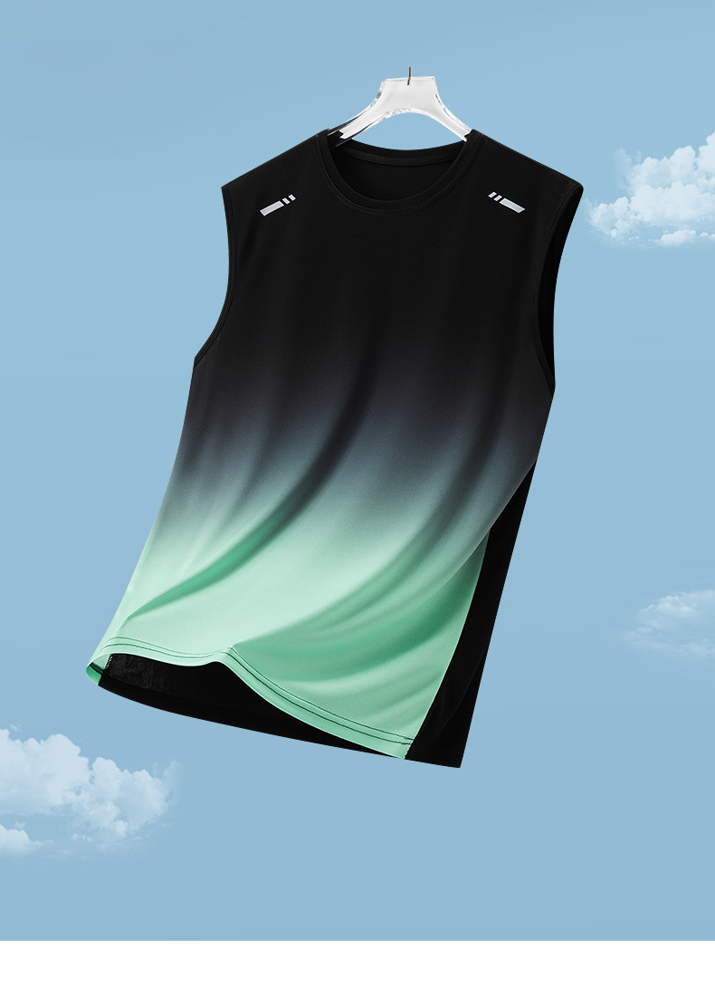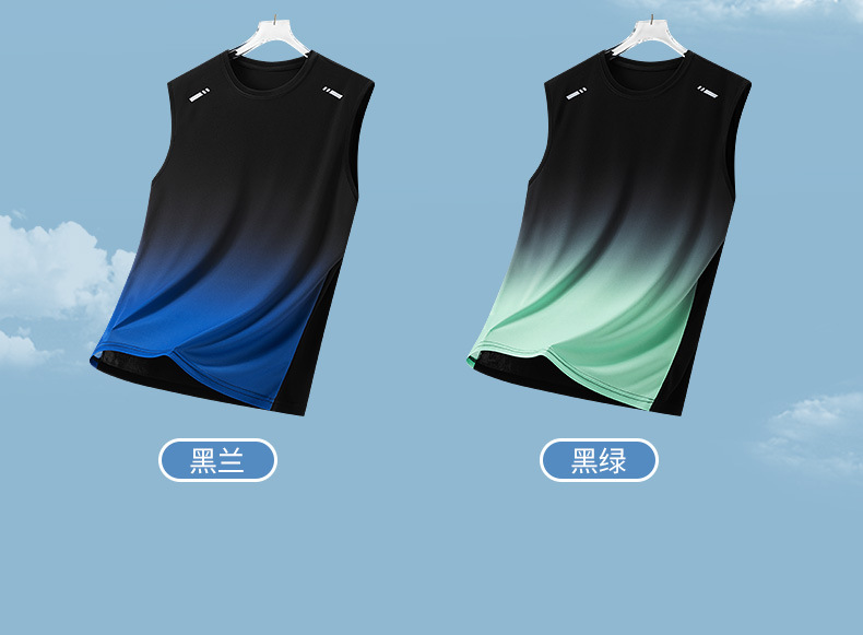 국경을 넘나드는 인기 남성 그라데이션 스포츠 조끼 여름 가볍고 얇은 민소매 라운드 넥 티셔츠 청소년 루즈 러닝 트렌디 T