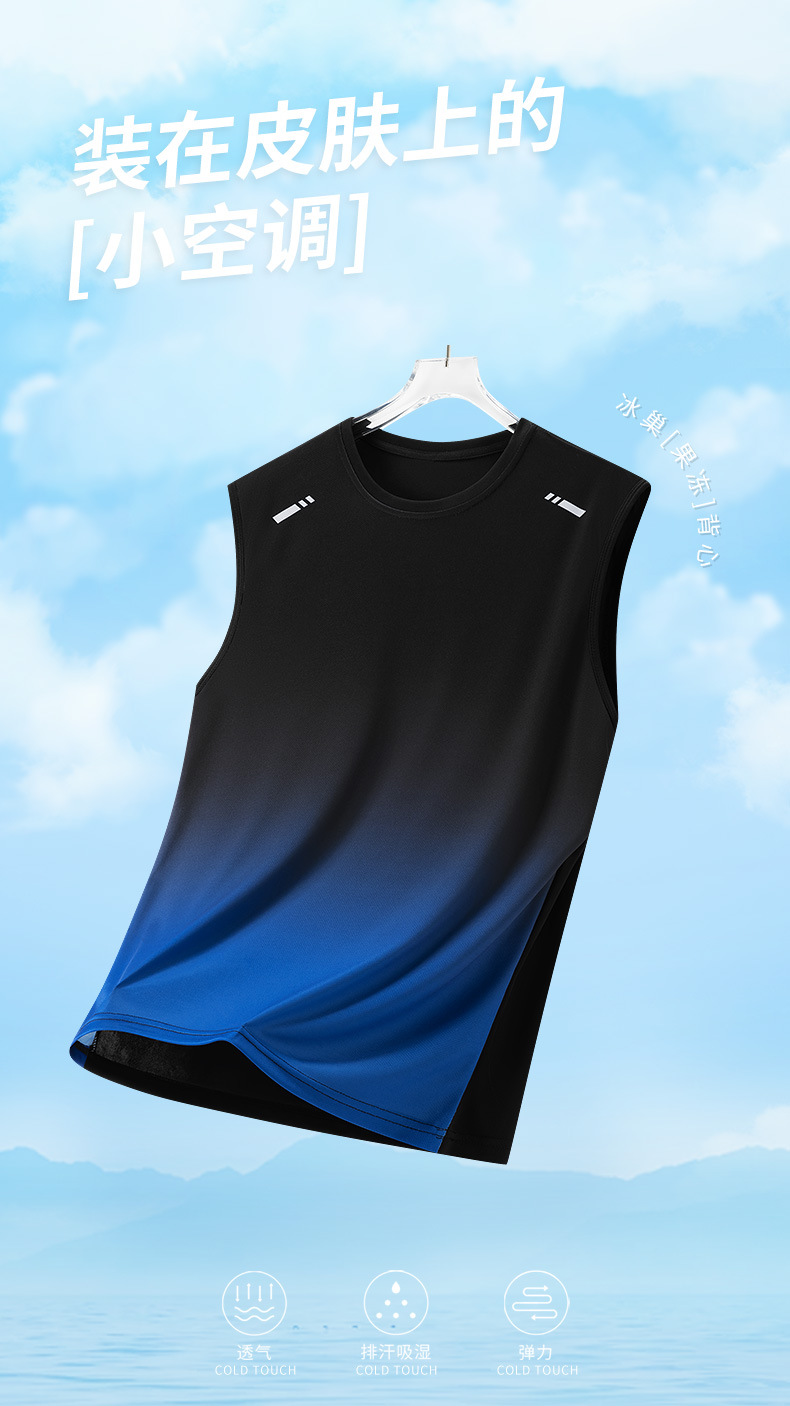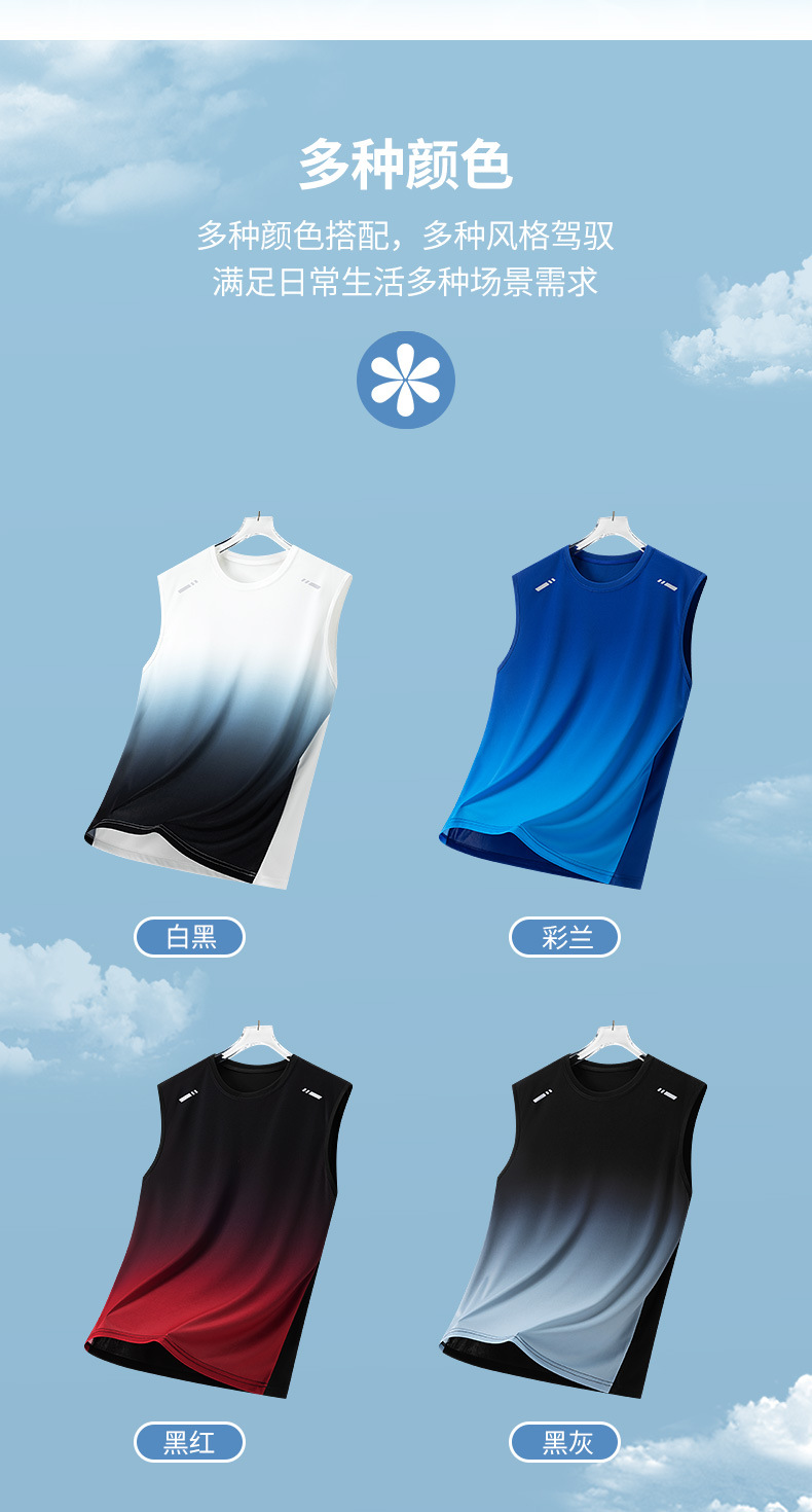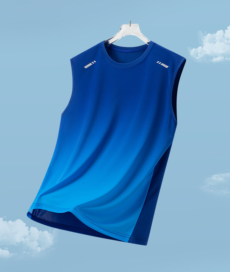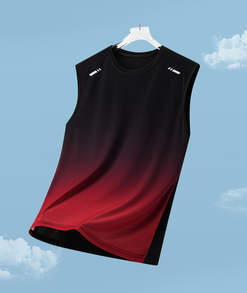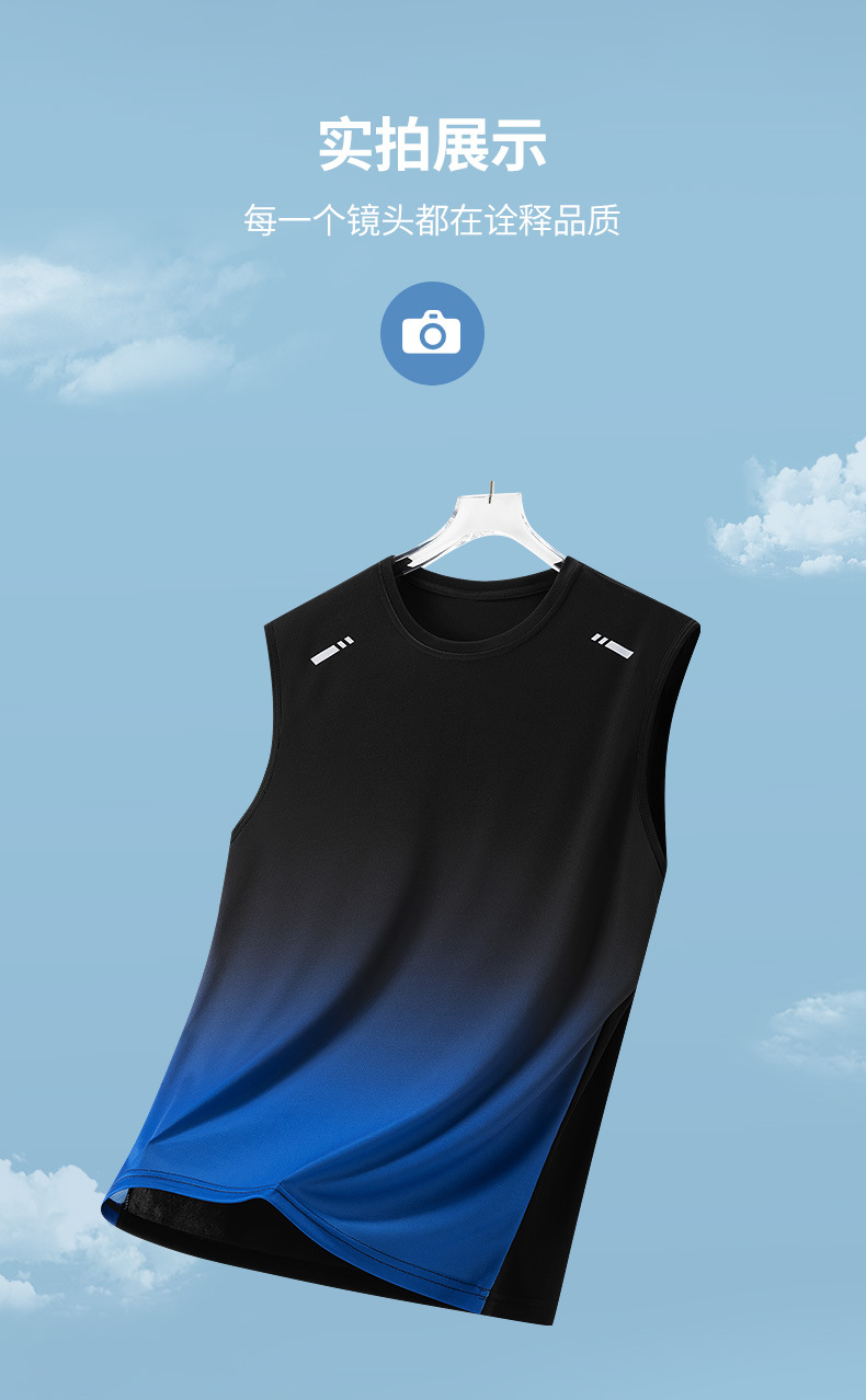 국경을 넘나드는 인기 남성 그라데이션 스포츠 조끼 여름 가볍고 얇은 민소매 라운드 넥 티셔츠 청소년 루즈 러닝 트렌디 T