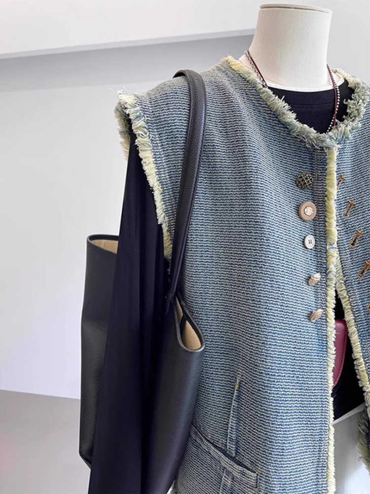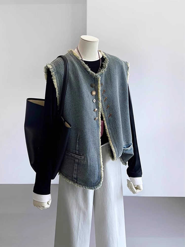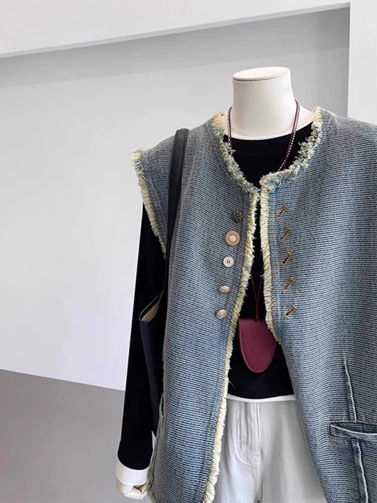 빈티지 데님 조끼 재킷 여성 봄 2025 새로운 유행 서양식 느슨한 민소매 조끼 조끼스토어 가기