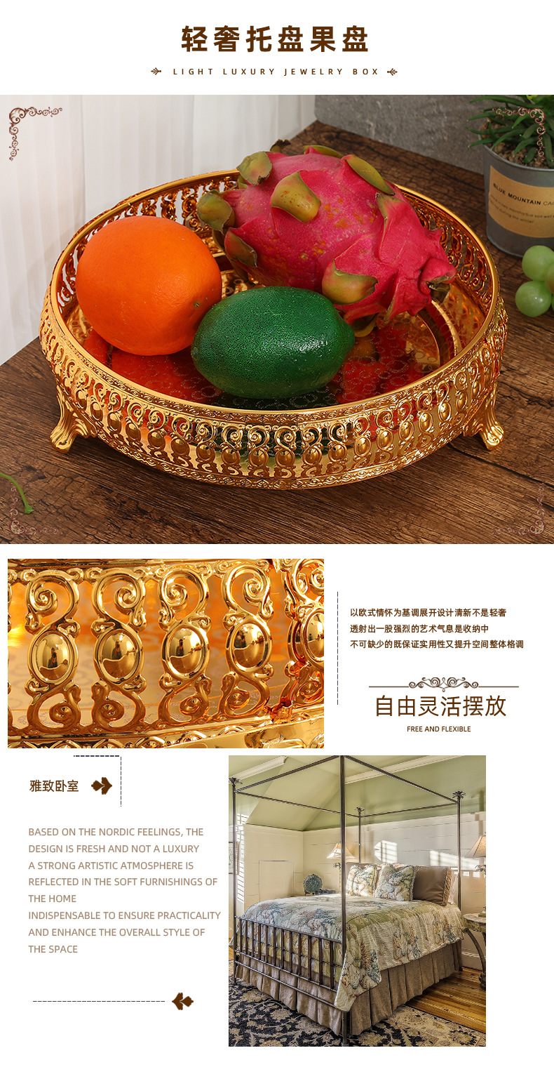 유럽 스타일 대형 중공 크리 에이 티브 골드 과일 접시 말린 과일 접시 호텔 로비 KTV 박스 선물 장식품 배송