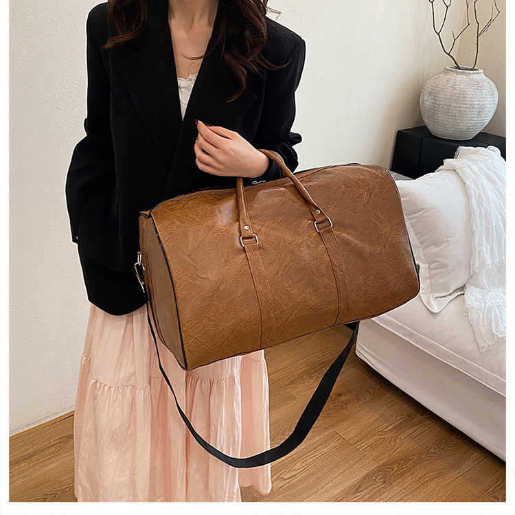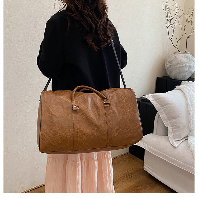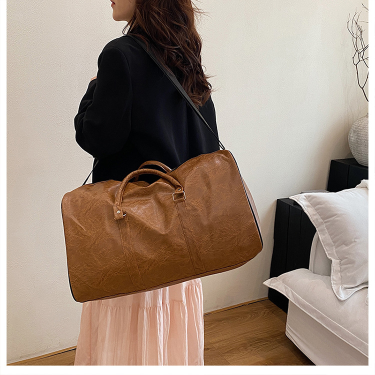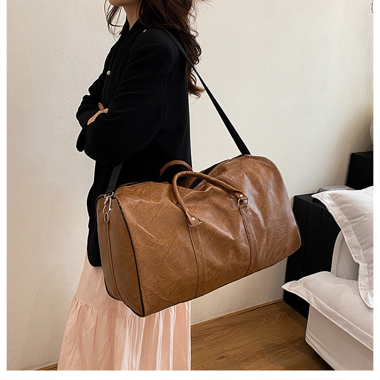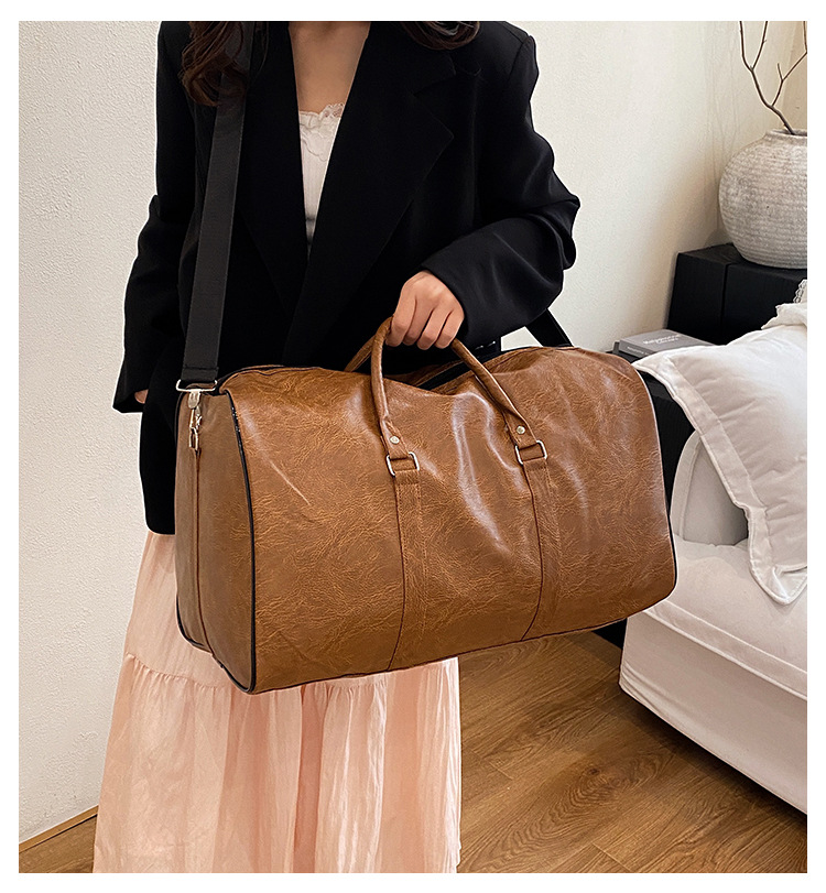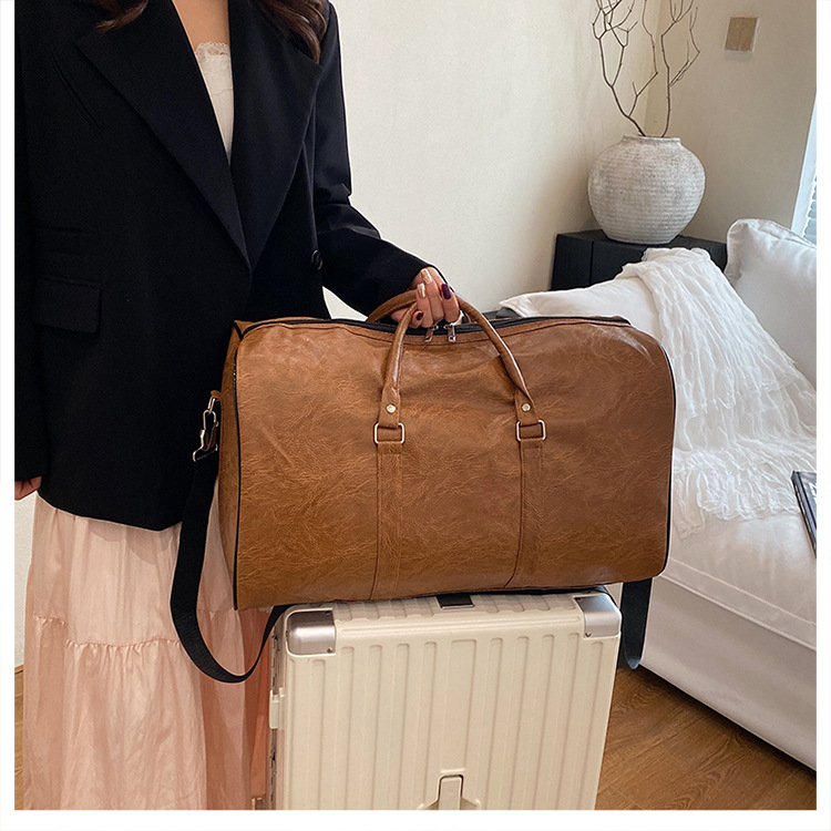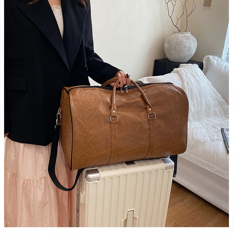 2025 새로운 간단한 PU 질감 여행 가방 유행 단색 질감 수하물 가방 여행 어깨 핸드백