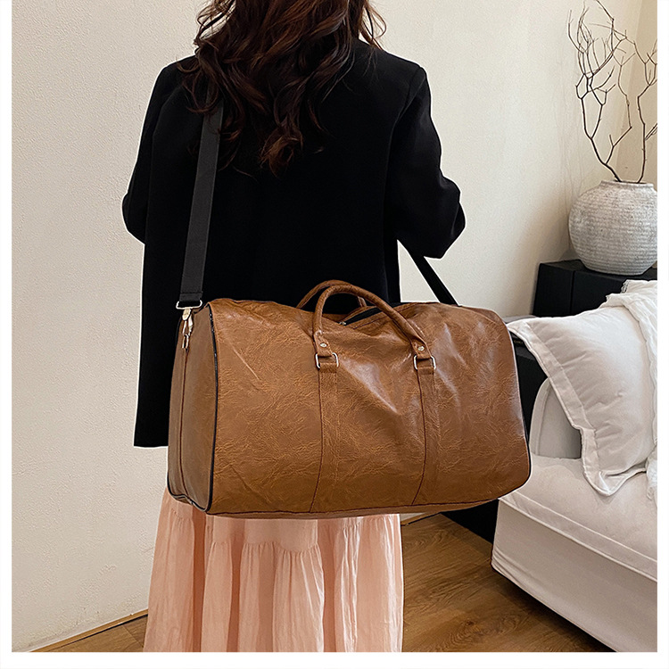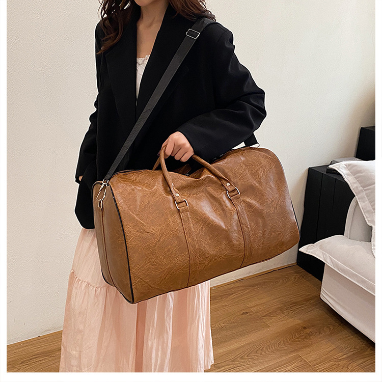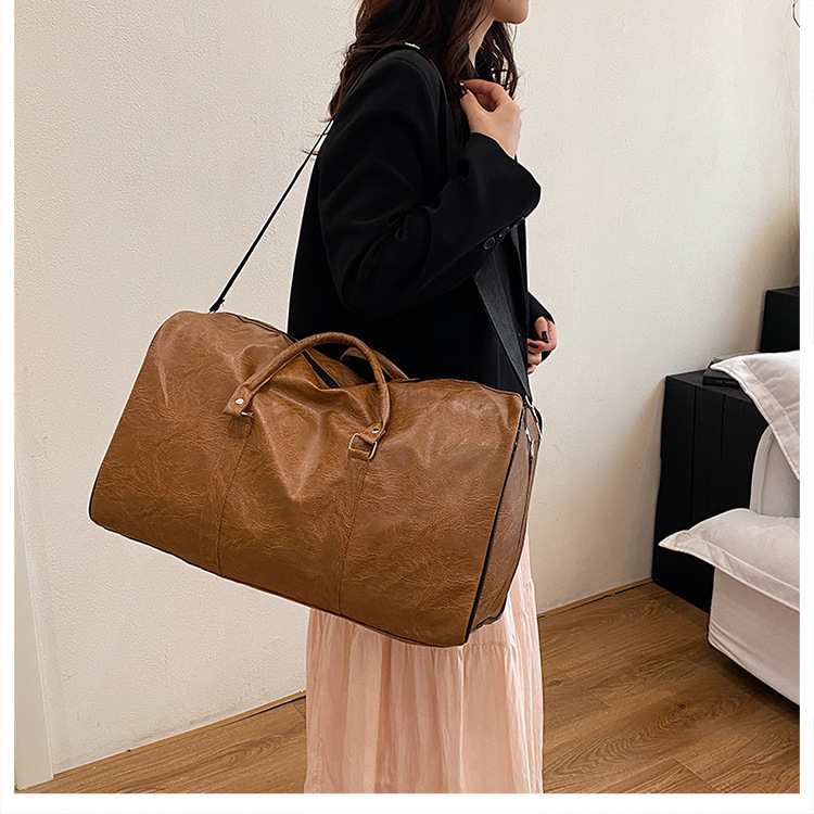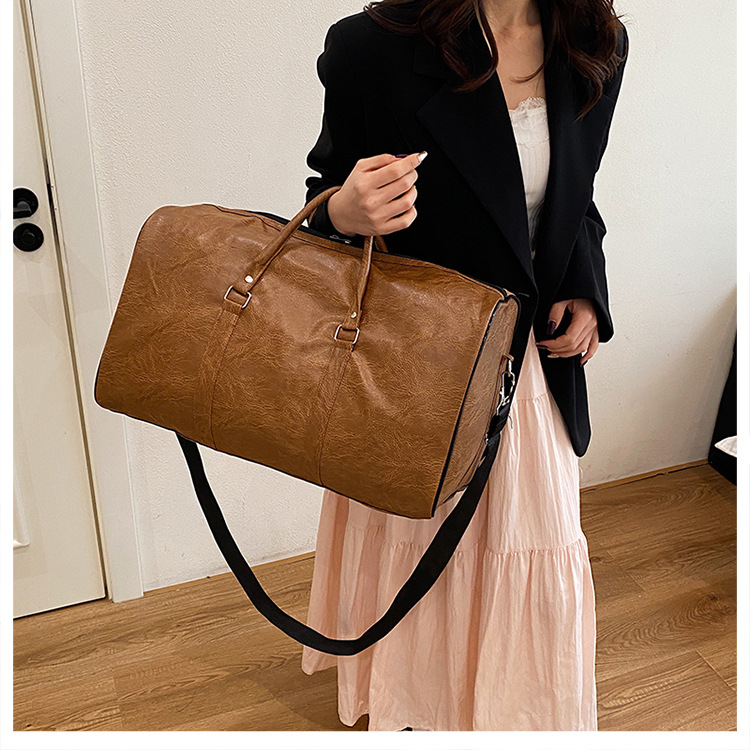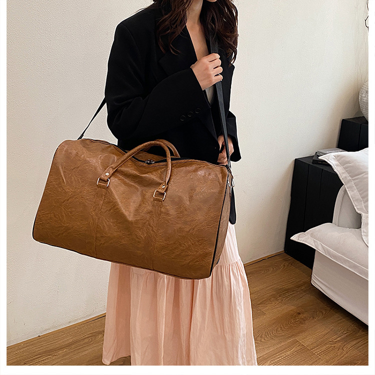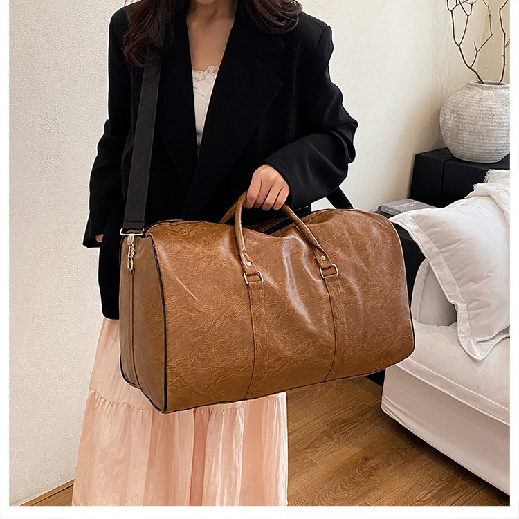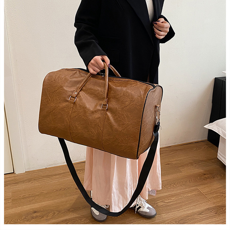 2025 새로운 간단한 PU 질감 여행 가방 유행 단색 질감 수하물 가방 여행 어깨 핸드백