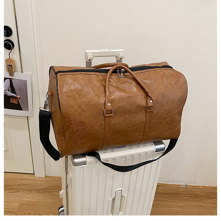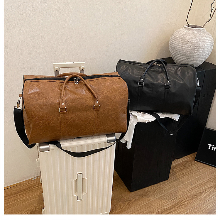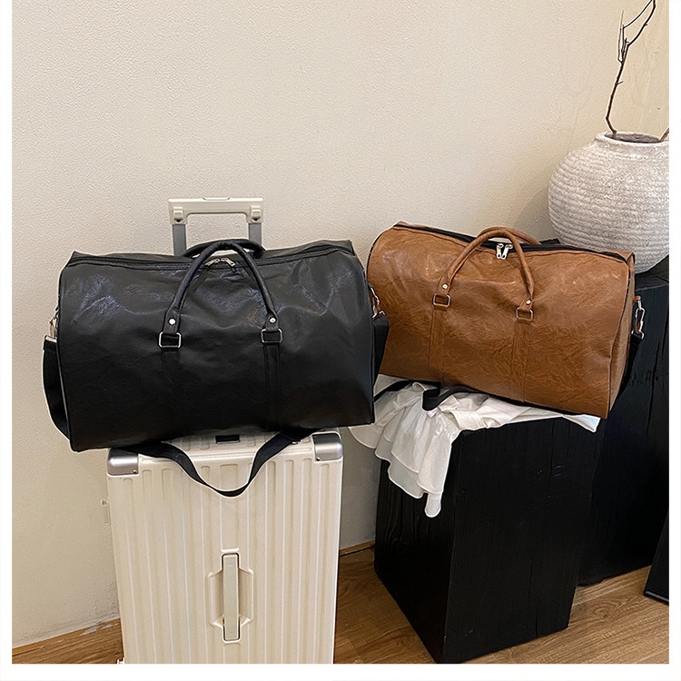 2025 새로운 간단한 PU 질감 여행 가방 유행 단색 질감 수하물 가방 여행 어깨 핸드백스토어 가기