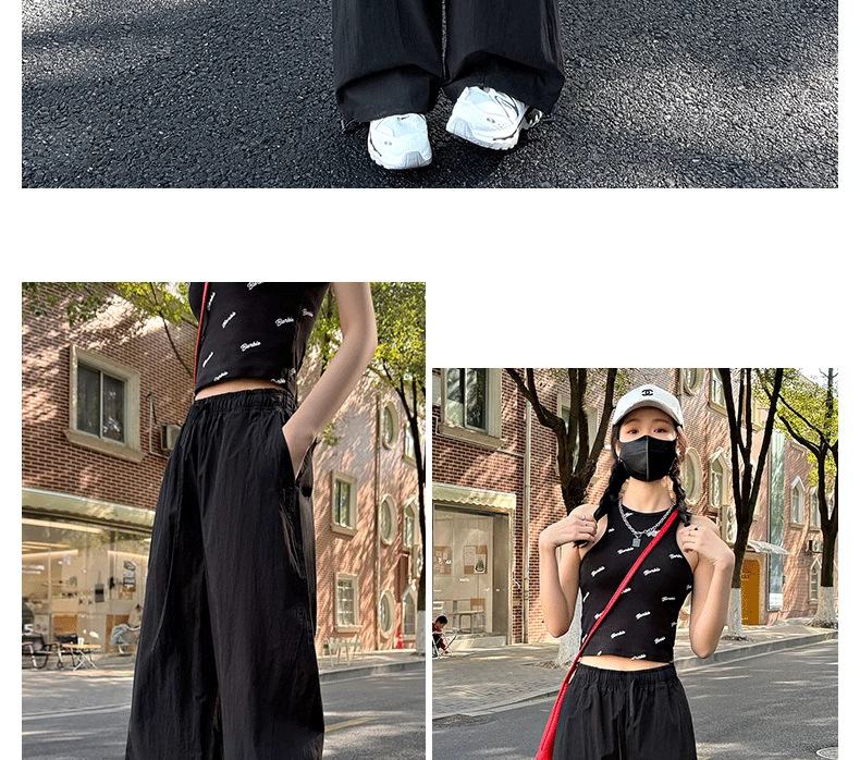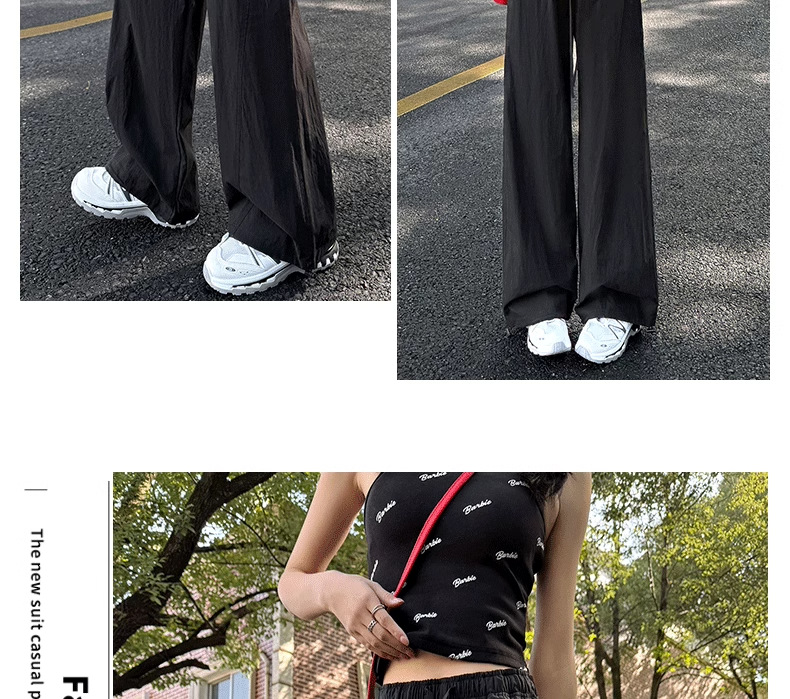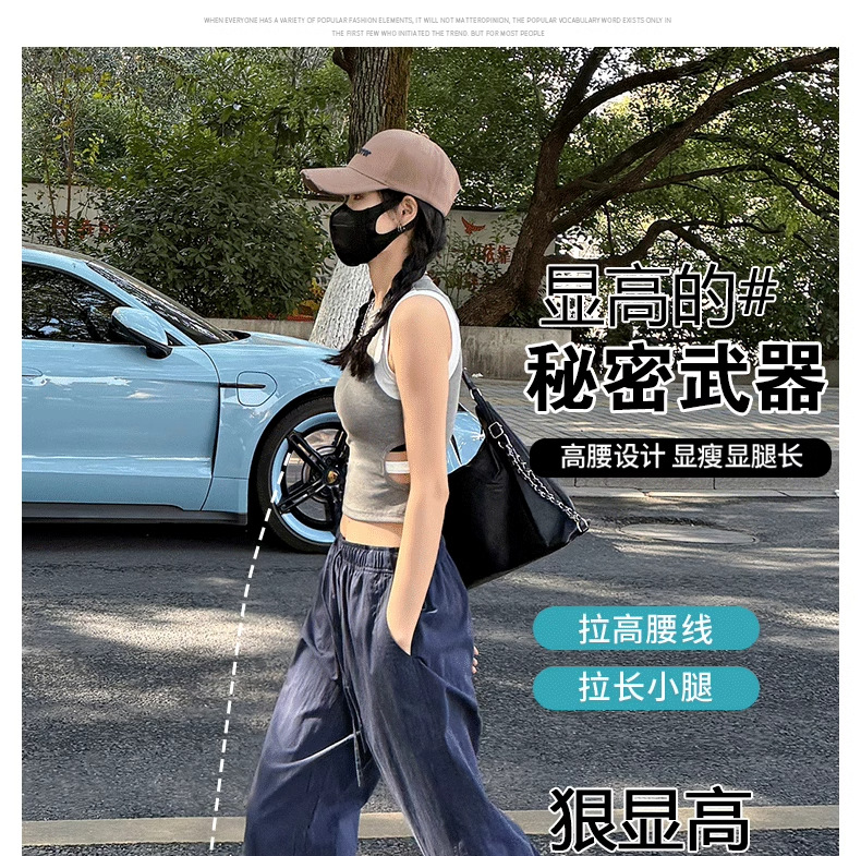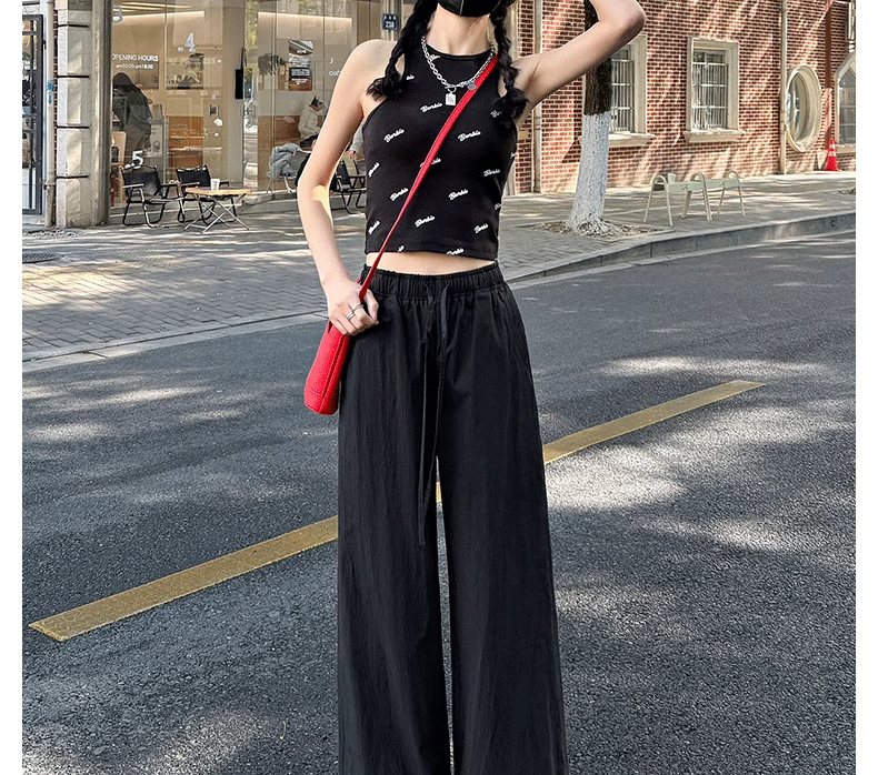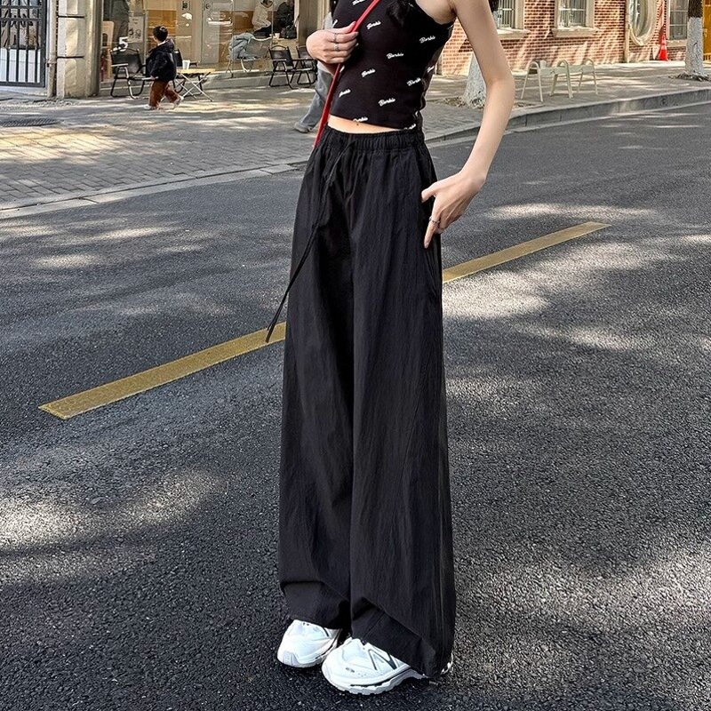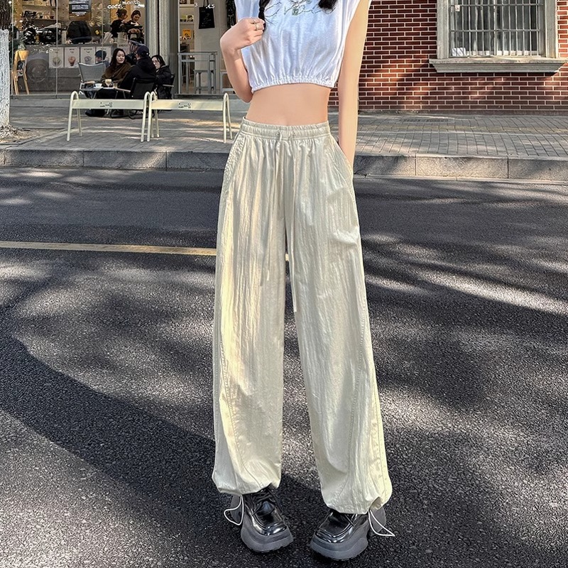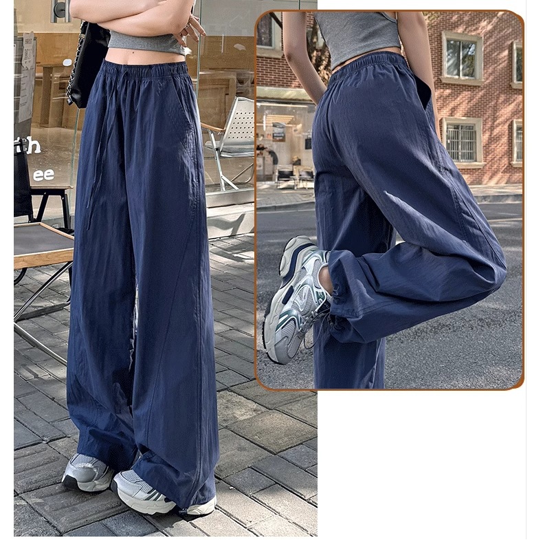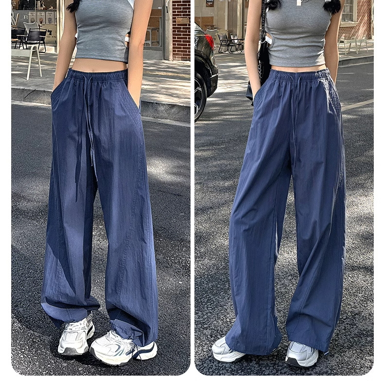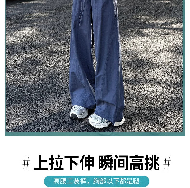 미국식 빠른 건조 작업복 여성용 여름 얇은 펜던트 스트레이트 레그 와이드 레그 팬츠 루즈 캐주얼 스포츠 등산 바지