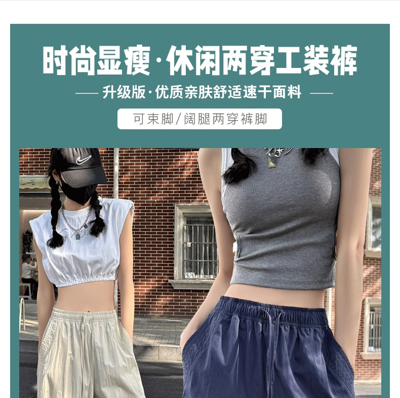 미국식 빠른 건조 작업복 여성용 여름 얇은 펜던트 스트레이트 레그 와이드 레그 팬츠 루즈 캐주얼 스포츠 등산 바지스토어 가기