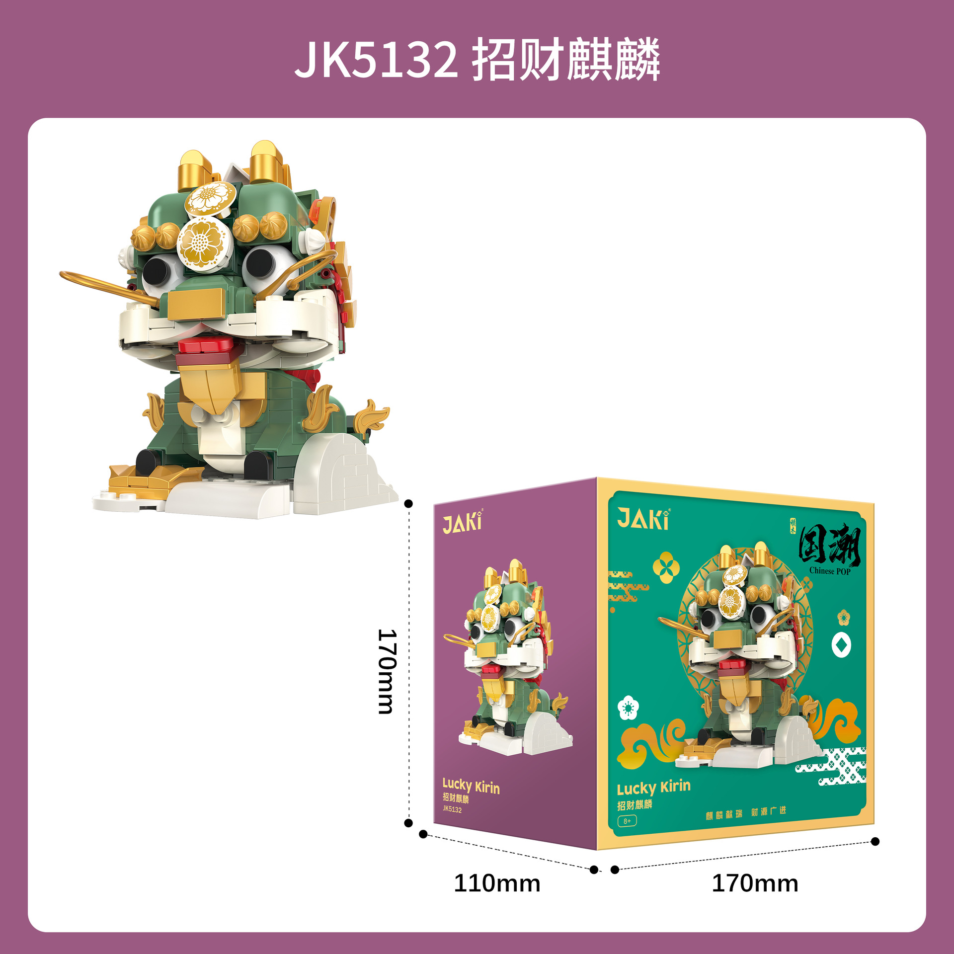 JAKI Jiaqi 5130 교육용 빌딩 블록 중국 스타일의 신화적 인 야수 조립 장난감 중국 스타일의 새해 야수 깨어난 사자 장식품 선물 크로스 보더스토어 가기