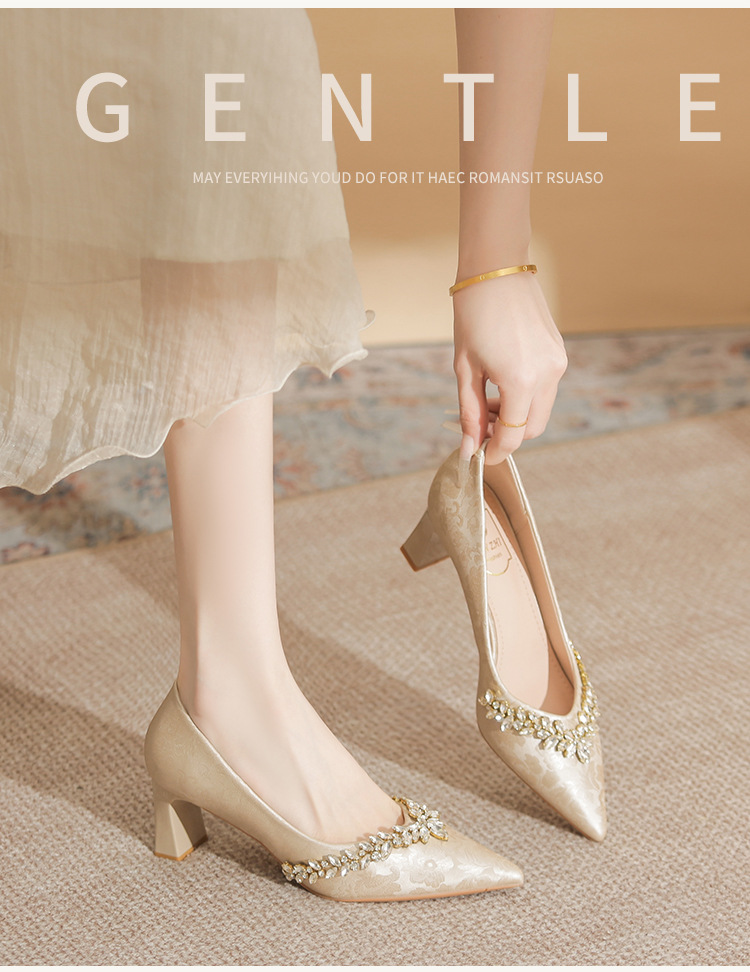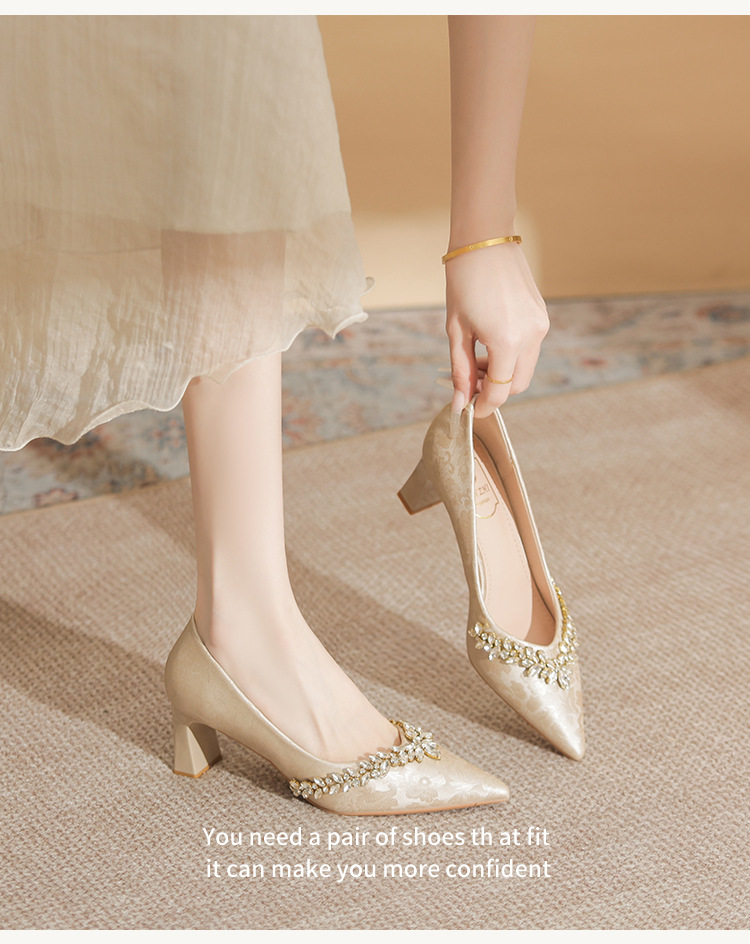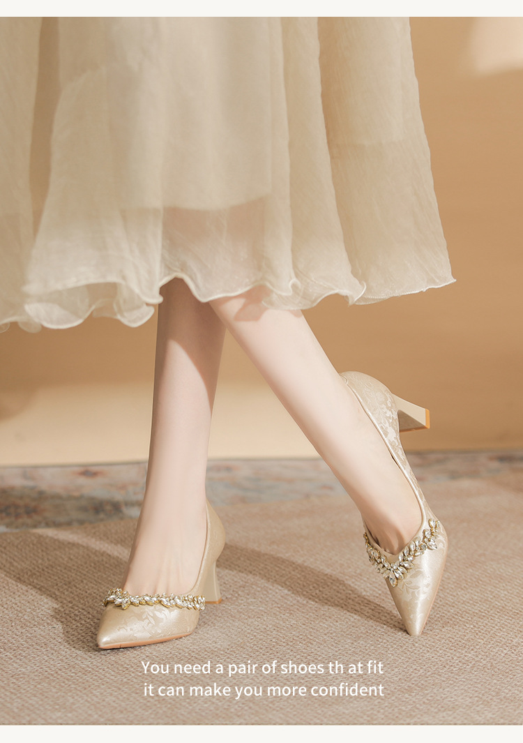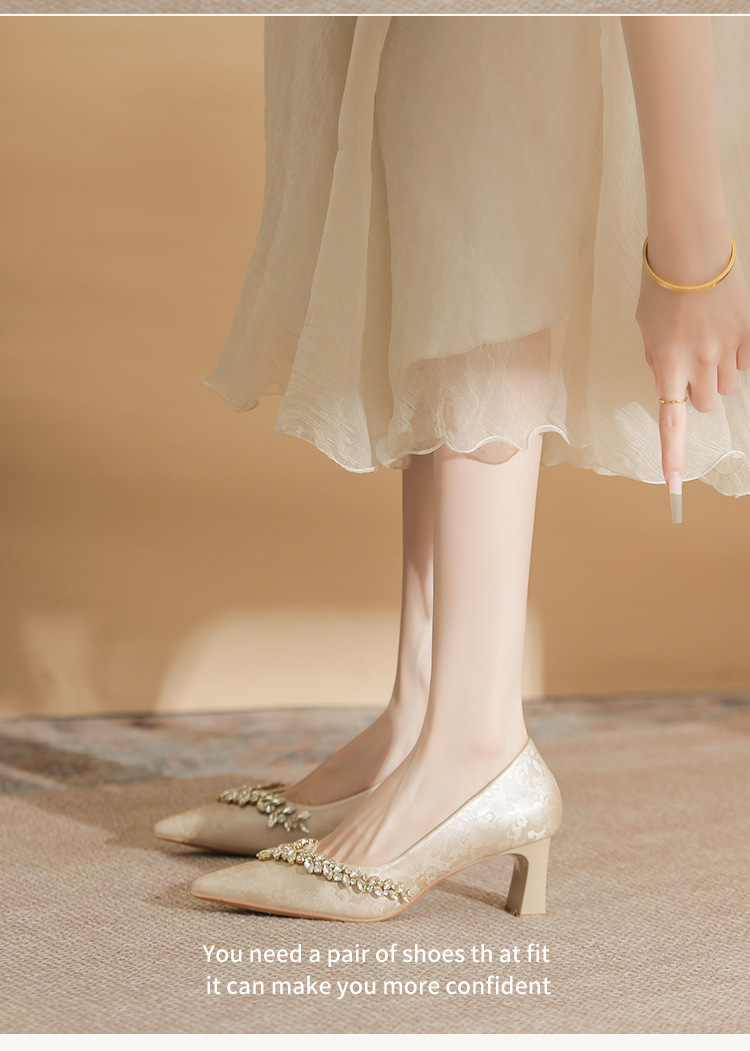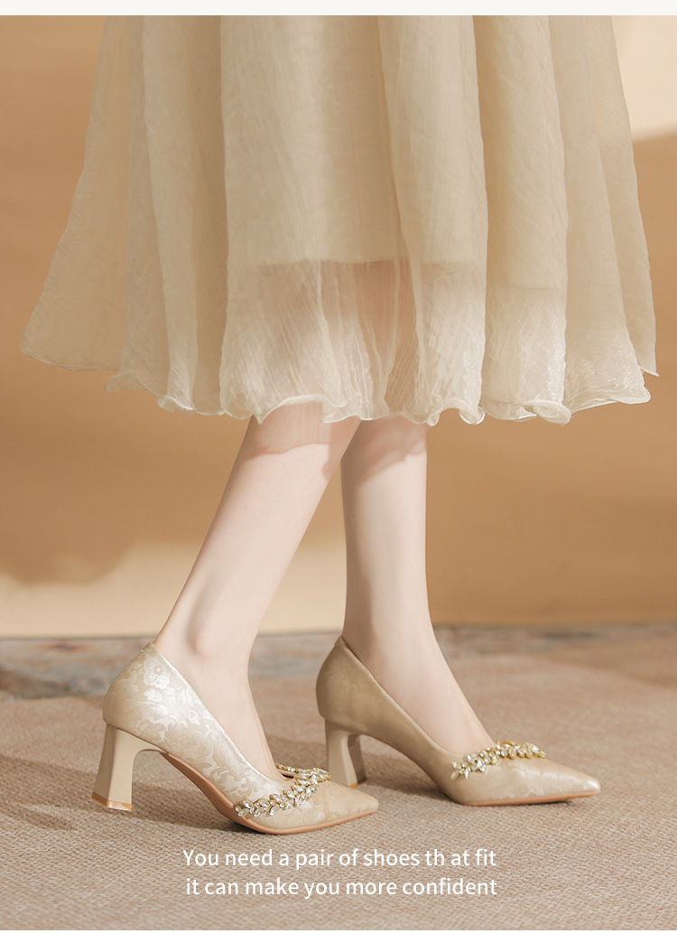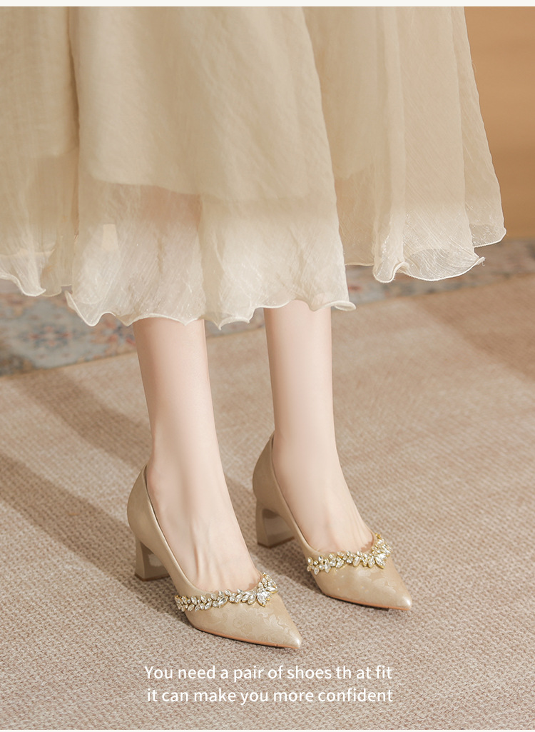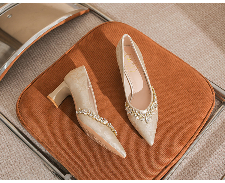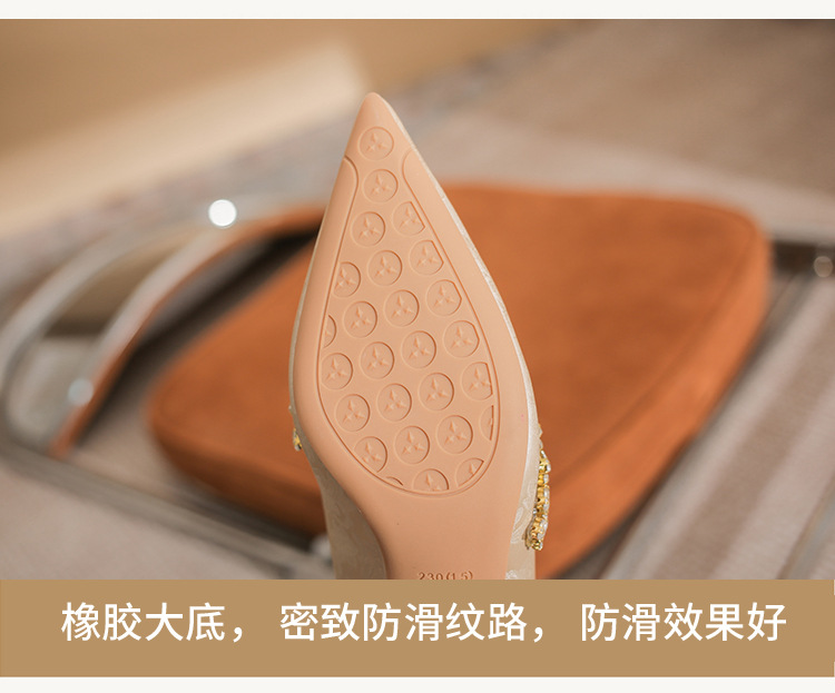 688-20 프랑스 하이힐 여성 하이 엔드 센스 2025 여름 새로운 뾰족한 두꺼운 힐은 피곤하지 않은 라인 스톤 싱글 신발스토어 가기