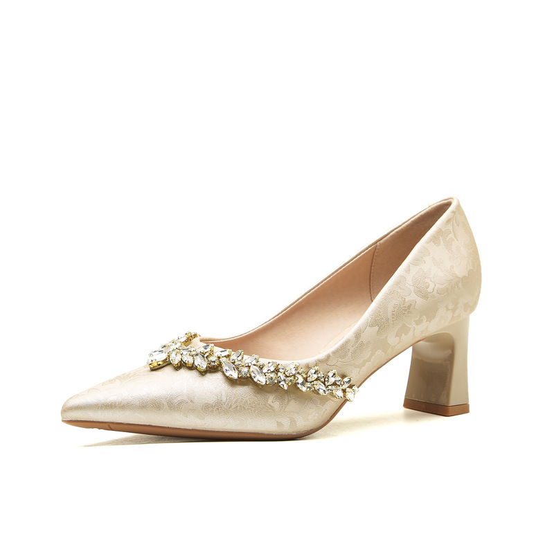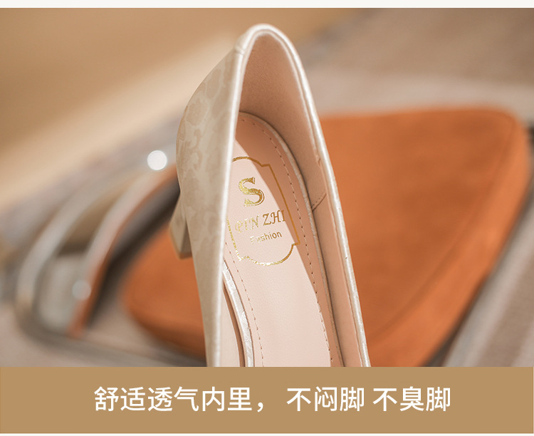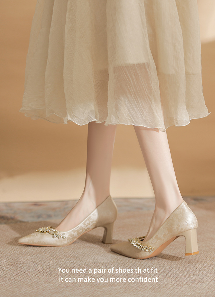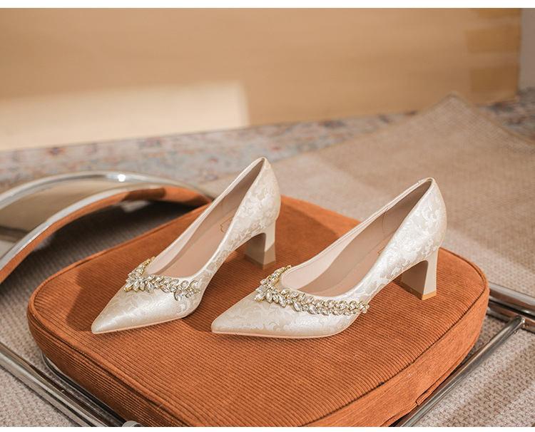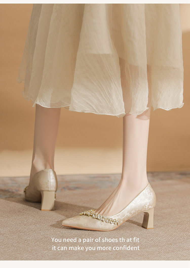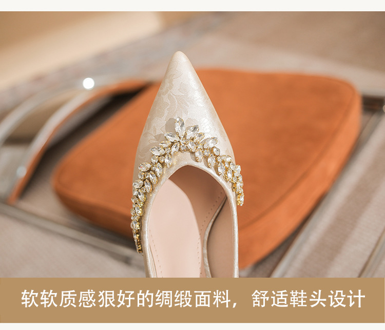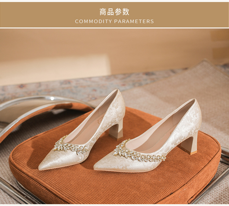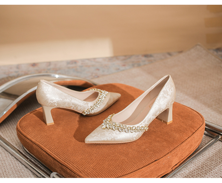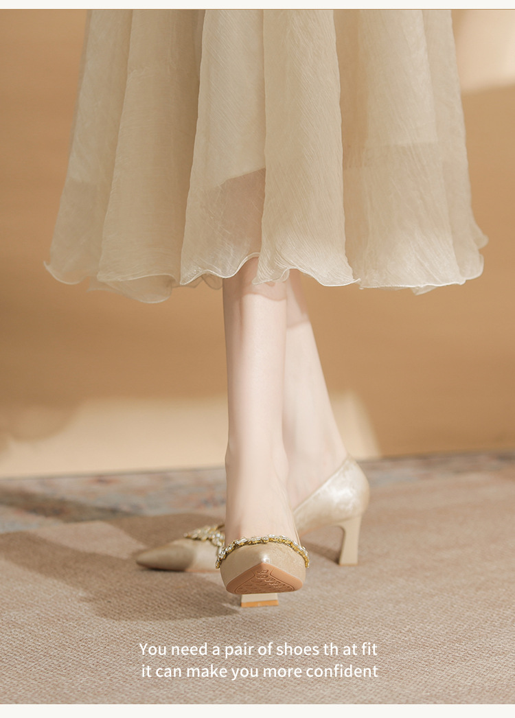688-20 프랑스 하이힐 여성 하이 엔드 센스 2025 여름 새로운 뾰족한 두꺼운 힐은 피곤하지 않은 라인 스톤 싱글 신발스토어 가기