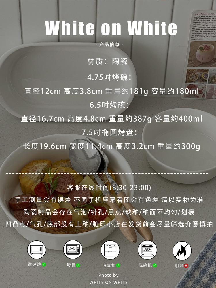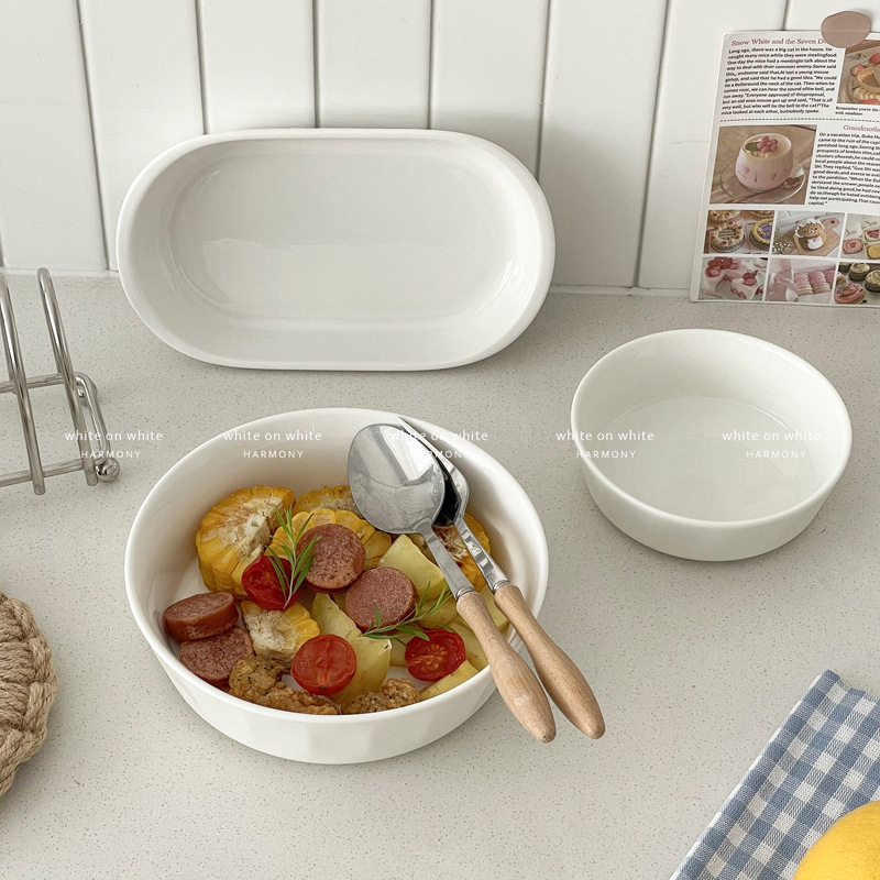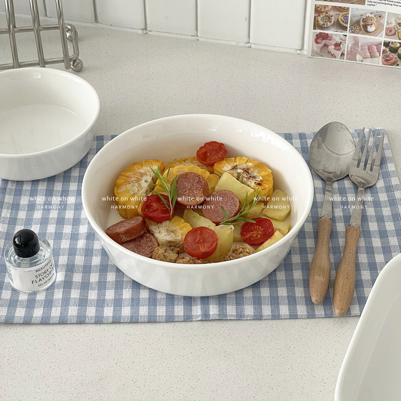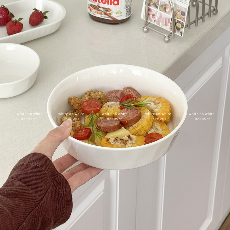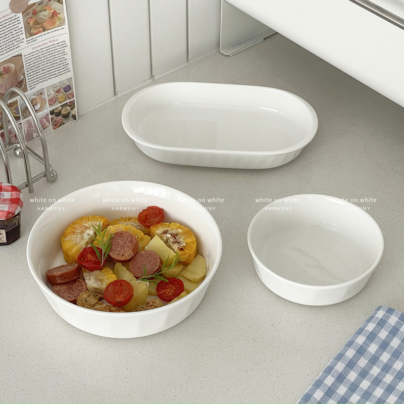 에어 프라이어 베이킹 보울 오븐 치즈 퓨어 화이트 프리미엄 센스 세라믹 살라 보울 푸딩 그릇 찐 계란 그릇을 곁들인 구운 밥 그릇