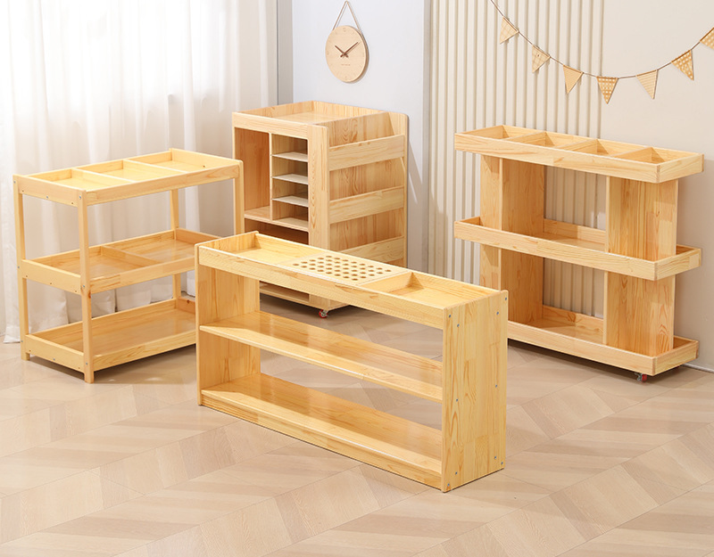어린이 단단한 나무 모바일 아트 테이블 조기 교육 손으로 그린 정리 선반 유치원 미술실 훈련 보관 캐비닛스토어 가기