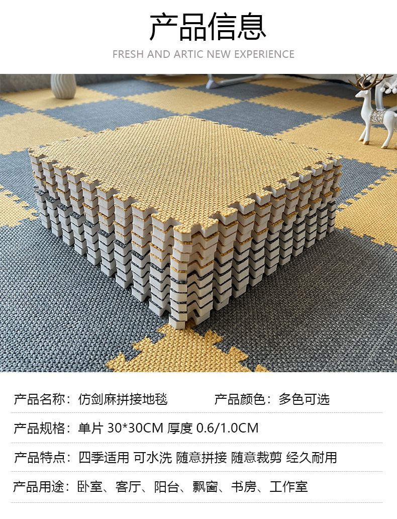 모조 시살 바느질 바닥 매트 폼 매트 가정용 다타미 발코니 침실 카펫 컷 테이블 베이 창 매트