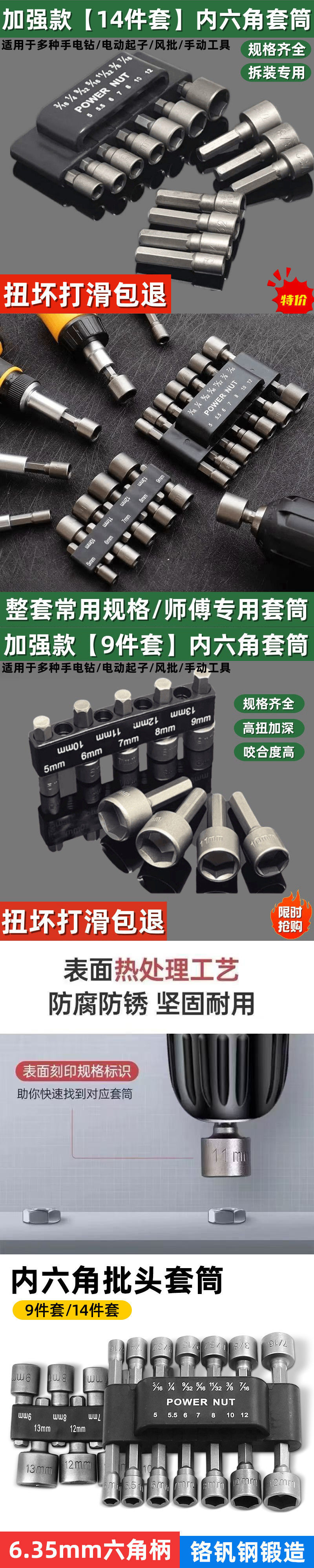 육각형 소켓 전체 세트 강력한 육각형 비 자기 빠른 전기 드릴 헤드 세트 세트 공압 공기 배치