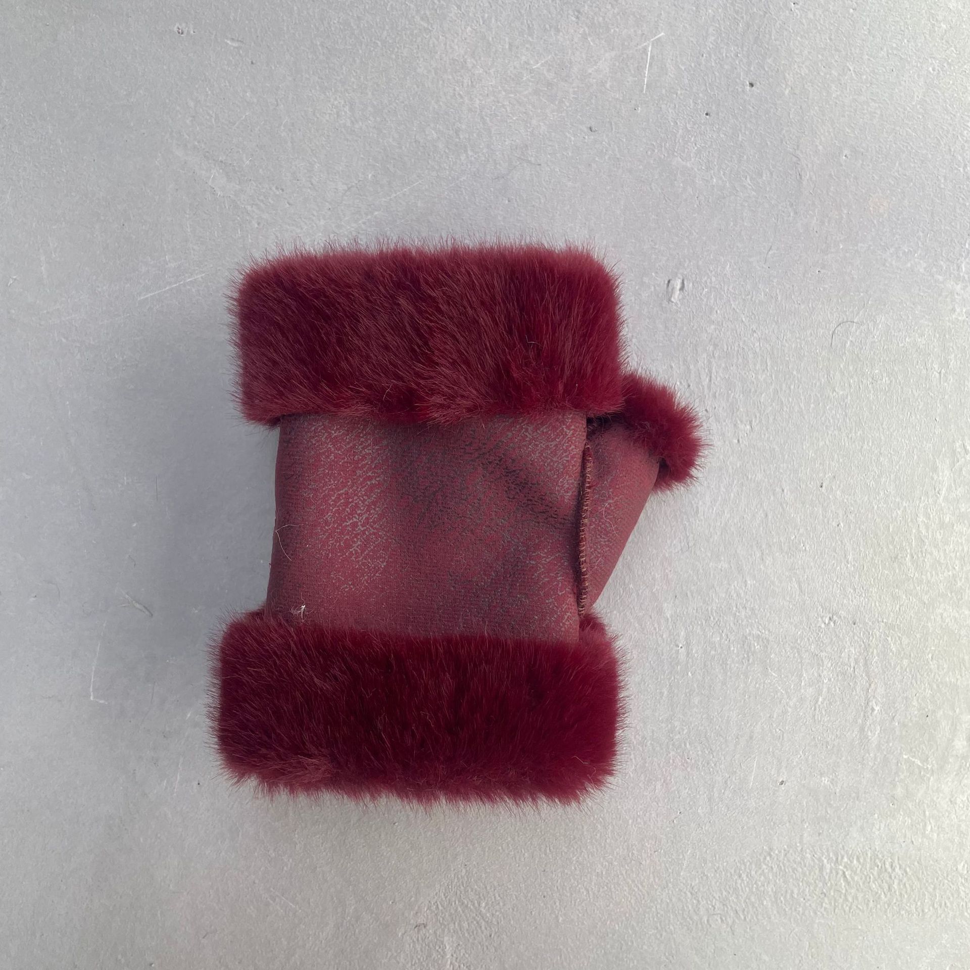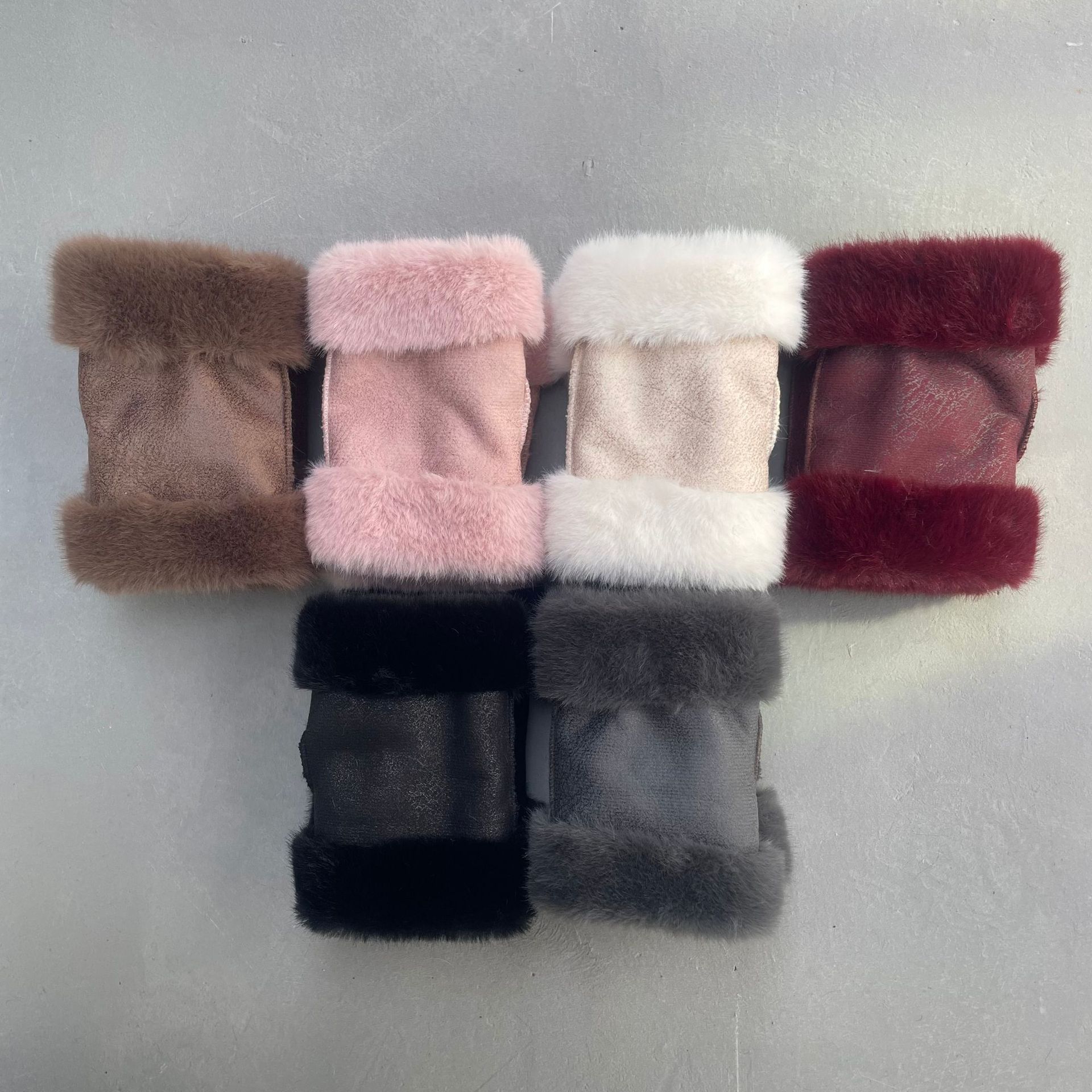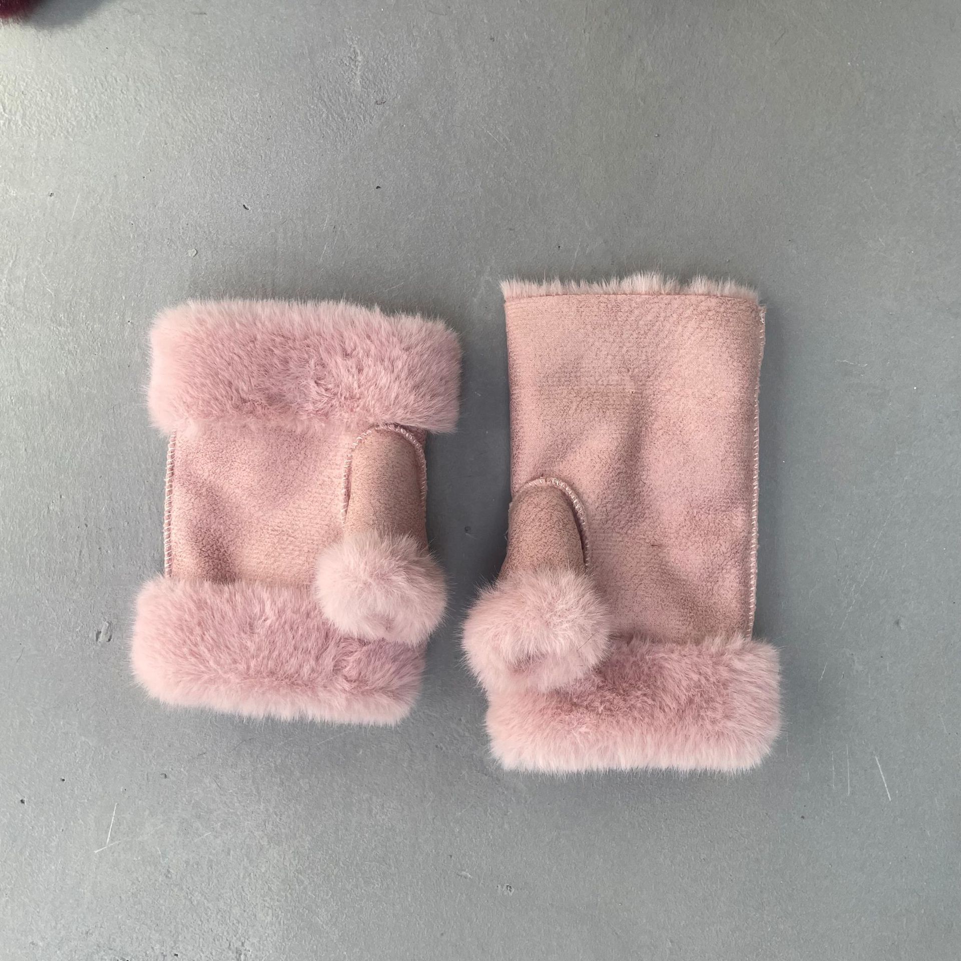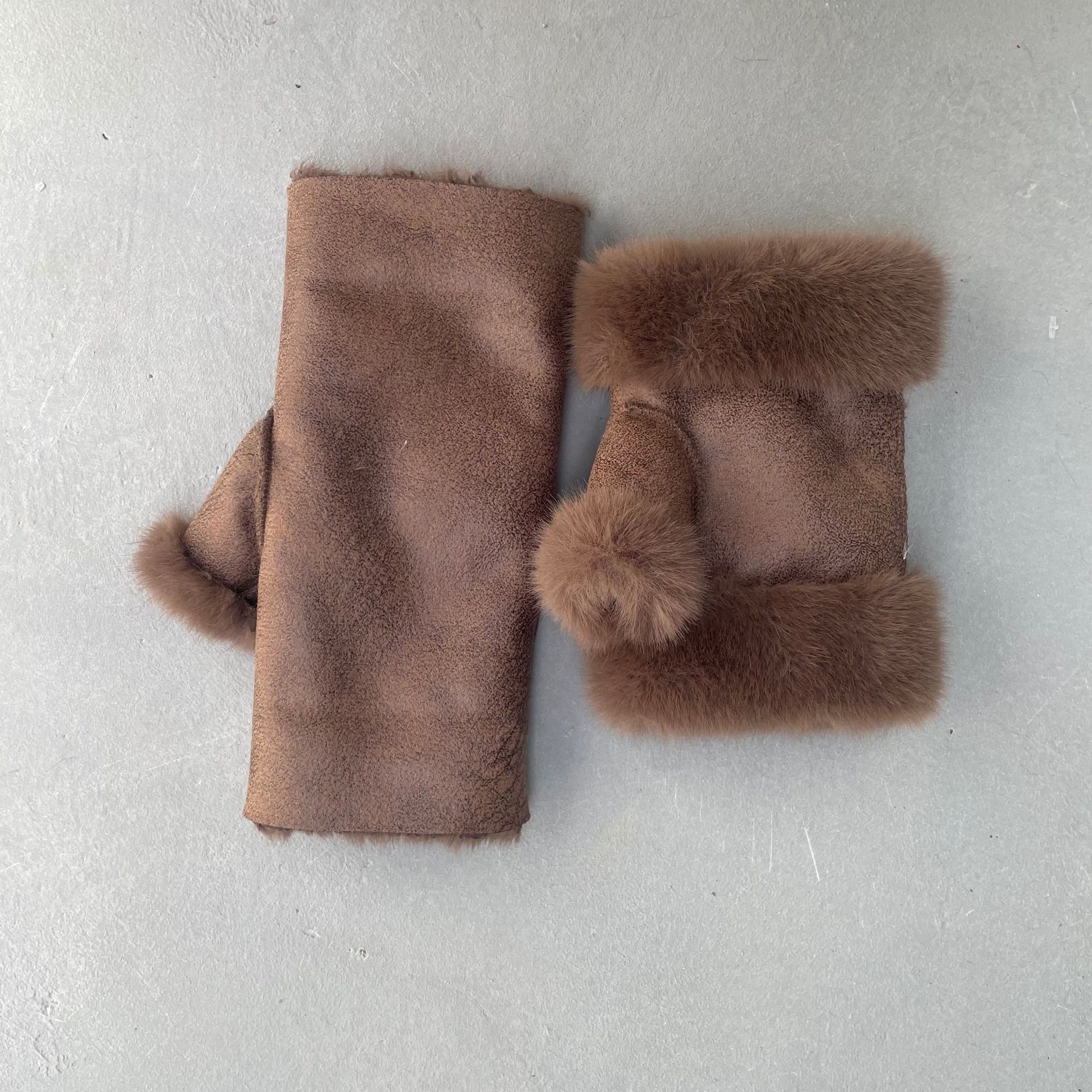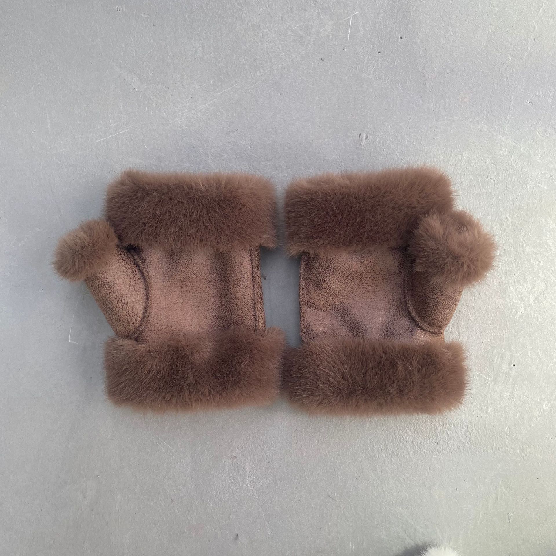 겨울 여성용 스웨이드 장갑, 모조 밍크 퍼, 짧은 반손가락, 두꺼운 플러스 벨벳, 보온 및 방한
