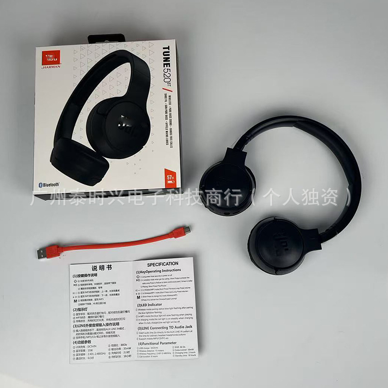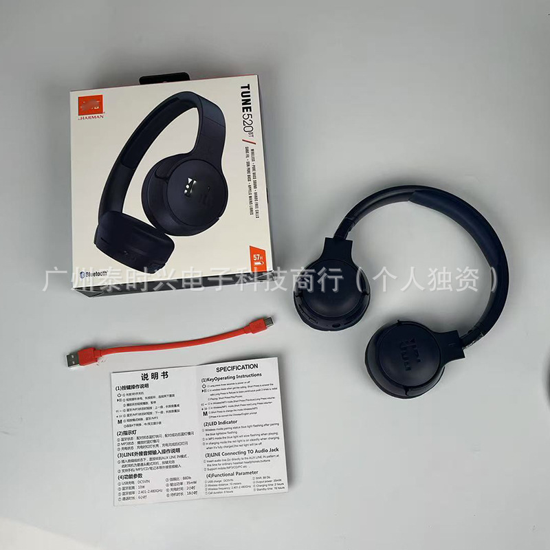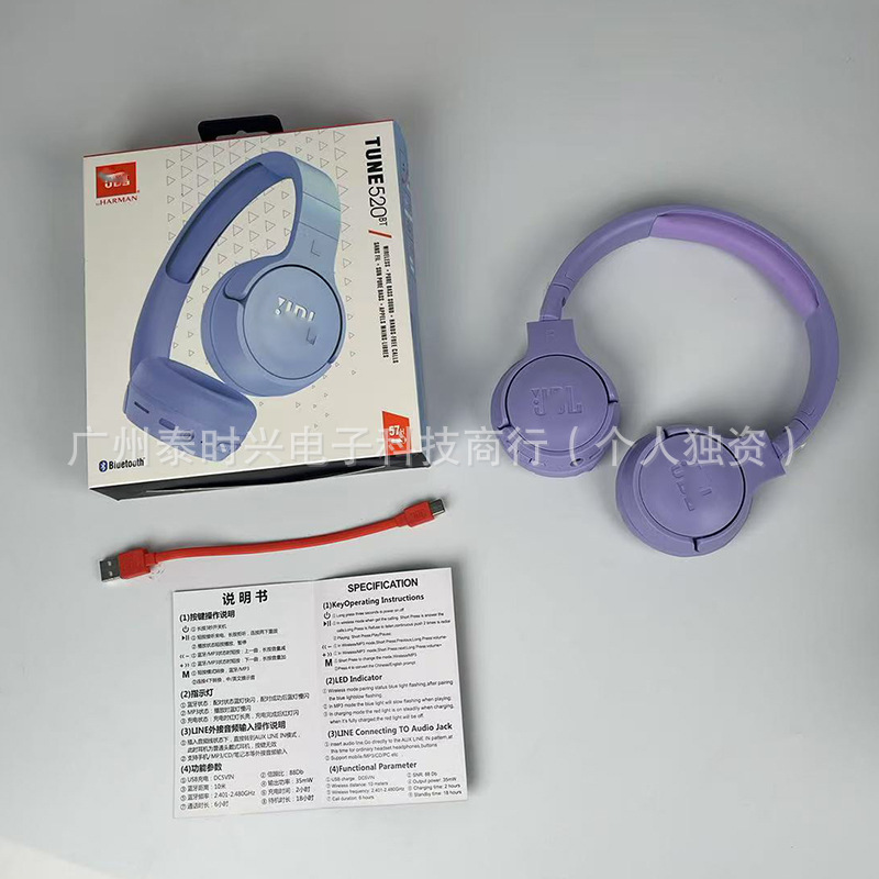 JBL 헤드 장착형 TUNE-520 BT 무선 블루투스 헤드셋에 적합한 인기 모델, 중저음, 대외 무역 및 국경 간 도매