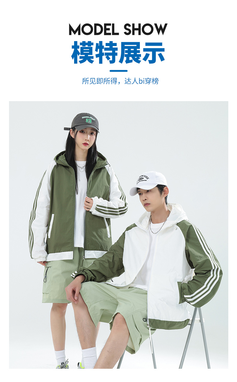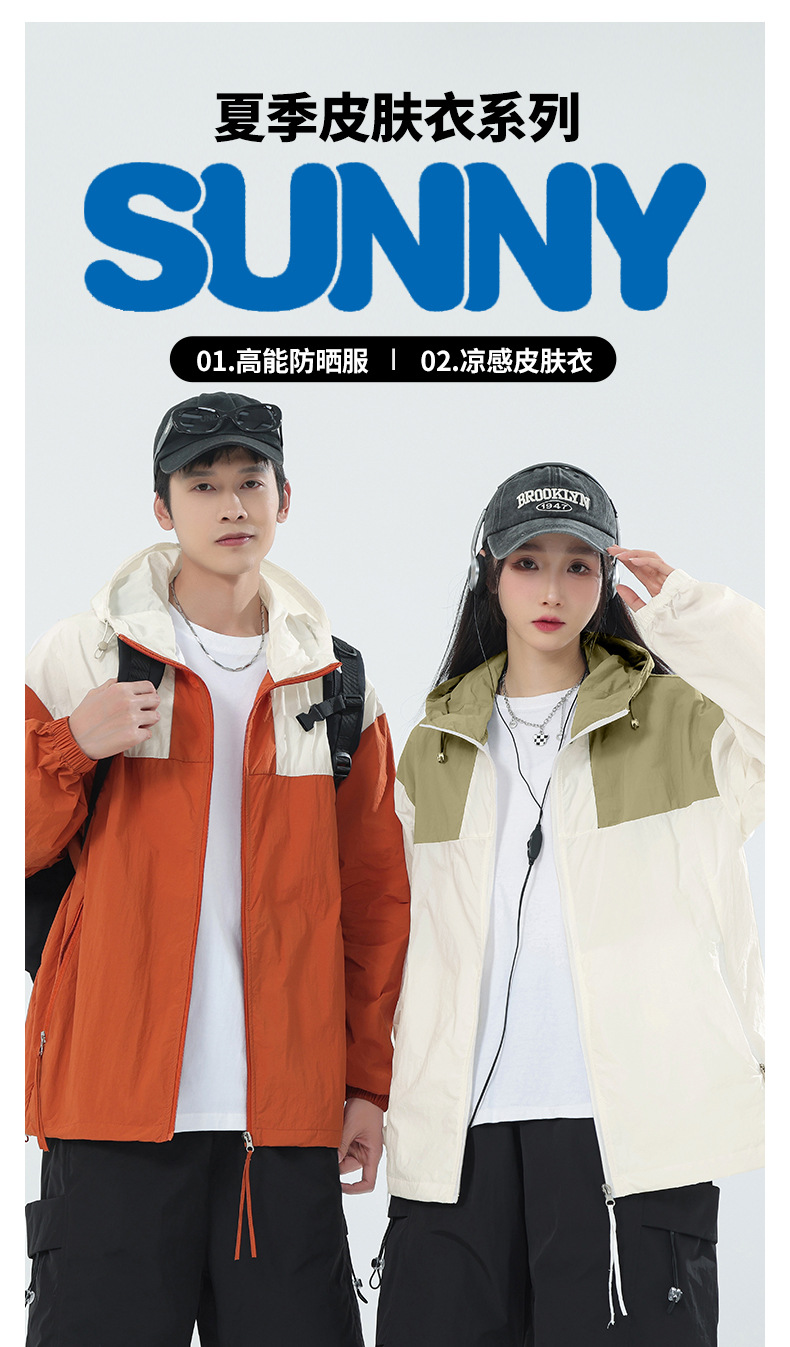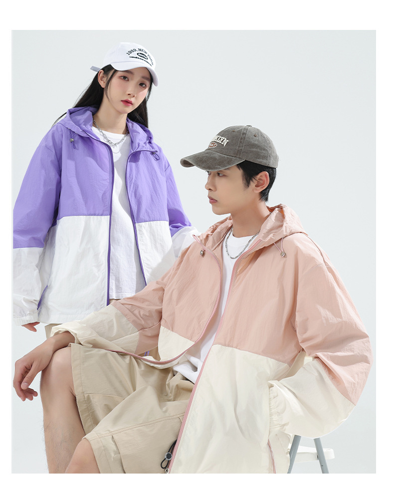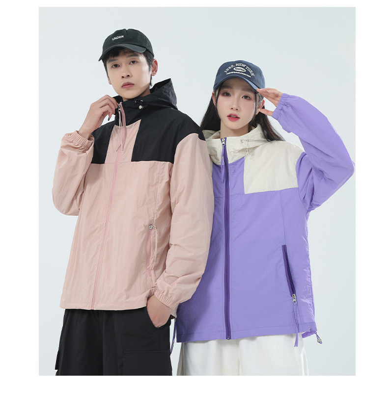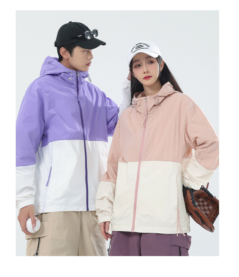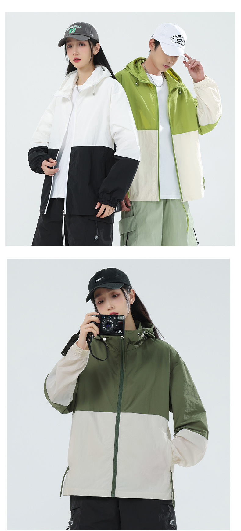 2025 남성과 여성의 여름 새로운 선 스크린 의류 얇은 통기성 야외 UV 보호 재킷 선 스크린 의류 컬러 블록 스킨 의류스토어 가기