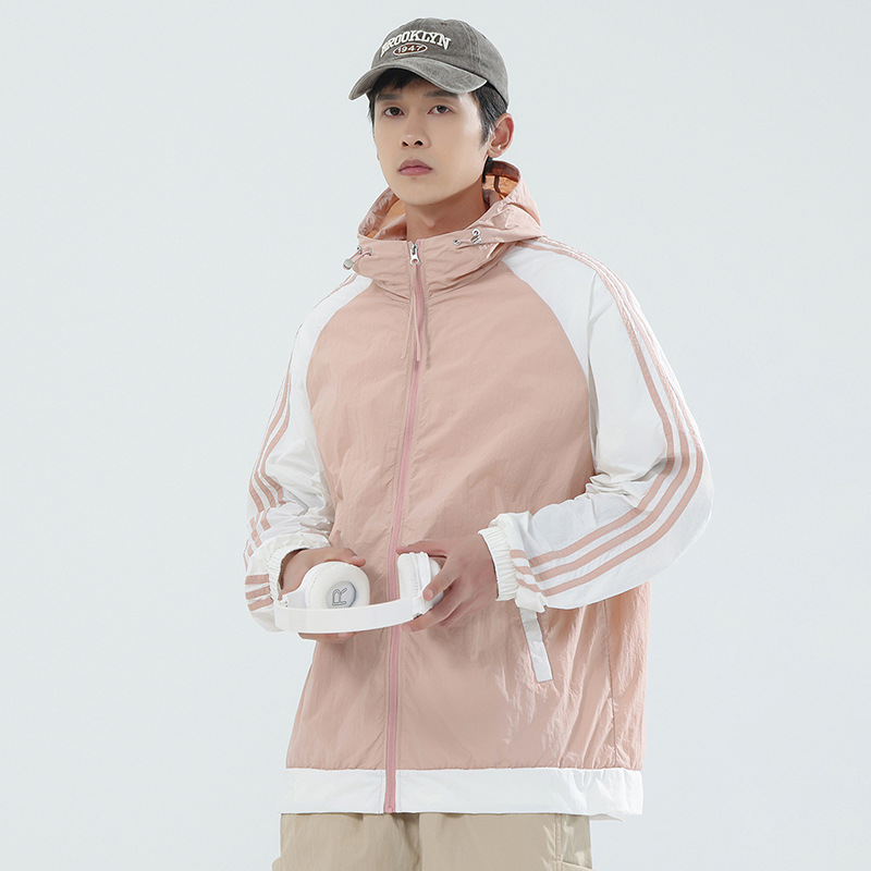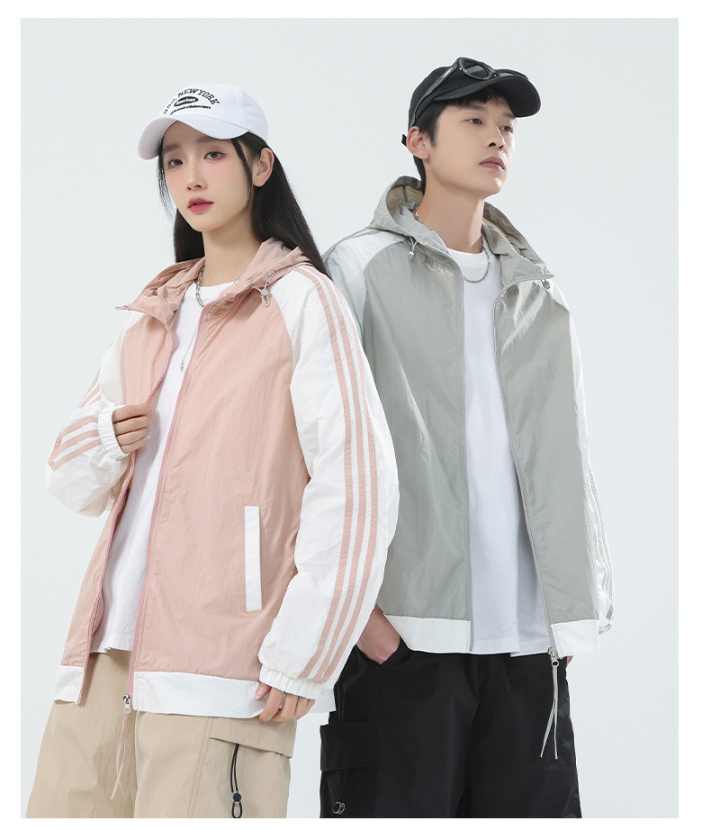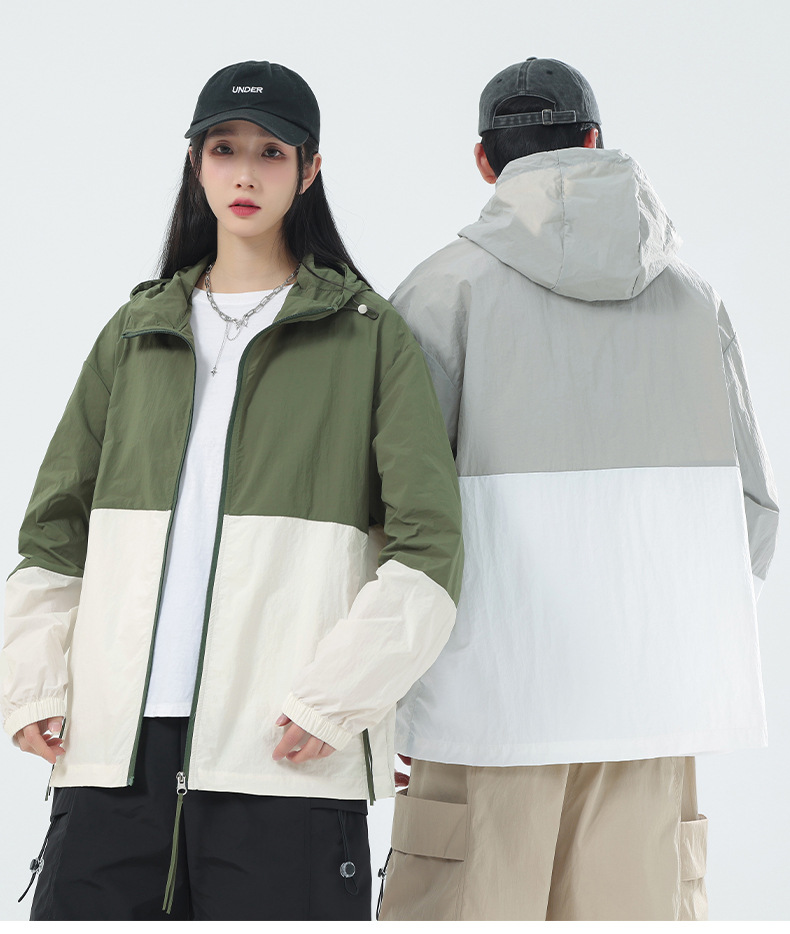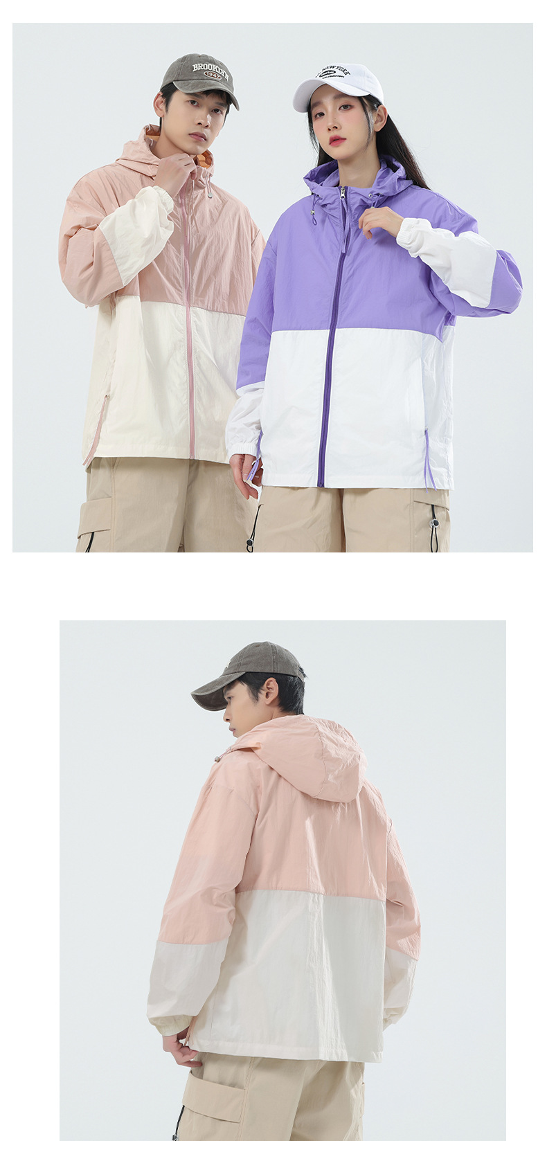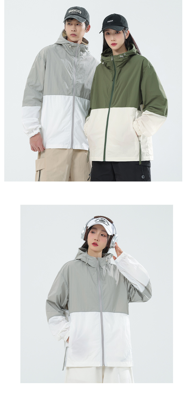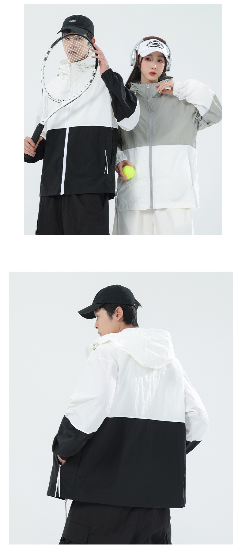 2025 남성과 여성의 여름 새로운 선 스크린 의류 얇은 통기성 야외 UV 보호 재킷 선 스크린 의류 컬러 블록 스킨 의류