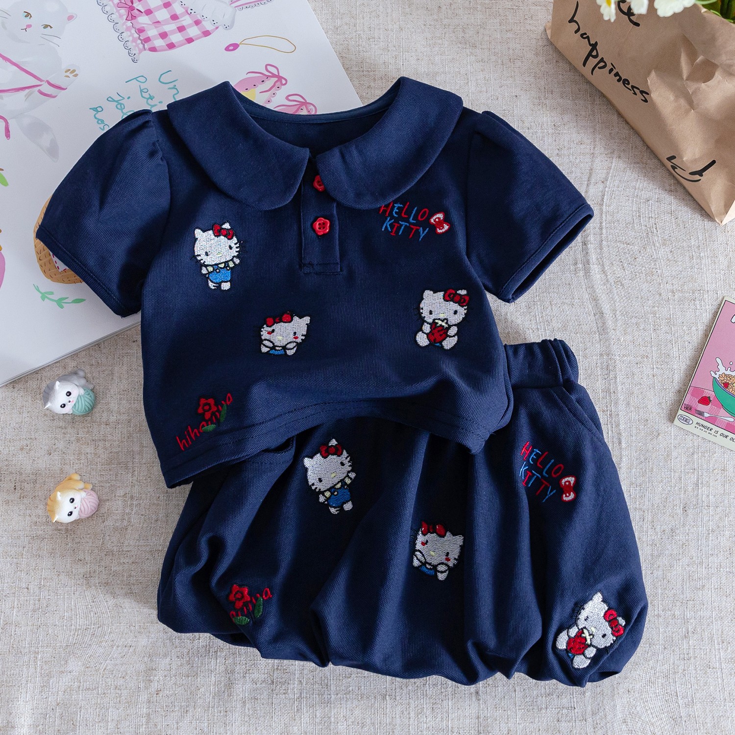 소녀 여름 세트 2025 새로운 스타일 어린이 귀여운 만화 인쇄 반팔 티셔츠 체크 무늬 꽃 버드 스커트스토어 가기