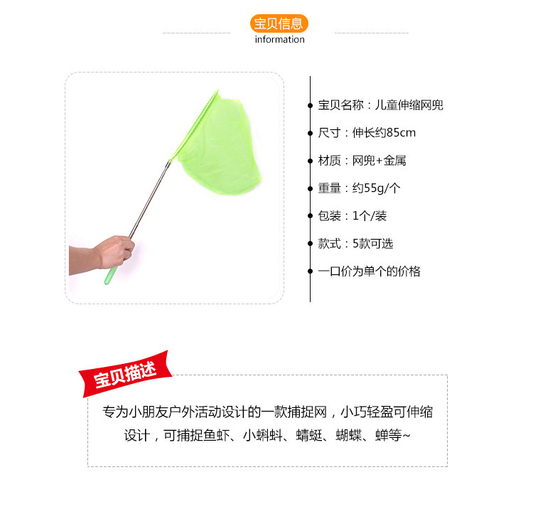 어린이 물고기 그물 낚시 그물 포켓 낚시 그물 복사 그물 곤충 포수 그물 나비 그물 5 섹션 스테인레스 스틸 망원경 막대 야외 장난감스토어 가기