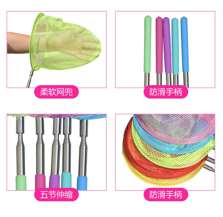 어린이 물고기 그물 낚시 그물 포켓 낚시 그물 복사 그물 곤충 포수 그물 나비 그물 5 섹션 스테인레스 스틸 망원경 막대 야외 장난감