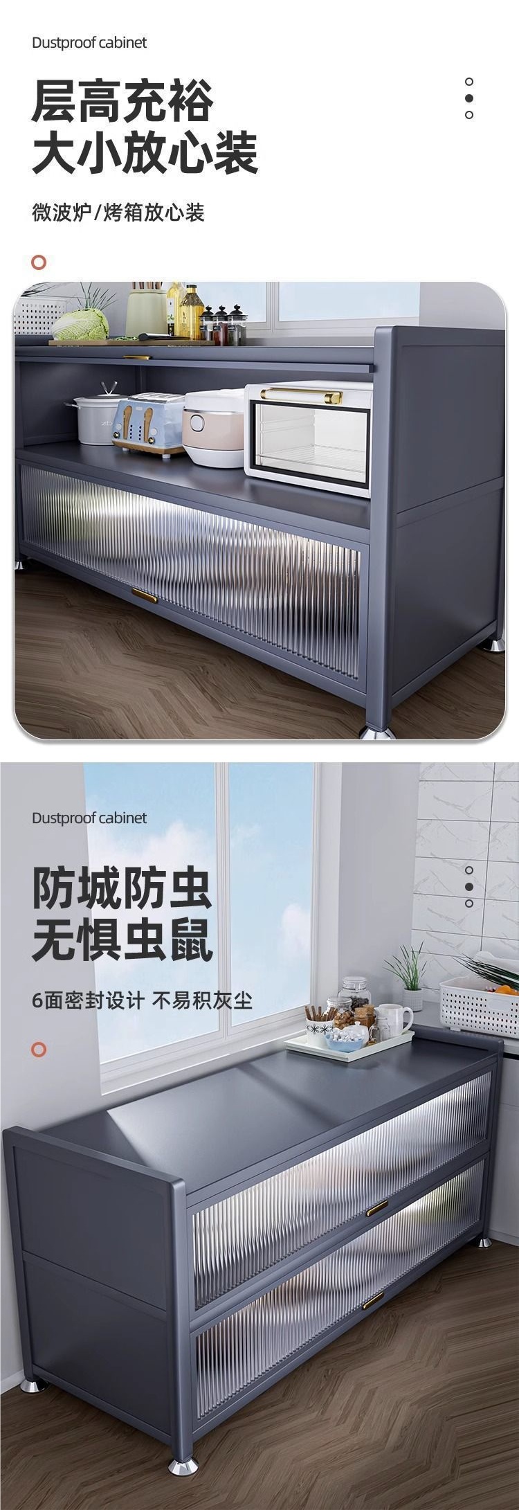 주방 수납 선반 바닥에서 천장까지 다층 수납 캐비닛 다기능 전자 레인지 캐비닛 식사 보관 캐비닛 금속스토어 가기