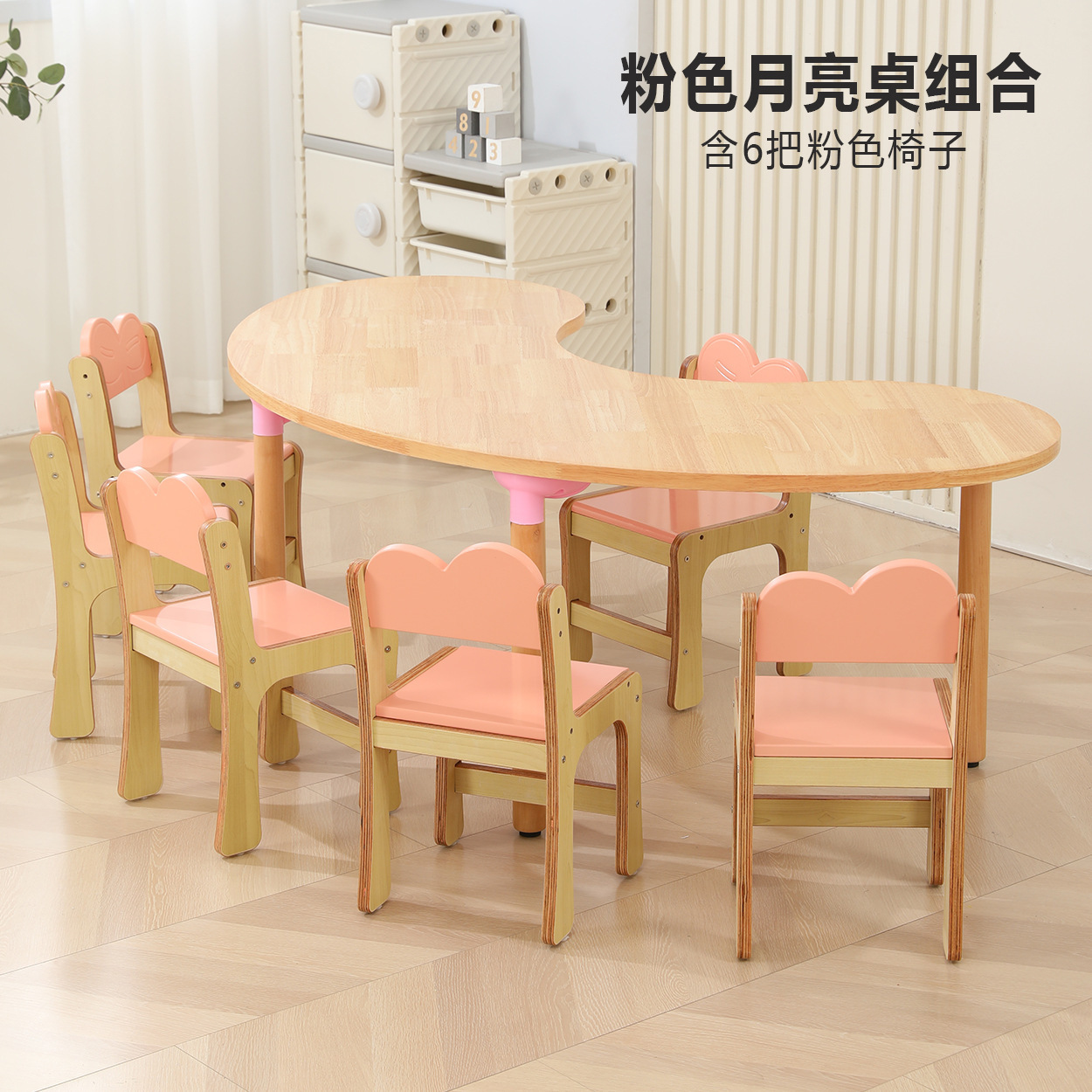 • 오크 핑크 문 테이블, 테이블 1개, 의자 6개, 높이 비고