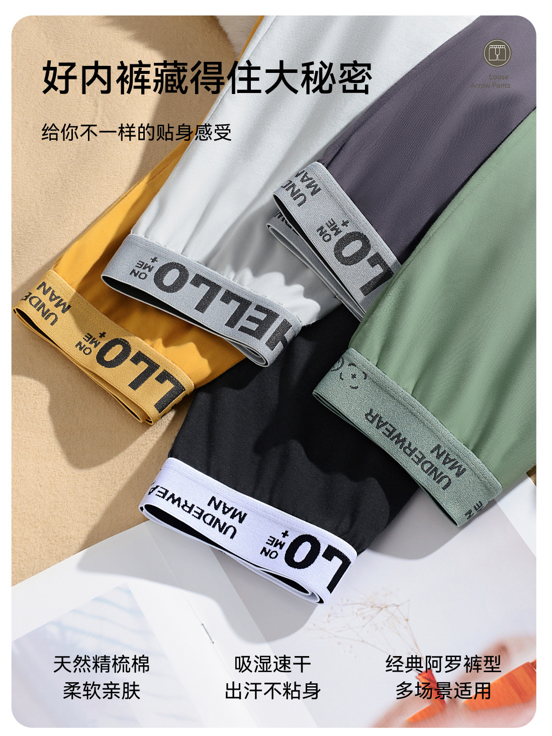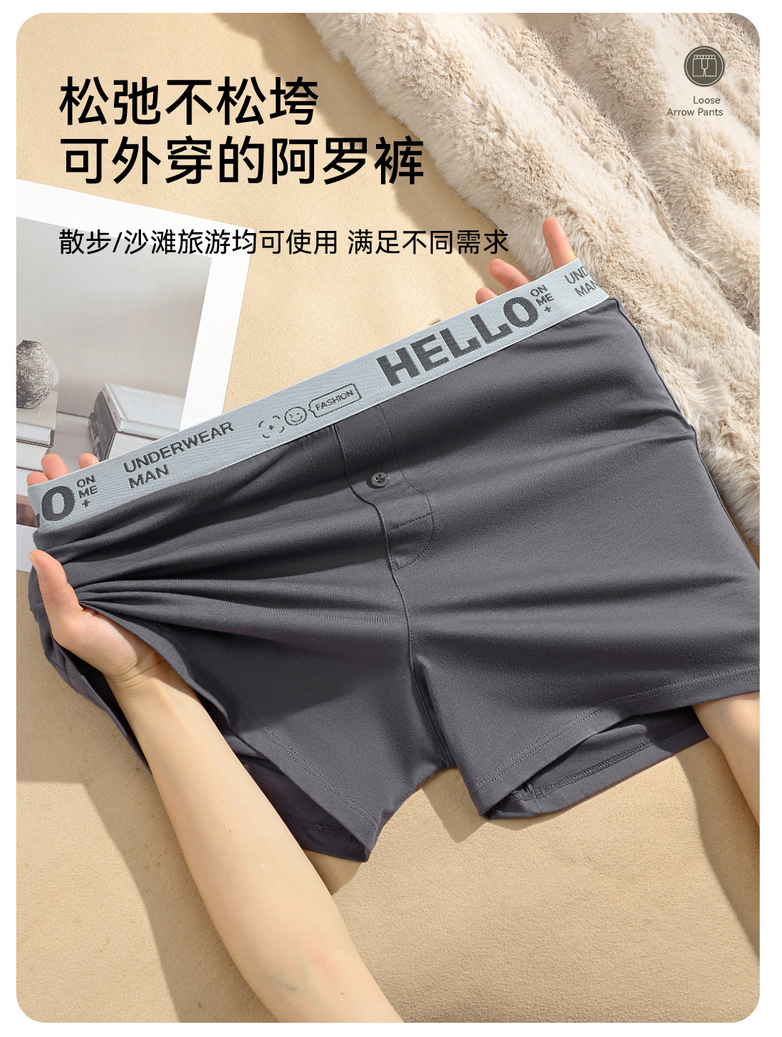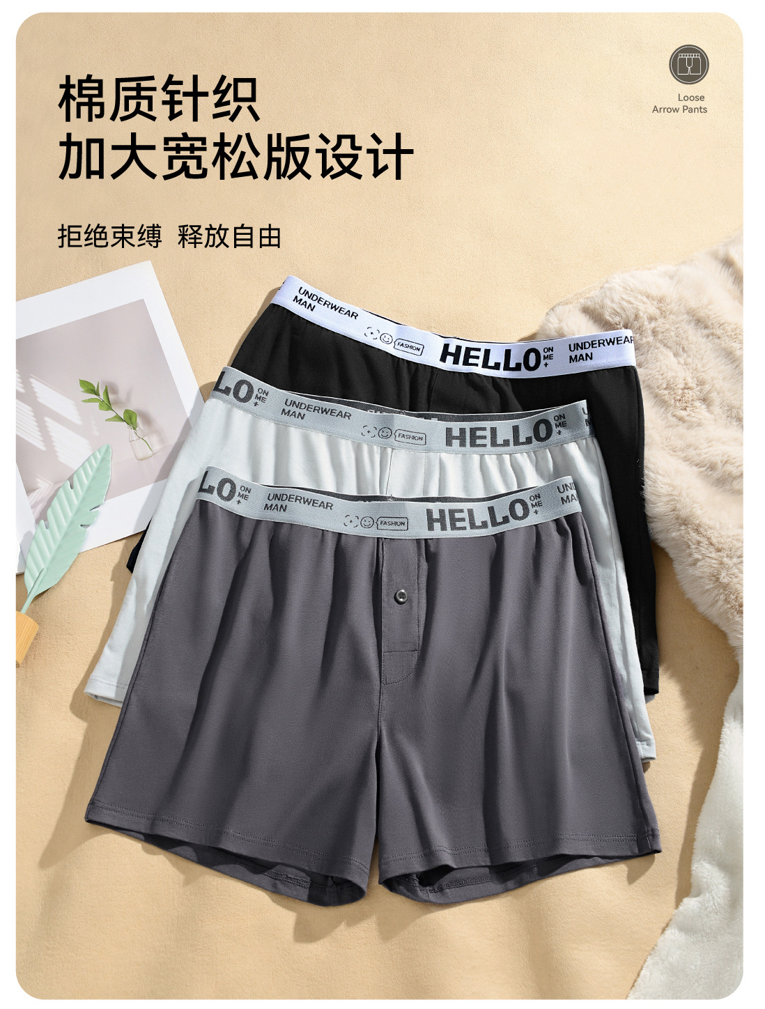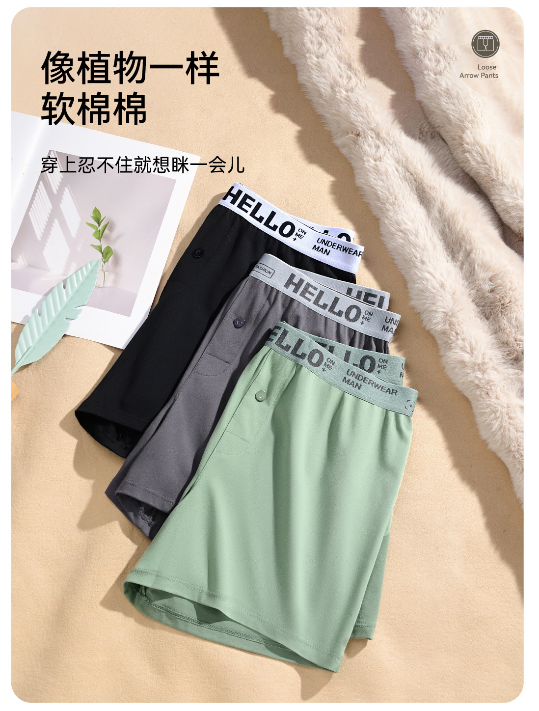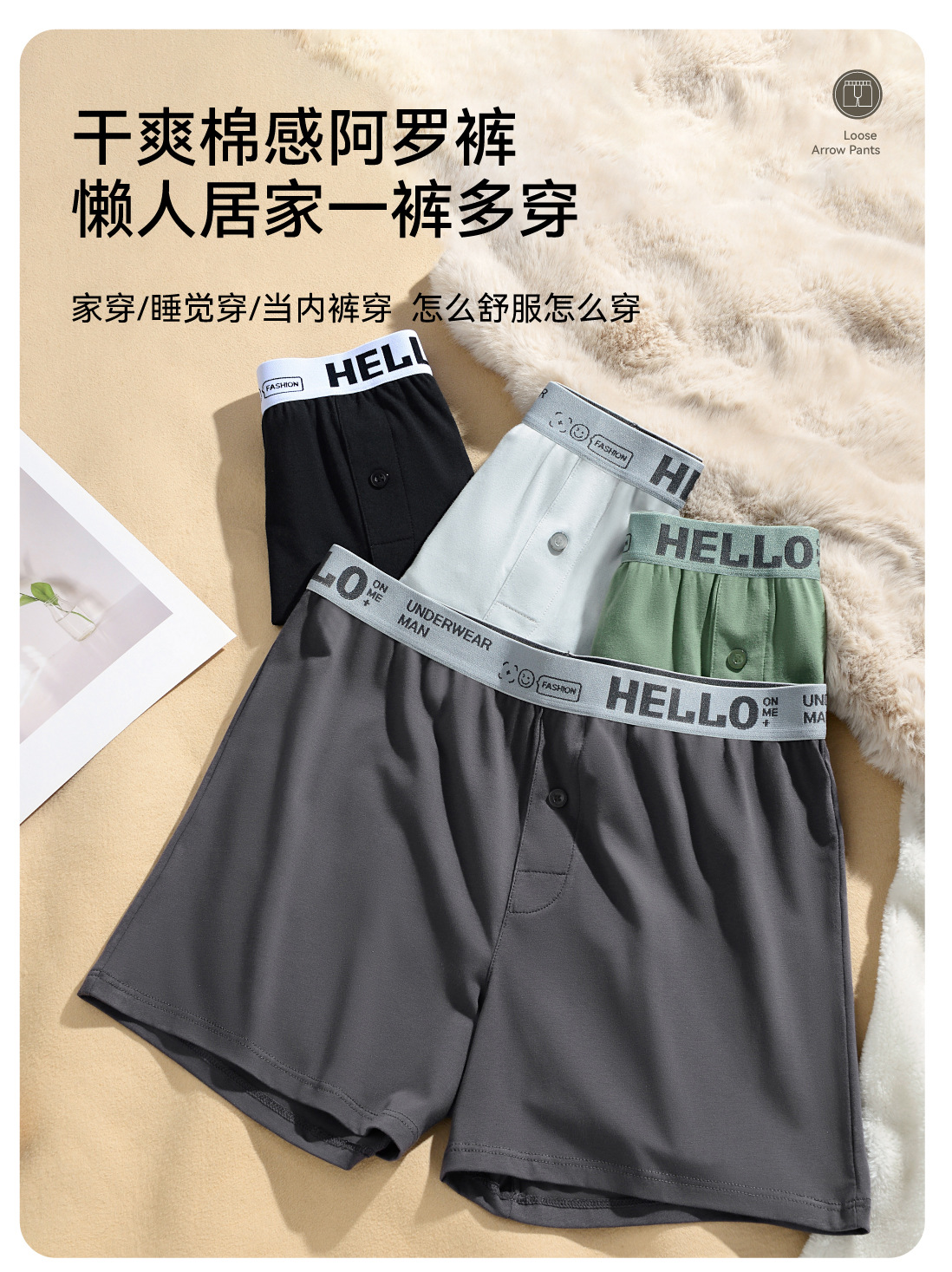 남성용 순면 속옷, 하로 팬츠, 캐주얼 홈웨어, 면 소재의 편안한 사각 팬츠, 남성용 루즈핏 팬츠