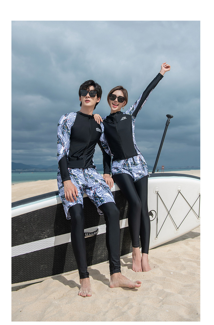 2025 새로운 대형 커플 온천 수영복 스플릿 패션 슬리밍 온천 긴팔 해변 잠수복 도매스토어 가기